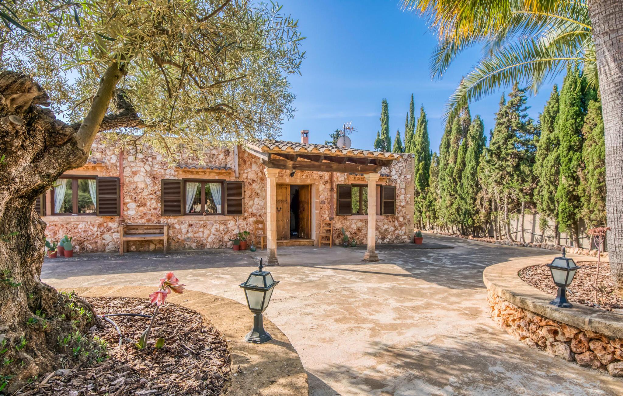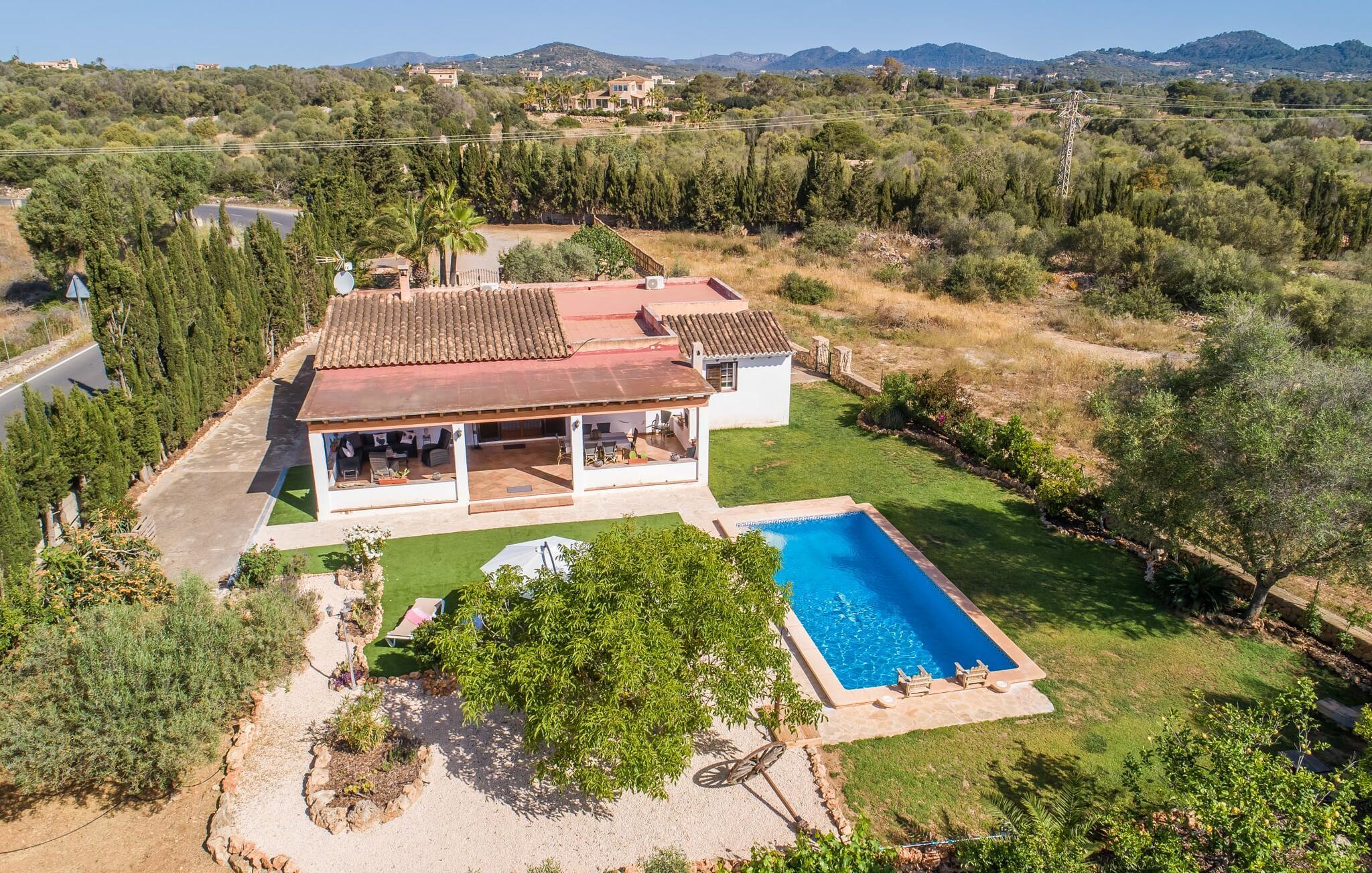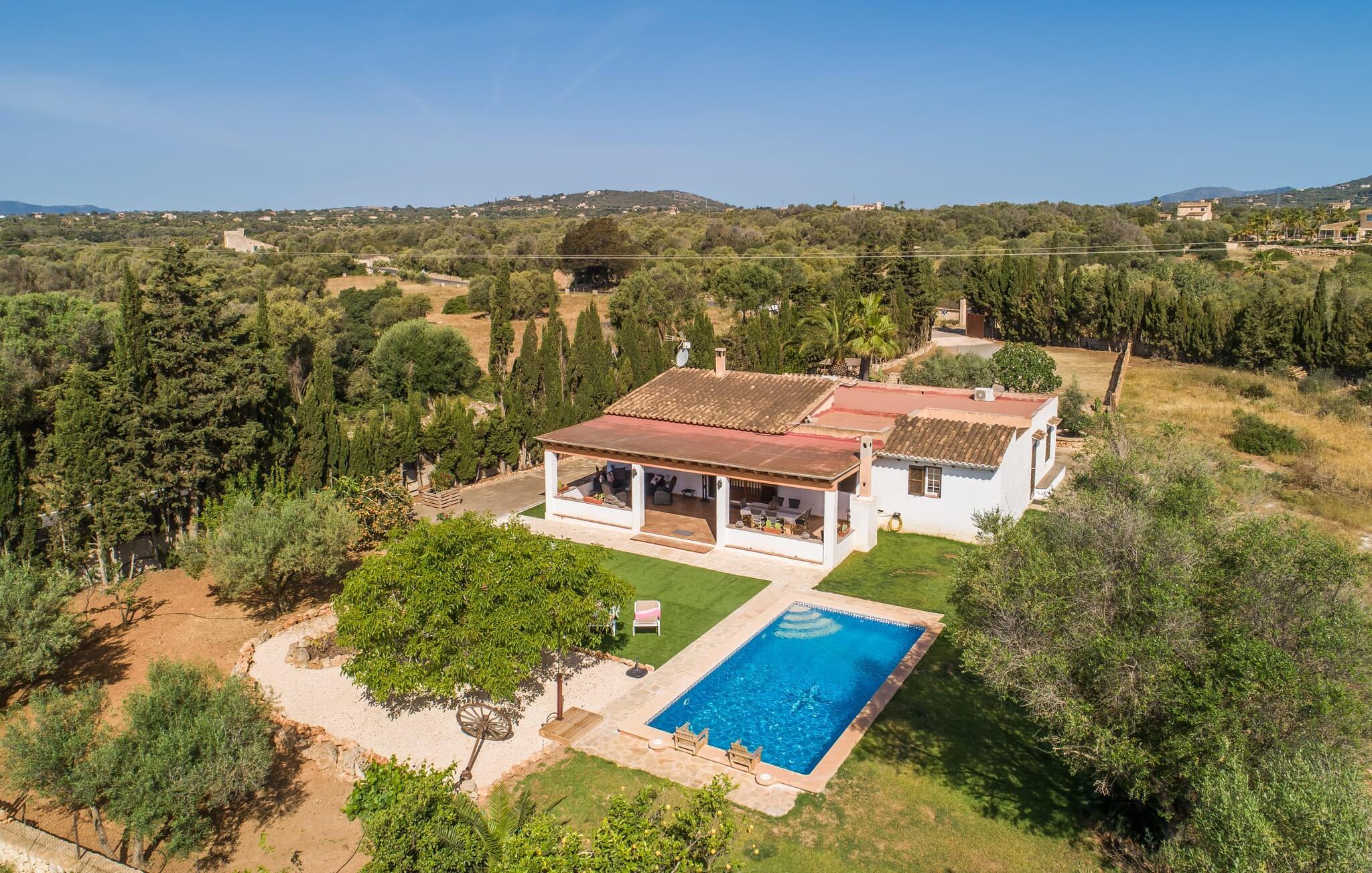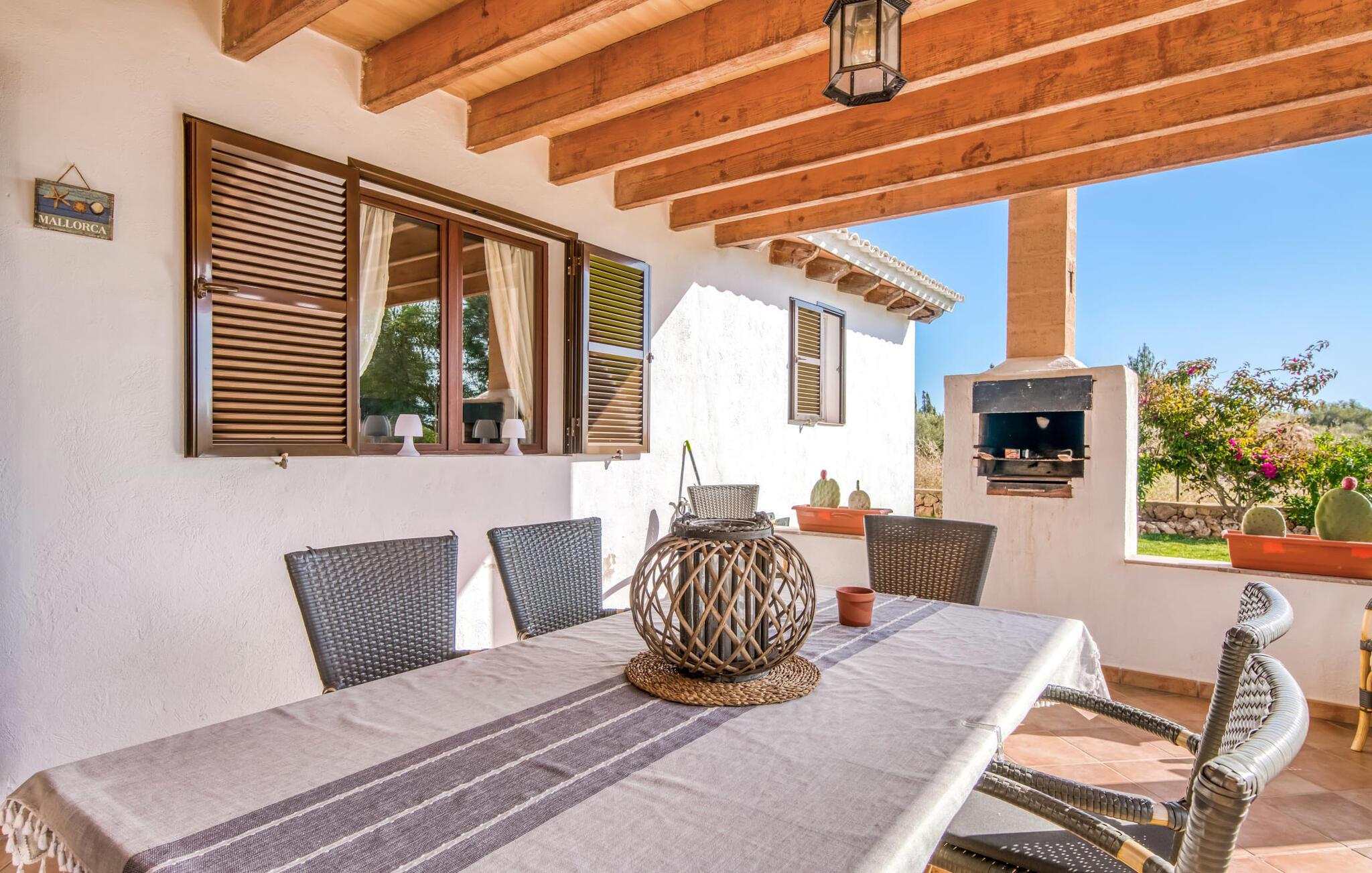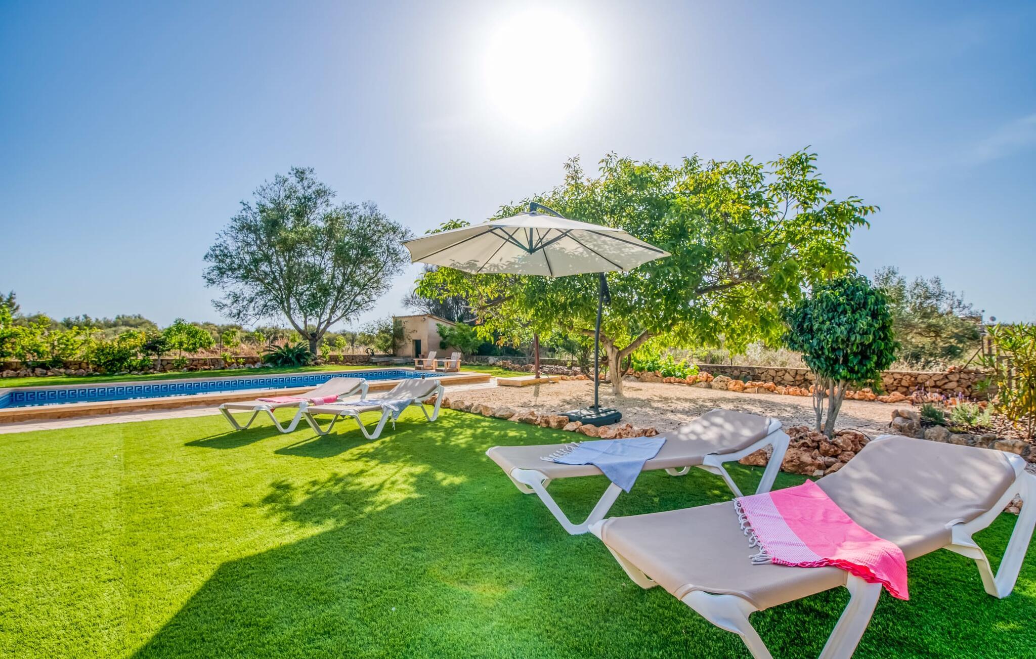Den charmerende bondegård med det melodiøse navn "Roca de Tejos" imponerer med sin behagelige tilbageholdenhed. Hele ejendommen er meget naturlig, haven er præget af gamle oliventræer, majestætiske palmer og middelhavsdiversitet. I kan udforske landsbyen Sa Coma og dens omgivelser til fods eller ved hjælp af de fire tilgængelige cykler. Nyd den mallorcanske idyl i jeres have, som er domineret af et mosaikvandsbassin og en solterrasse. I kan slappe af på liggestolene på plænen eller på liggestolene ved poolen. En smuk veranda strækker sig i hele husets længde. Dette overdækkede område har en lounge og udendørs spiseplads. Grillen er praktisk taget integreret i terrassen. Derfra kommer I ind i husets indre med dens rummelige stue med pejs og spiseplads samt køkkenet. Der er tre soveværelser og to badeværelser, hvoraf badeværelset er en suite med bruseniche. Takket være det varme/kolde klimaanlæg er huset behageligt varmt året rundt og kan bruges som sommerhus i alle måneder. Det charmerende bondehus "Roca de Tejos" imponerer med en smuk middelhavshave og pool i en behagelig, afsondret beliggenhed. Den rustikke ejendom ligger sydøst for den smukke by Sant Llorenç i kystbæltet. Den nærliggende vej betyder, at det kun er 5 minutters kørsel til havet og fantastiske sandstrande som S'Illot eller Sa Coma.