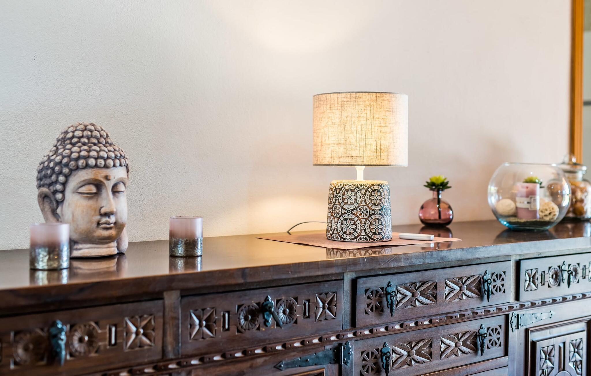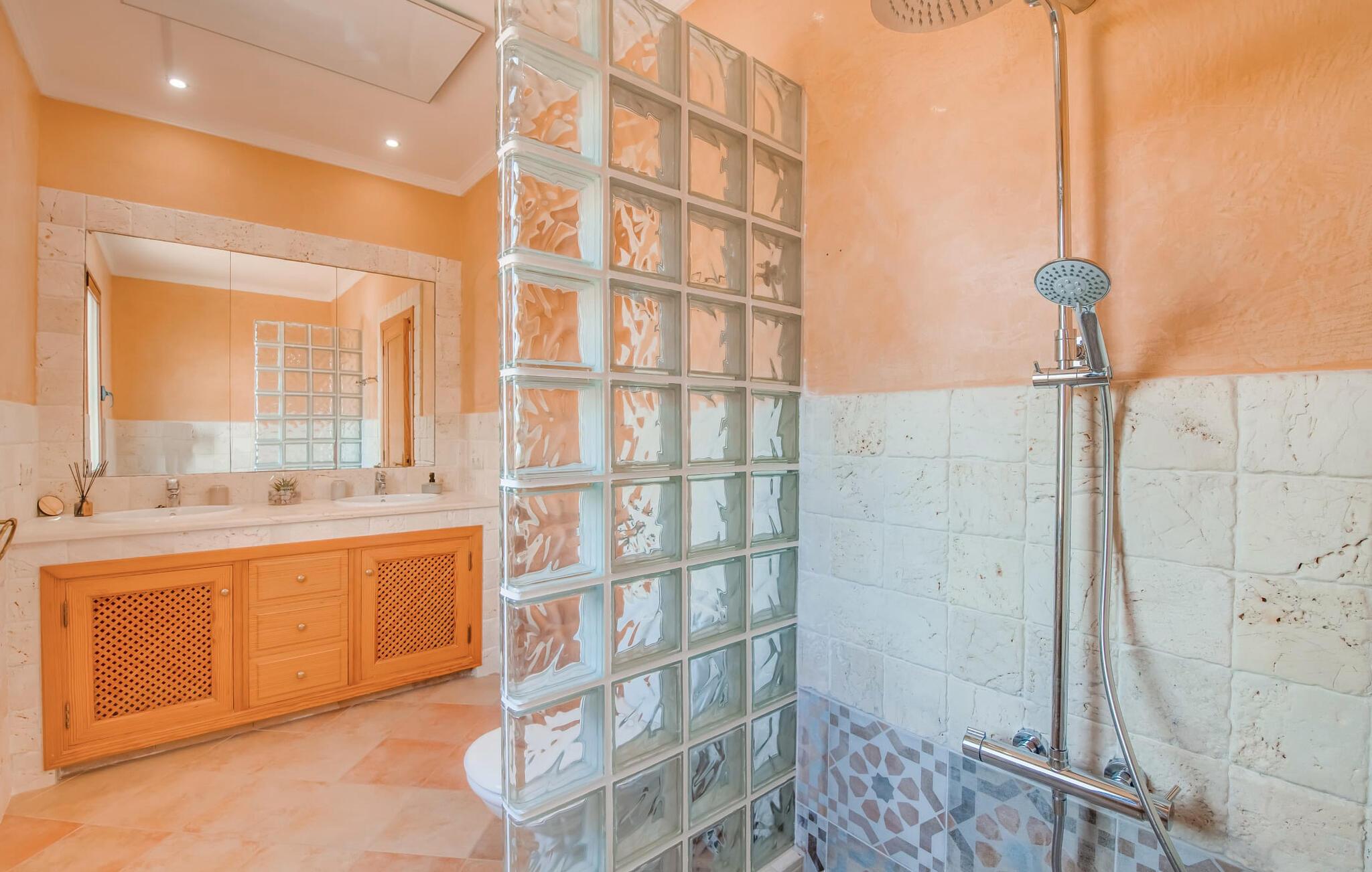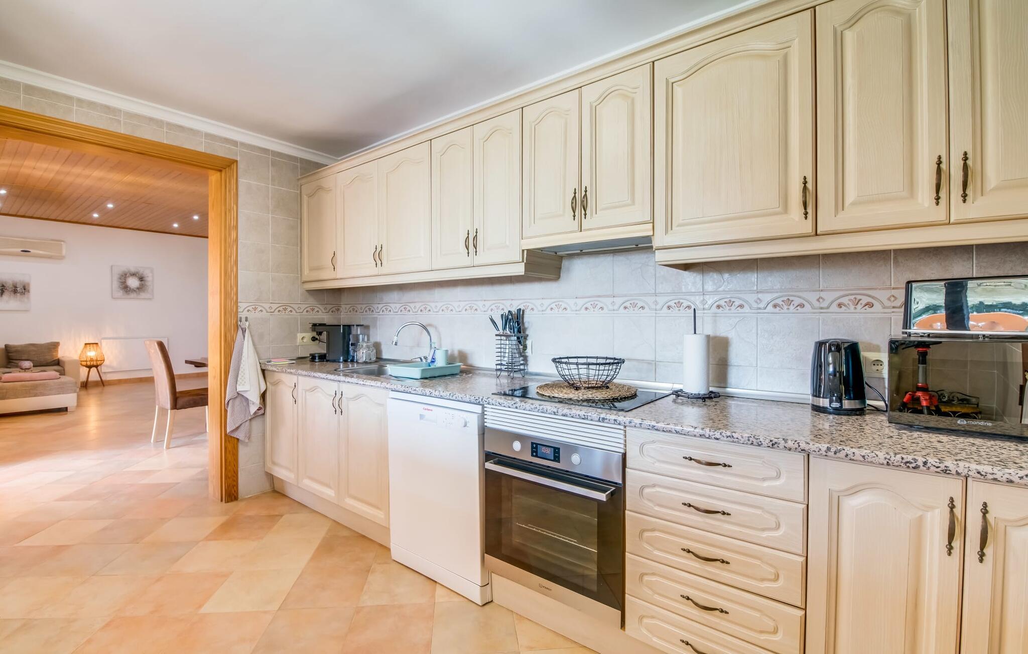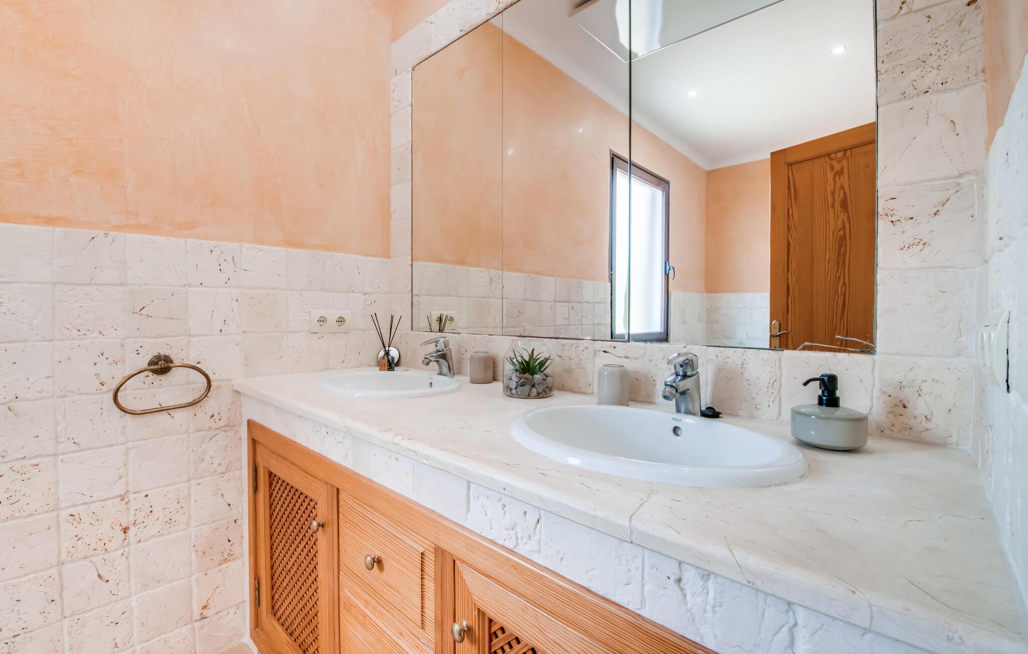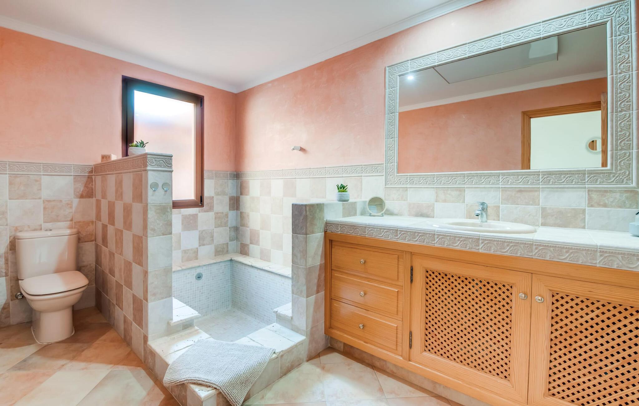 Den charmerende bondegård med det melodiøse navn "Roca de Tejos" imponerer med sin behagelige tilbageholdenhed. Hele ejendommen er meget naturlig, haven er præget af gamle oliventræer, majestætiske palmer og middelhavsdiversitet. I kan udforske landsbyen Sa Coma og dens omgivelser til fods eller ved hjælp af de fire tilgængelige cykler. Nyd den mallorcanske idyl i jeres have, som er domineret af et mosaikvandsbassin og en solterrasse. I kan slappe af på liggestolene på plænen eller på liggestolene ved poolen. En smuk veranda strækker sig i hele husets længde. Dette overdækkede område har en lounge og udendørs spiseplads. Grillen er praktisk taget integreret i terrassen. Derfra kommer I ind i husets indre med dens rummelige stue med pejs og spiseplads samt køkkenet. Der er tre soveværelser og to badeværelser, hvoraf badeværelset er en suite med bruseniche. Takket være det varme/kolde klimaanlæg er huset behageligt varmt året rundt og kan bruges som sommerhus i alle måneder. Det charmerende bondehus "Roca de Tejos" imponerer med en smuk middelhavshave og pool i en behagelig, afsondret beliggenhed. Den rustikke ejendom ligger sydøst for den smukke by Sant Llorenç i kystbæltet. Den nærliggende vej betyder, at det kun er 5 minutters kørsel til havet og fantastiske sandstrande som S'Illot eller Sa Coma.