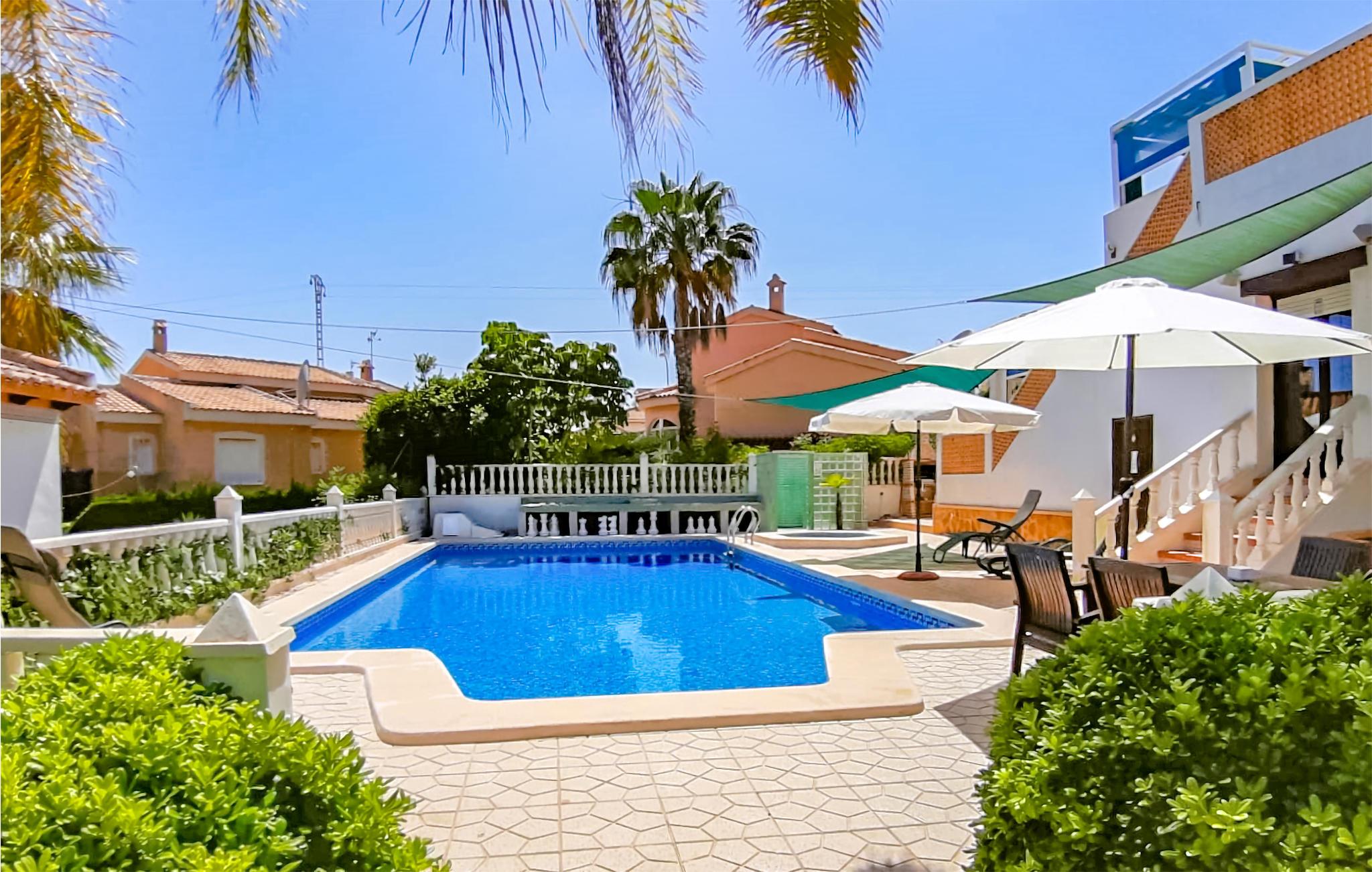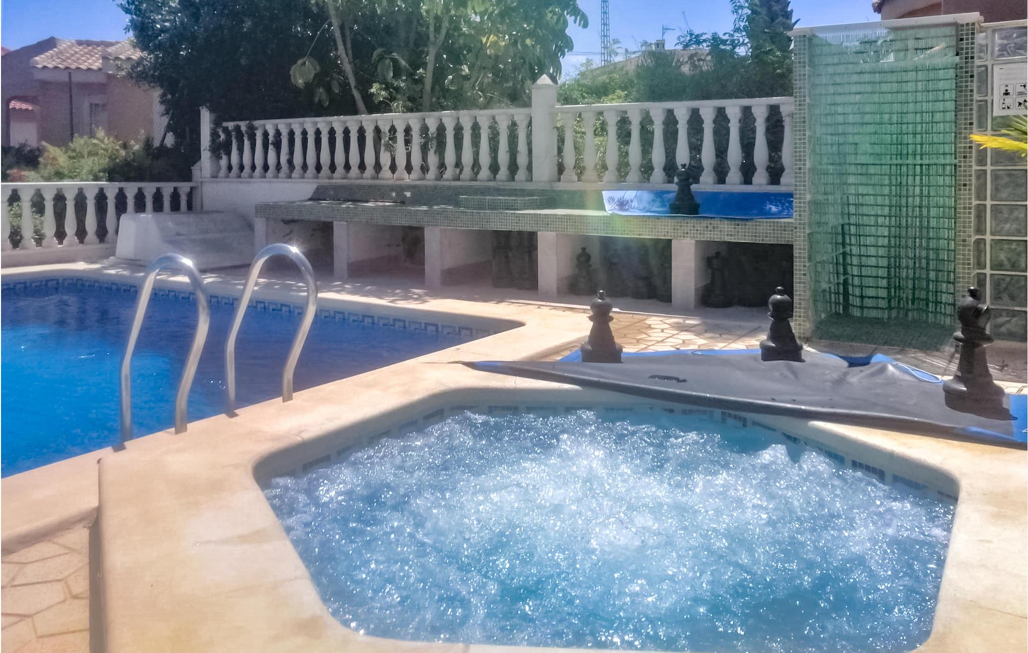 Dette indbydende feriehus i Rojales er perfekt til en uforglemmelig familieferie. Den store pool inviterer til afslappende dage i vandet, mens terrasserne omkring huset byder på både solrige og skyggefulde områder efter behov. Glæd jer til grillaftener under åben himmel eller hyggelige stunder i den veludstyrede bolig med to separate opholds- og soveområder, ideelt til familier eller vennepar. Mod et tillægsgebyr kan I også nyde saunaen og spabadet, som sørger for masser af afslapning.
