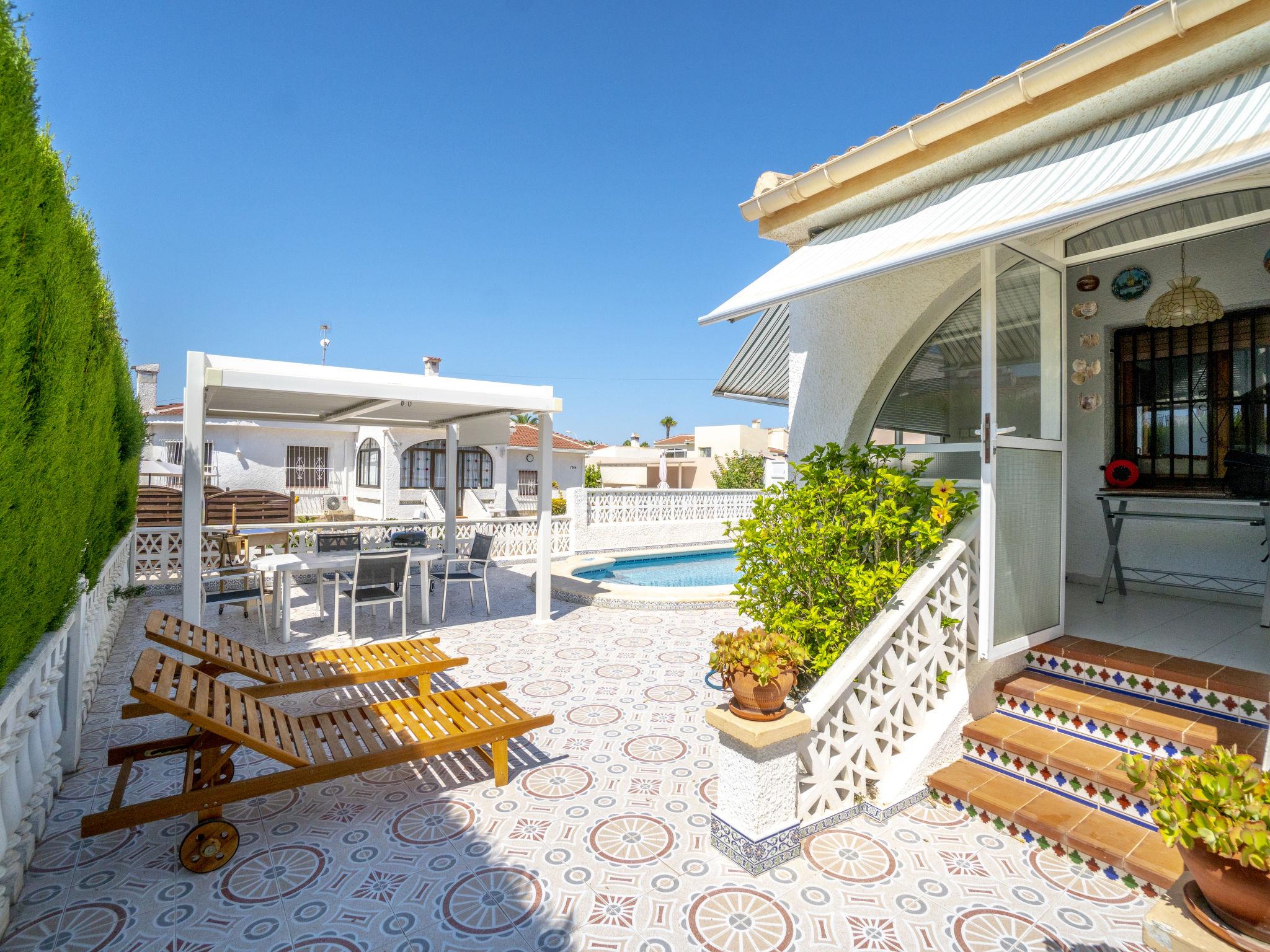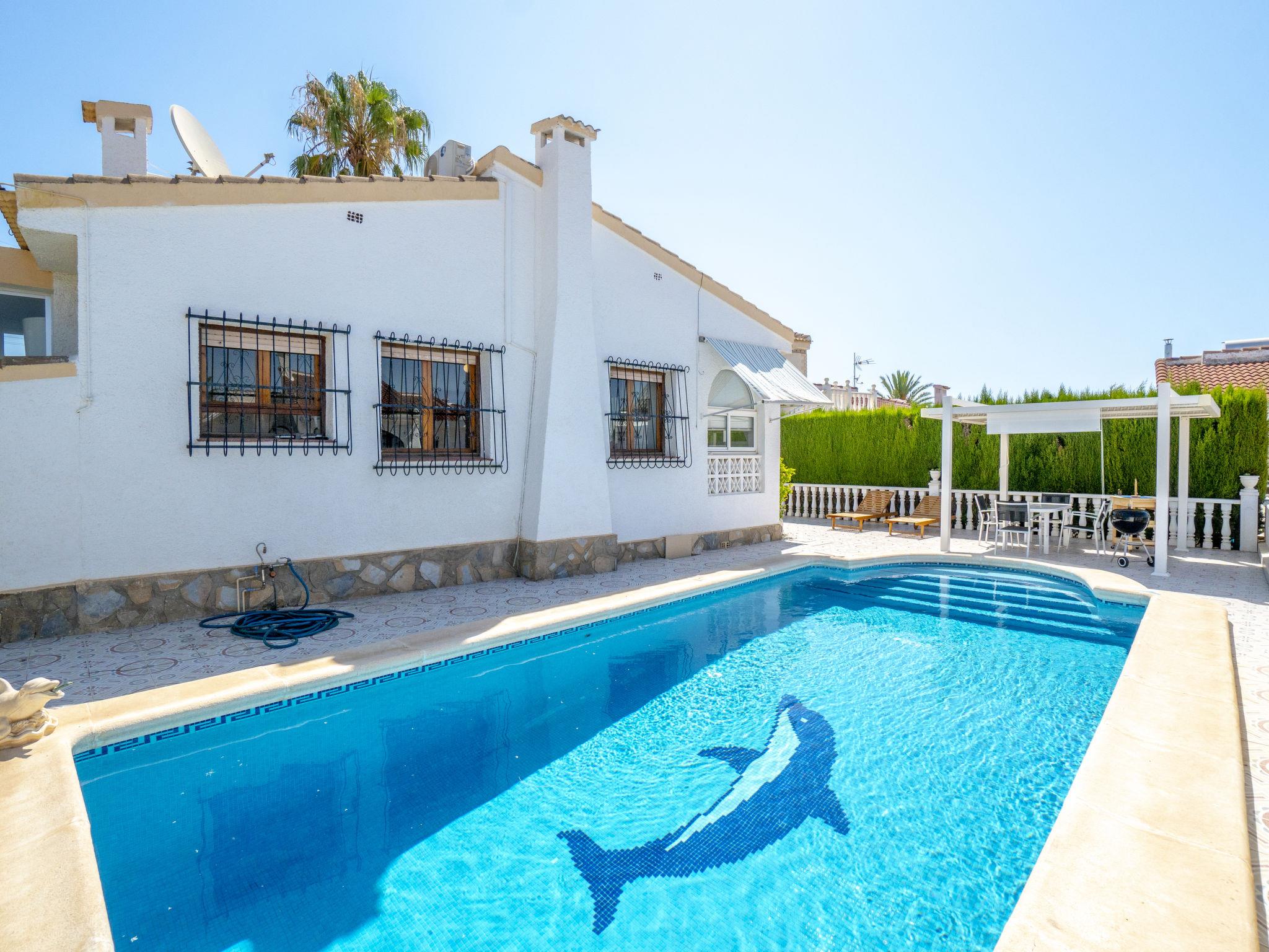 Electric vehicle charging station available at the house for free from 8:00am to 6:00pm, available out of this timeframe (24/24h) for 50€/week. Small, simple, comfortable house "Picasso", built in 1985, renovated in 2018. In the district of Ciudad Quesada, in a quiet, sunny position in the residential district, 10 km from the sea. Private: property 500 m2, garden 350 m2 trees, swimming pool (8 x 4 m, depth 100 - 250 cm, seasonal availability: 01.May. - 31.Oct.). Barbecue, public parking on the road. E-charging station. Grocery, supermarket 500 m, restaurant 1.5 km, bus stop "San Luis – CV-905 pk 6+600" 7 km, railway station "Elche" 23 km, sandy beach 10 km, shingle beach 12 km, outdoor swimming pool 1 km. Golf course (18 hole) 1.5 km. Nearby attractions: AquaPark 1 km. The owner does not accept any youth groups. Please note: airfield 36 km from the property. Neighbourhood highly sensitive to noise. Quietness and good behaviour expected.