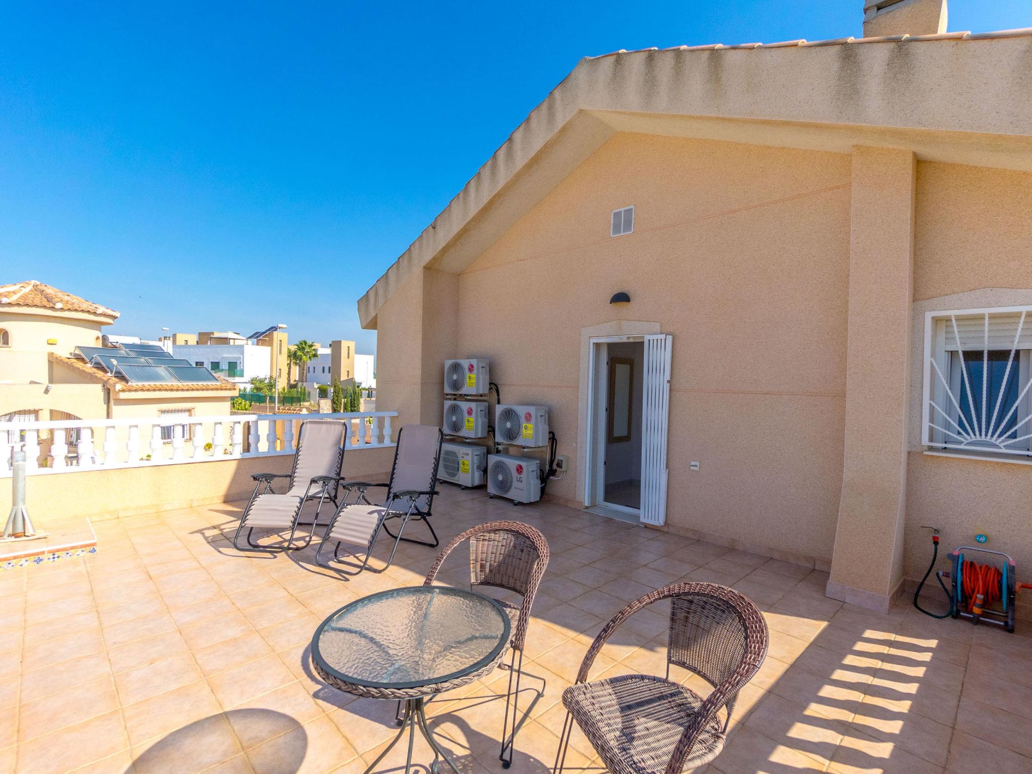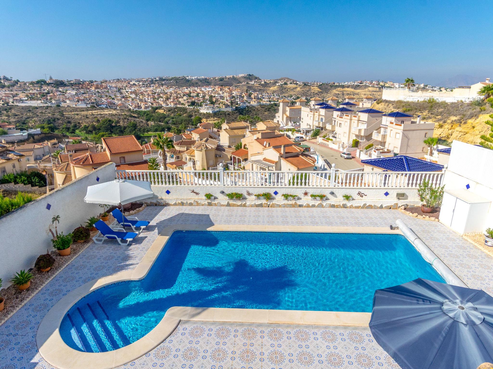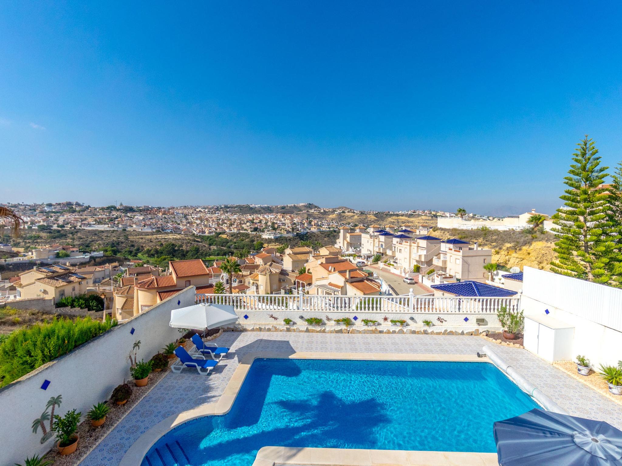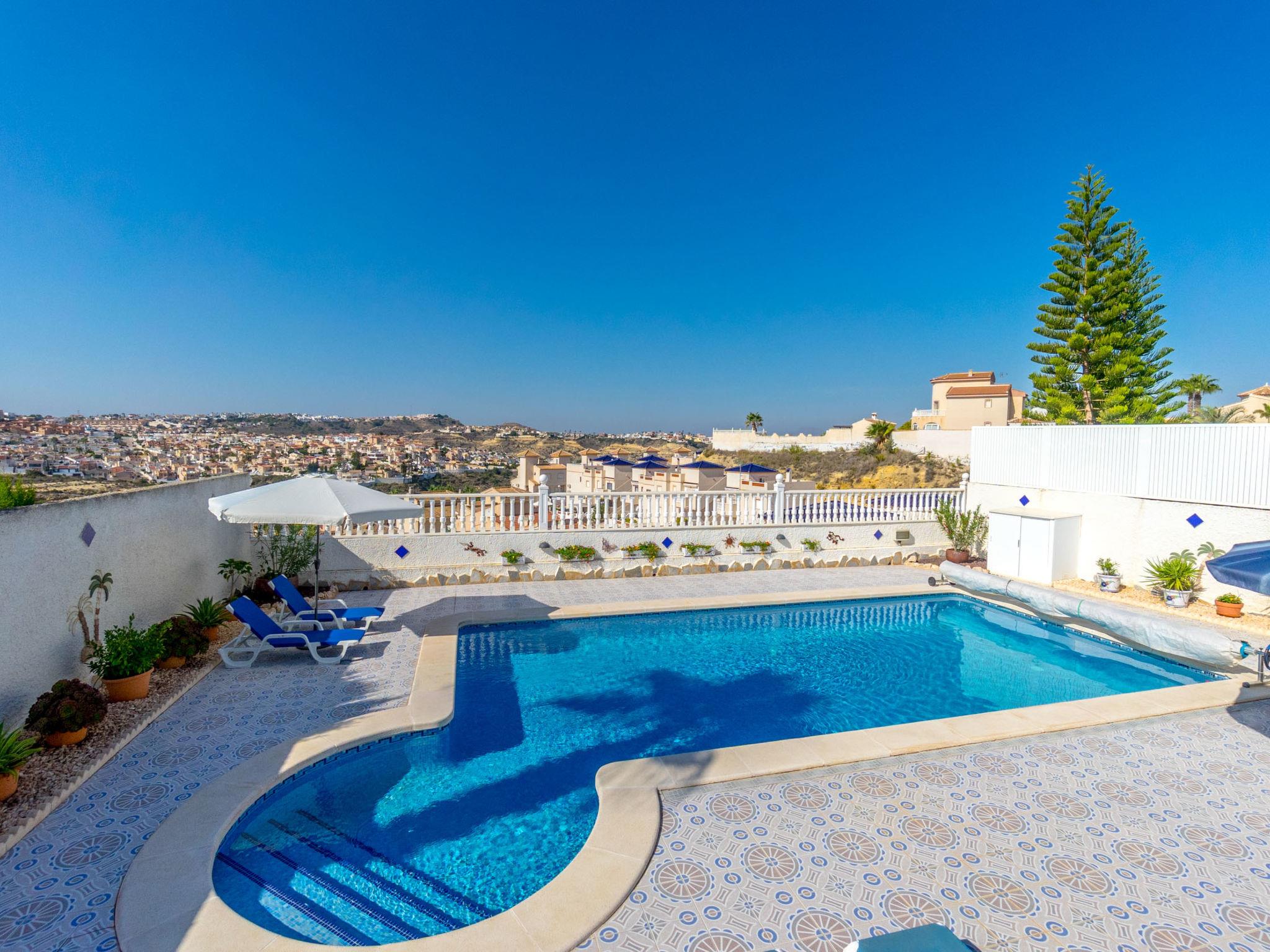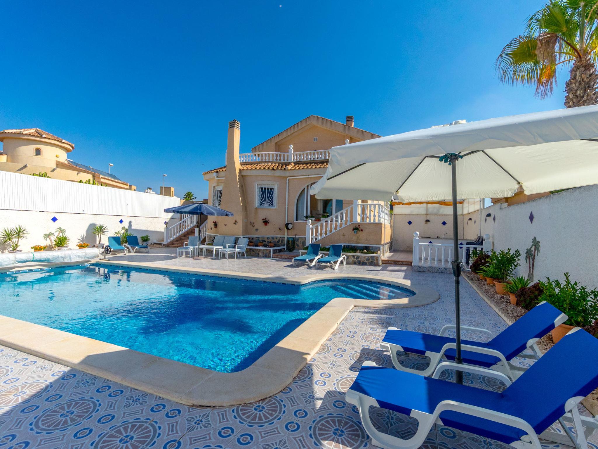 Beautiful villa "Villa Recorral", 2 storeys. 2 km from the centre of Rojales, 8 km from the centre of Guardamar de Segura, in a quiet, sunny position residential area (villas), traffic calmed area, 8 km from the sea, 8 km from the beach. Private: property (fenced), swimming pool (10 x 5 m, depth 50 - 190 cm, seasonal availability: 01.Jun. - 31.Sep.). Shower/WC in the pool area, terrace, garden furniture, barbecue. In the house: burglar alarm system. Grocery 2 km, supermarket 2 km, bus stop 2 km, sandy beach "Playa la Roqueta" 8 km. Golf course (12 hole) 1 km. The owner does not accept any youth groups.