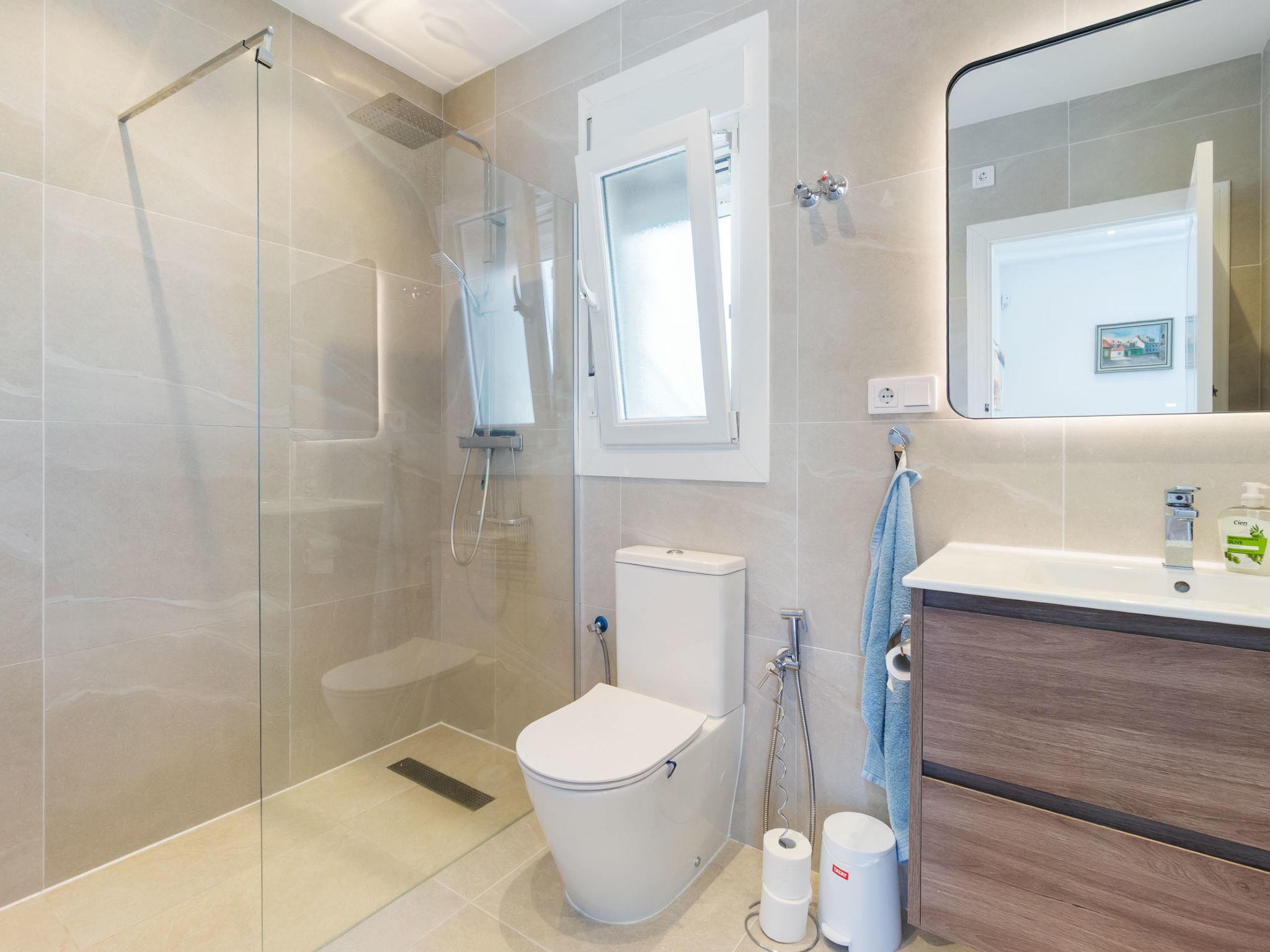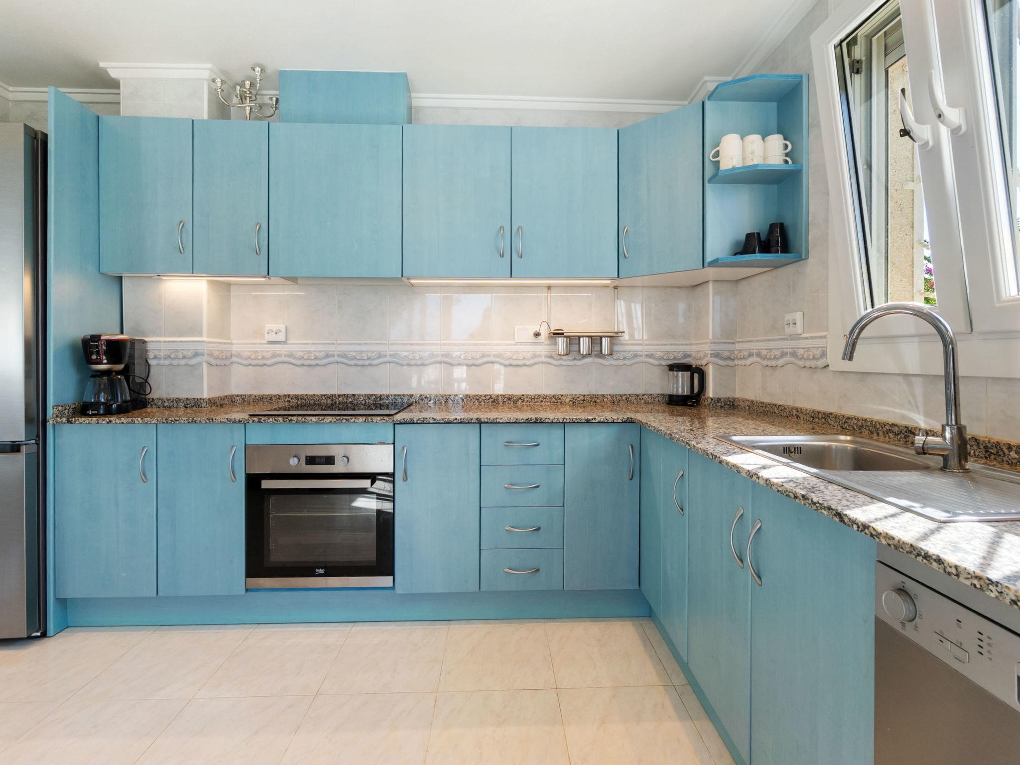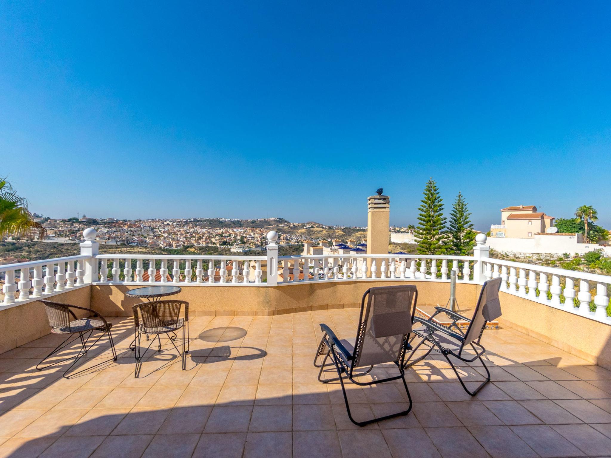 "Villa Recorral", 4-room villa 222 m2 on 2 levels. Spacious and bright, comfortable and beautiful furnishings: open living/dining room with digital TV, air conditioning and forced-air heating. Exit to the terrace, to the loggia. 1 room with 1 french bed (1 x 150 cm, length 185 cm), TV, air conditioning and forced-air heating. 1 room with 2 beds (80 cm, length 185 cm), air conditioning and forced-air heating. Large, open kitchen (oven, dishwasher, 4 induction hot plates, toaster, kettle, microwave, electric coffee machine). Exit to the terrace. Shower/bidet/WC. On the lower ground floor: shower/WC. Upper floor: 1 room with 1 french bed (1 x 160 cm, length 200 cm), shower/WC, TV, air conditioning and forced-air heating. Exit to the terrace. Large terrace. Terrace furniture, barbecue, sitting area. View of the resort, the town and golf course. Facilities: washing machine, iron, mosquito net, children's high chair, baby cot for up to 2 year olds, hair dryer. Internet (WiFi, free). Parking (2 cars). Please note: non-smoking house. AT-501709-A
