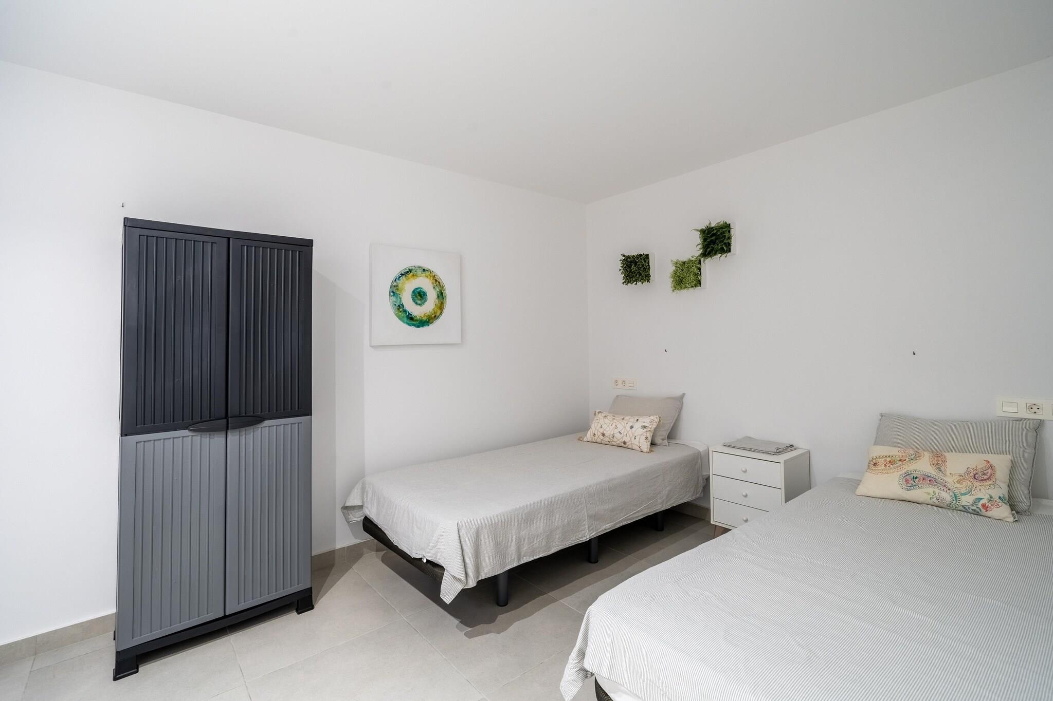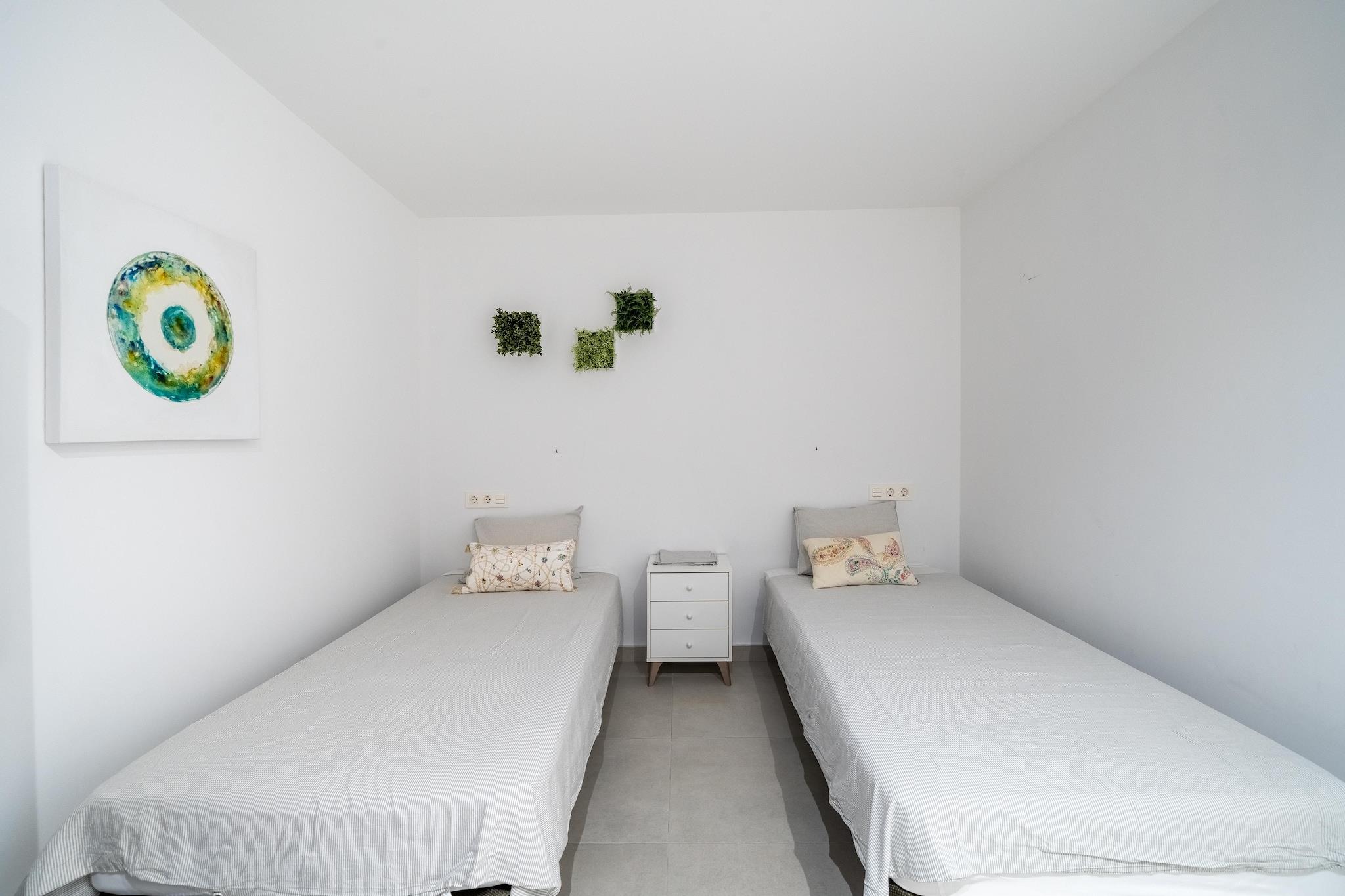 Flygt til luksus i vores rummelige villa i den charmerende by Rojales, det perfekte tilflugtssted for op til seks gæster. Nyd fredfyldte omgivelser og overbærende faciliteter fordelt på tre etager. I stueetagen finder du en indbydende opholdsstue ideel til at samles med dine kære efter en dag med eventyr. Det tilstødende åbne køkken er en kokkens glæde, udstyret med moderne apparater og masser af plads til at tilberede lækre måltider. Dette niveau har også et luksuriøst soveværelse og et badeværelse, hvilket sikrer privatliv og komfort. Aircondition holder rummet køligt og behageligt, selv på de varmeste dage. Træd udenfor til din private oase, hvor en glitrende swimmingpool venter på forfriskende dukkert og afslappede svømmeture. Slap af på liggestolene eller nyd udendørs spisning på den skyggefulde terrasse. Haven, der er udsmykket med komfortable møbler og et loungesæt, er perfekt til at nyde den rolige atmosfære. Bekvemt beliggende kun en kort afstand fra byens centrum og den fantastiske kystlinje tilbyder vores villa den ideelle blanding af luksus og tilgængelighed. For ultimativ forkælelse, slap af i det boblende boblebad for en salig flugt. Bemærk venligst: - Der opkræves et tillæg på 50 EURO for ankomster efter kl. - Måleraflæsninger vil blive taget ved check-in og check-out for elektricitet (undtagen juni-september). - Der gælder et energitillæg for opvarmning af poolen om vinteren (0,35 EURO/KWh for en 30m³ pool), med opvarmning 3-4 dage i forvejen. Et depositum kan være påkrævet baseret på dit opholds varighed. Book dit ophold i dag og oplev det bedste fra Rojales!