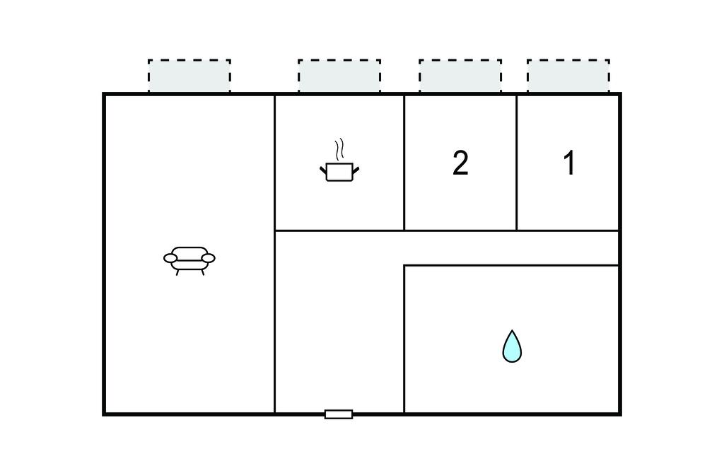 Soveværelse (nr. 1) - 2 Sovepladser. (Enkeltseng(e)).