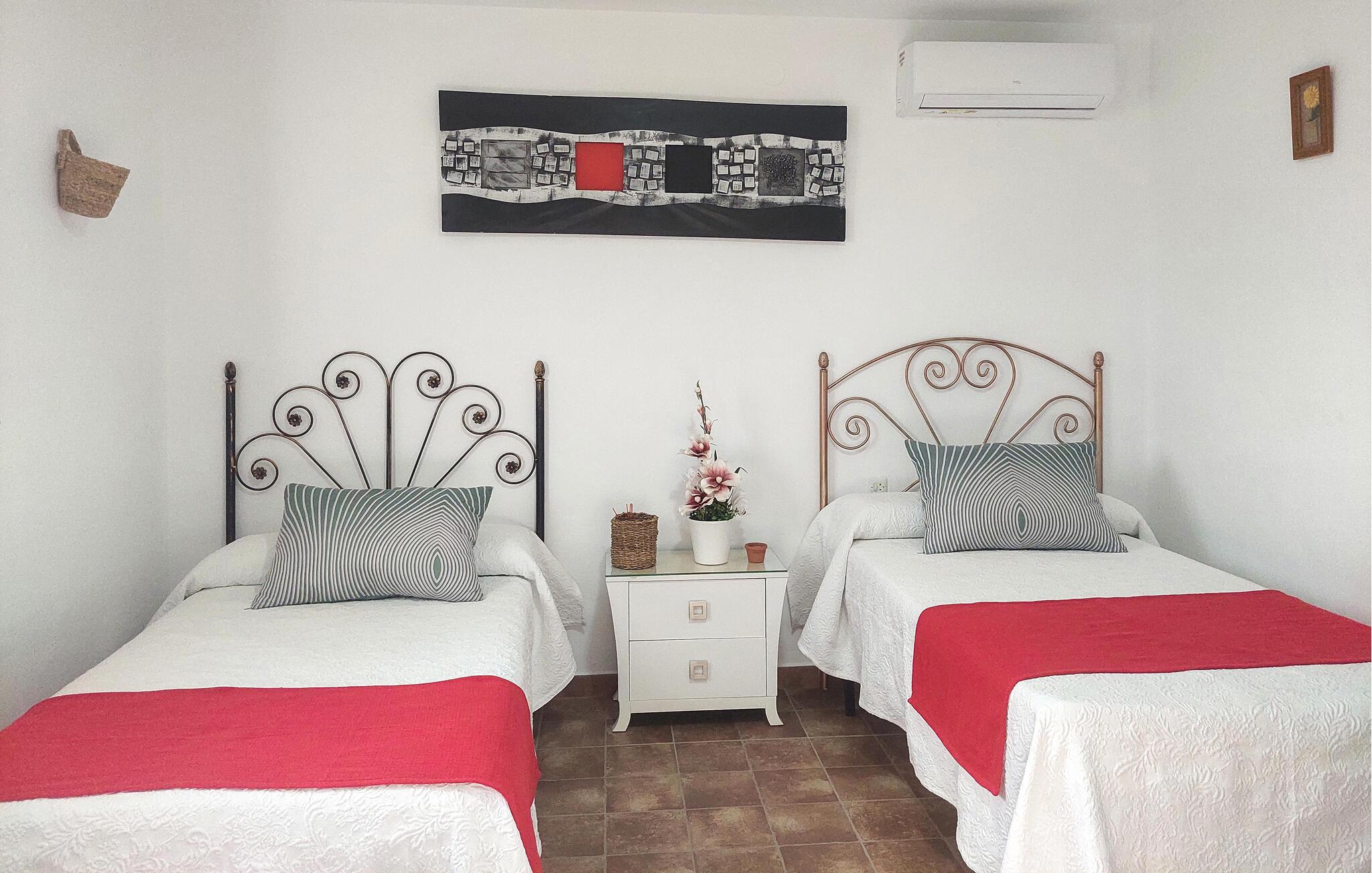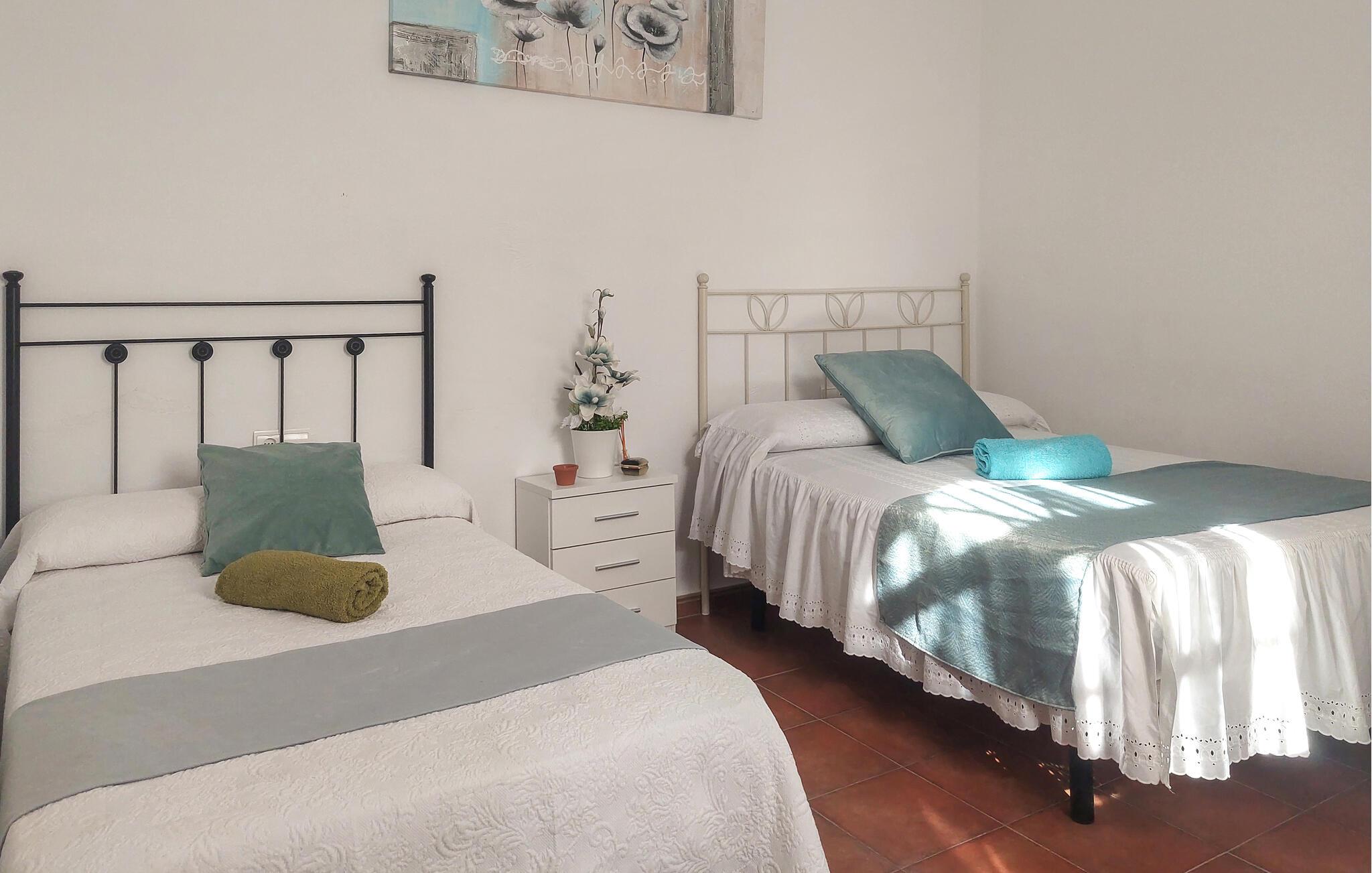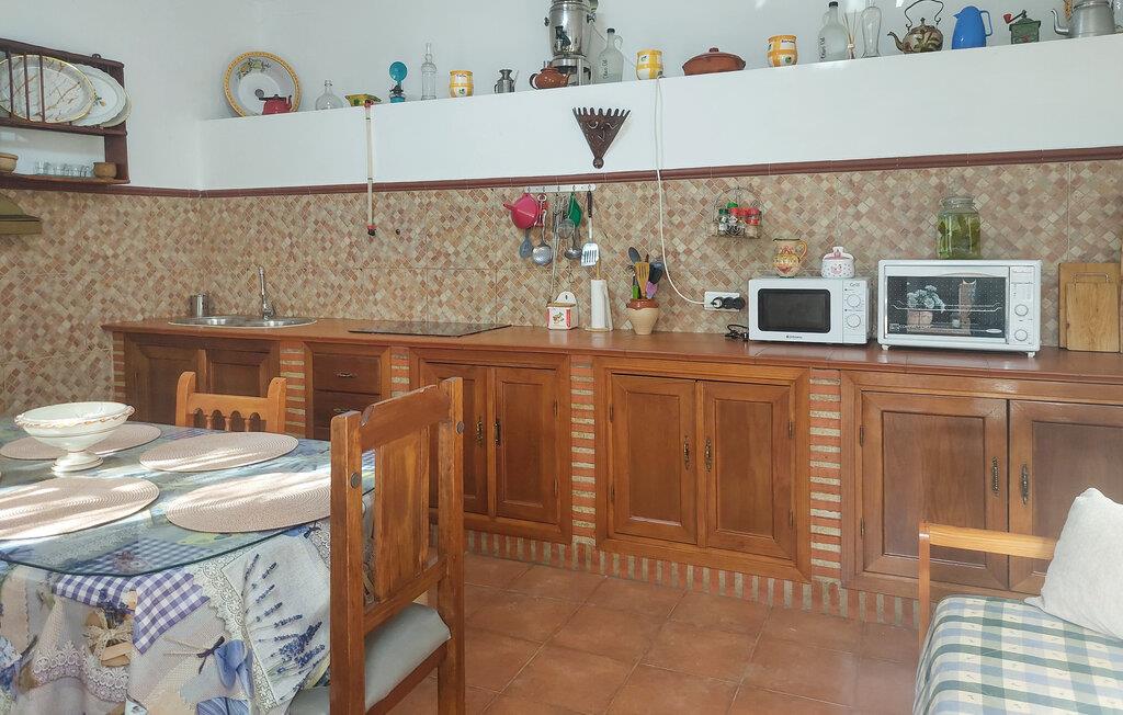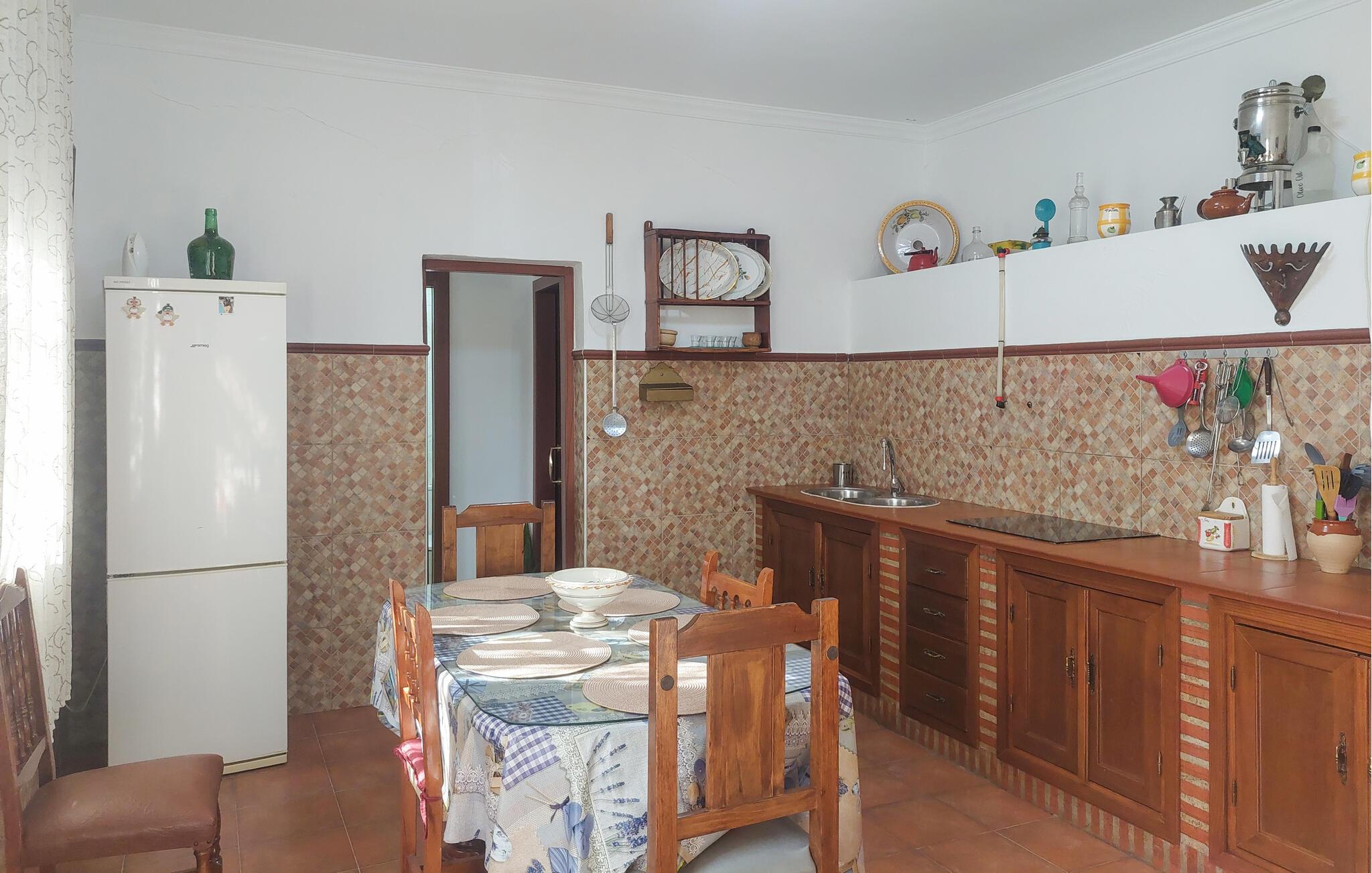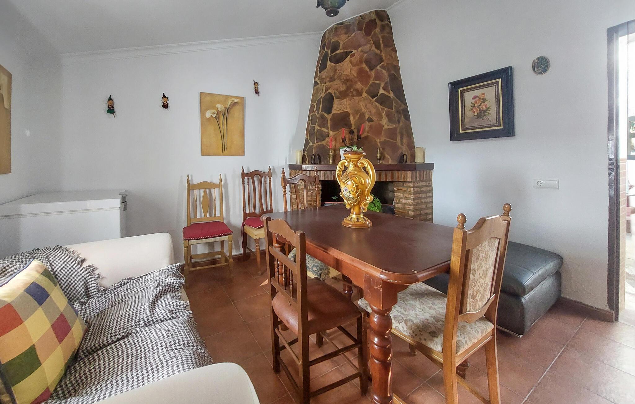 Dit typiske andalusiske feriehus kombinerer ro og traditionel komfort. Det tilbyder rigelig plads til flere familier eller en større gruppe til at slappe af, omgivet af malerisk natur og en betagende udsigt over de omkringliggende bakker. Interiøret er flot indrettet i traditionel stil med rustikke møbler, lyse fliser og komfortable siddeområder. Slap af i stuen ved pejsen eller nyd måltider sammen i en af ??de to spisestuer. Køkkenet tilbyder masser af plads og traditionel charme, perfekt til at tilberede lækre retter.