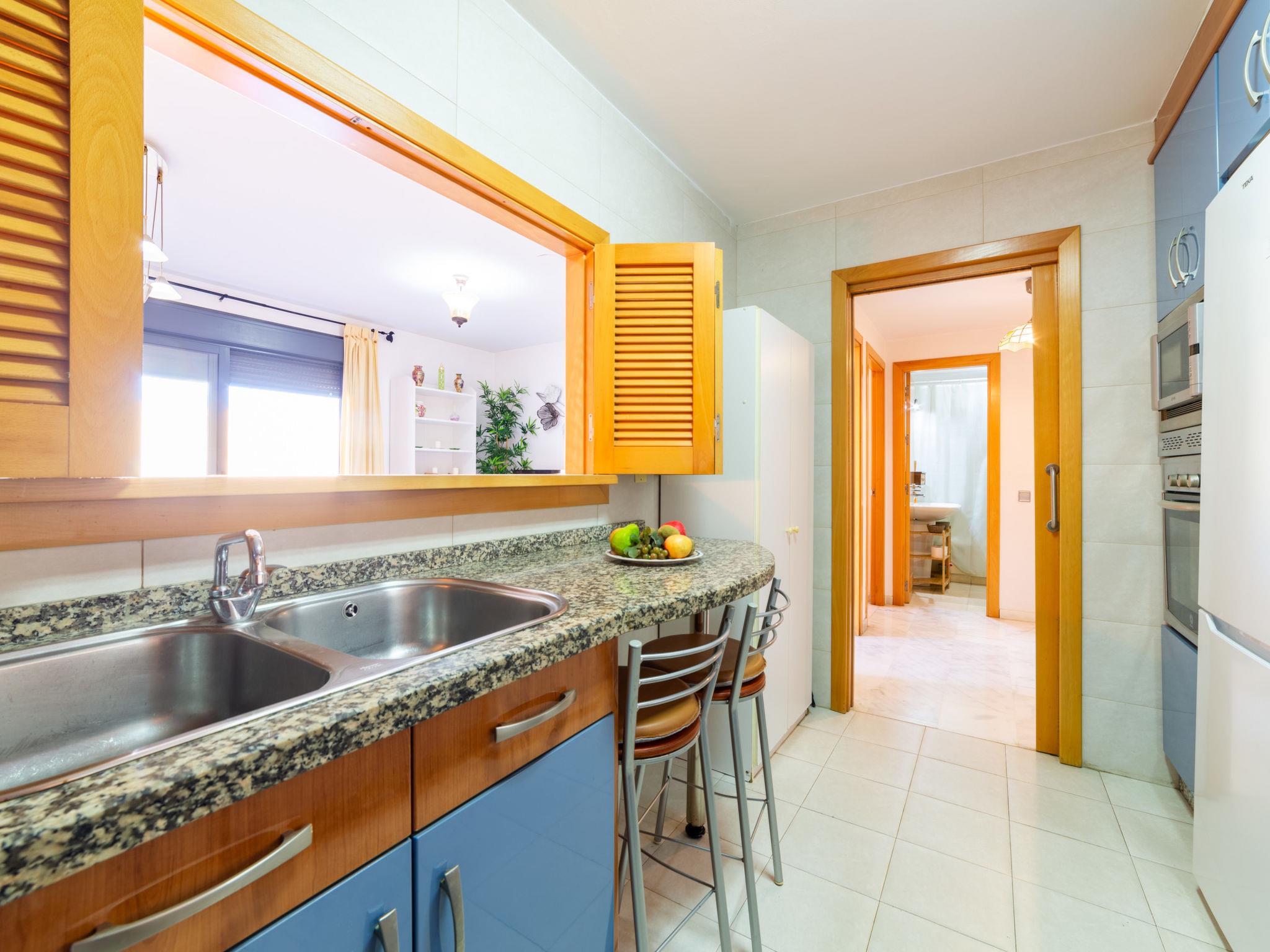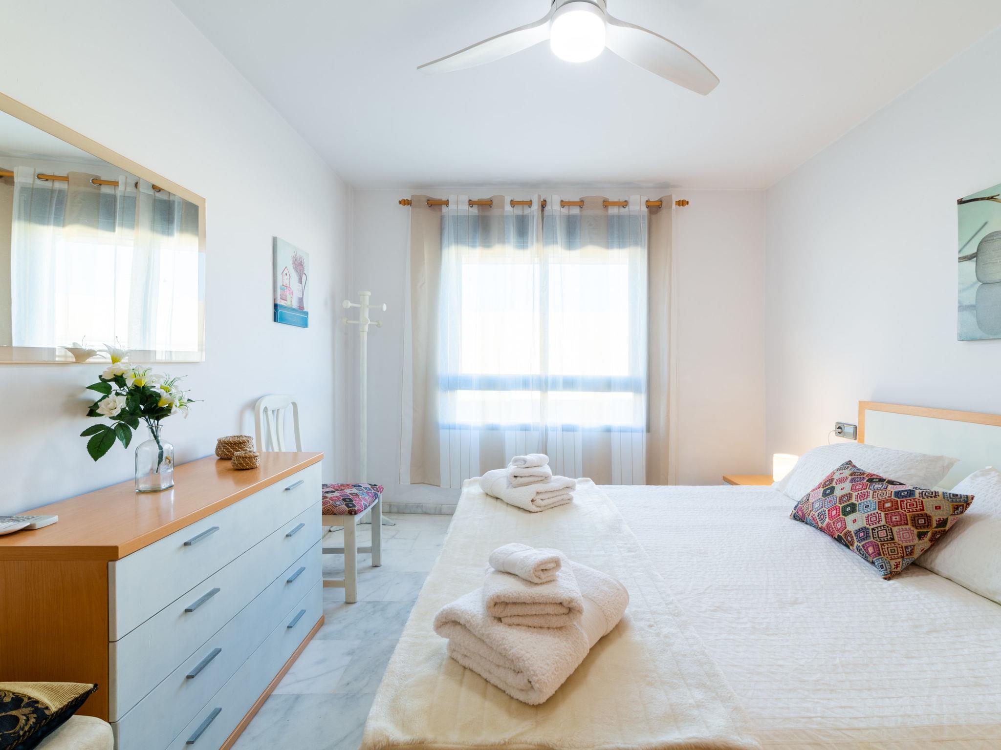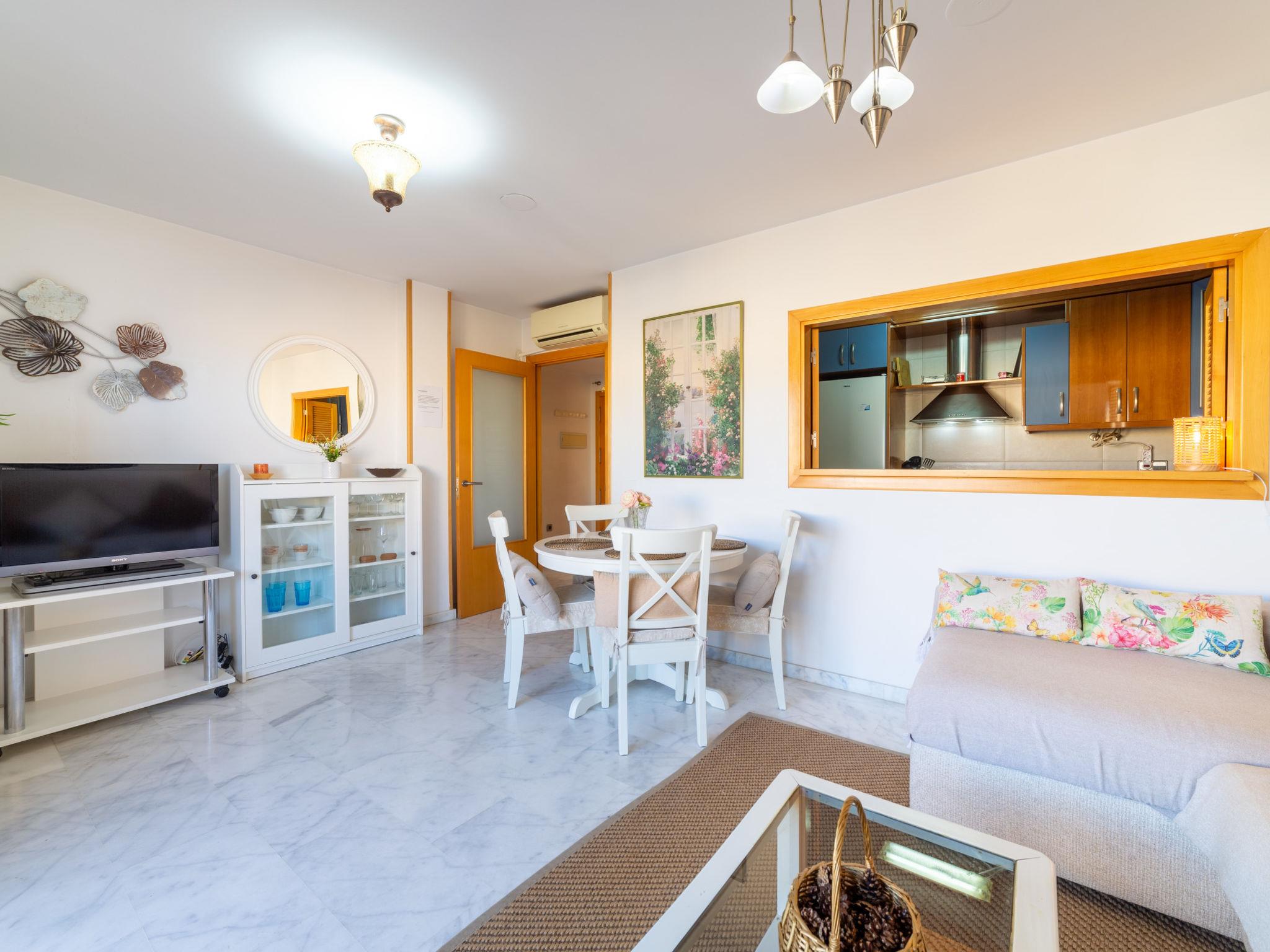 "Dioniso - Playa Romanilla", 2-room apartment 65 m2 on 2nd floor. Practical and comfortable furnishings: living/dining room with 1 double sofabed (135 cm, length 190 cm), dining table, digital TV, flat screen, air conditioning, fan and forced-air heating. Exit to the balcony. 1 room with 1 french bed (160 cm, length 200 cm), air conditioning, fan and forced-air heating. Open kitchen (oven, dishwasher, 4 ceramic glass hob hotplates, toaster, kettle, microwave, freezer, electric coffee machine) with hatch. Bath/bidet/WC. Large balcony. Balcony furniture. Facilities: washing machine, iron, children's high chair, baby cot for up to 2 year olds, hair dryer. Internet (WiFi, free). Parking (roofed) at the house. Please note: suitable for families. Non-smokers only. VFT/AL/09241 // Reg. Nr.: ESFCTU0000040140007720780000000000000000VFT/AL/092413