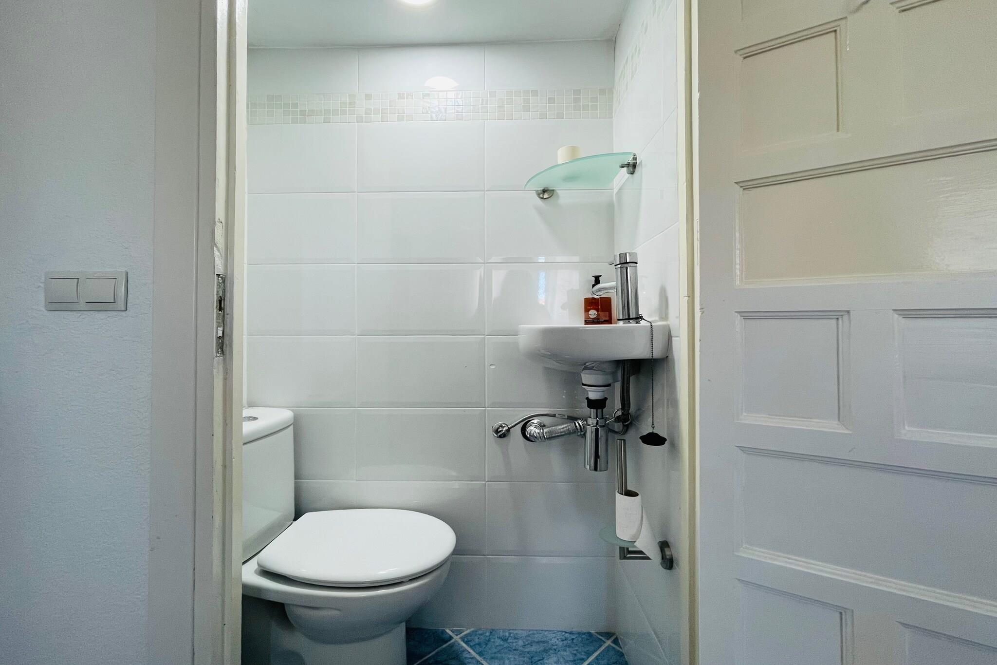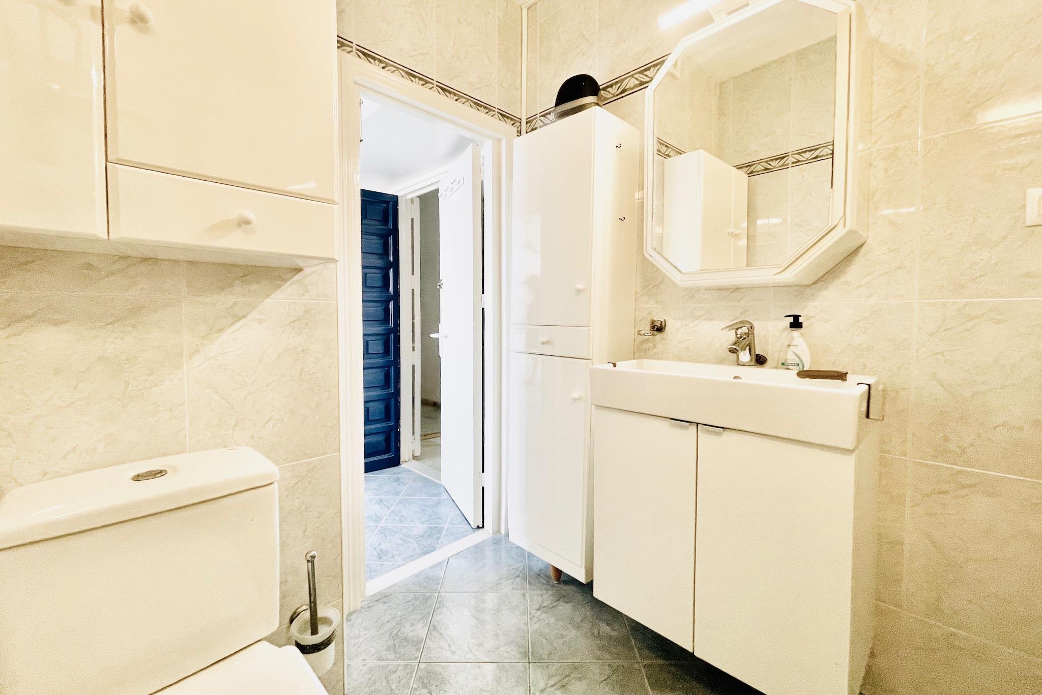 Stueetage: (Indgang (deles med andre gæster, adgang udefra)(elevator)) På 10. etage: (Indgang , Stue(dobbeltsovesofa(140 x 200 cm), Fjernsyn(fladskærm), spisebord, sofahjørne), åbent køkken(kogeplade, elkedel, emhætte, kaffemaskine, ovn, mikrobølgeovn, køle-fryseskab, vaskemaskine), Soveværelse med badeværelse(dobbeltseng(135 x 190 cm), toilet), badeværelse(bruser, håndvask, toilet), varme, klimaanlæg) havedøre, have(deles med andre gæster), havemøbler, grill, parkering, swimmingpool(deles med andre gæster, udendørs, opened from Jun upto and including Sep)