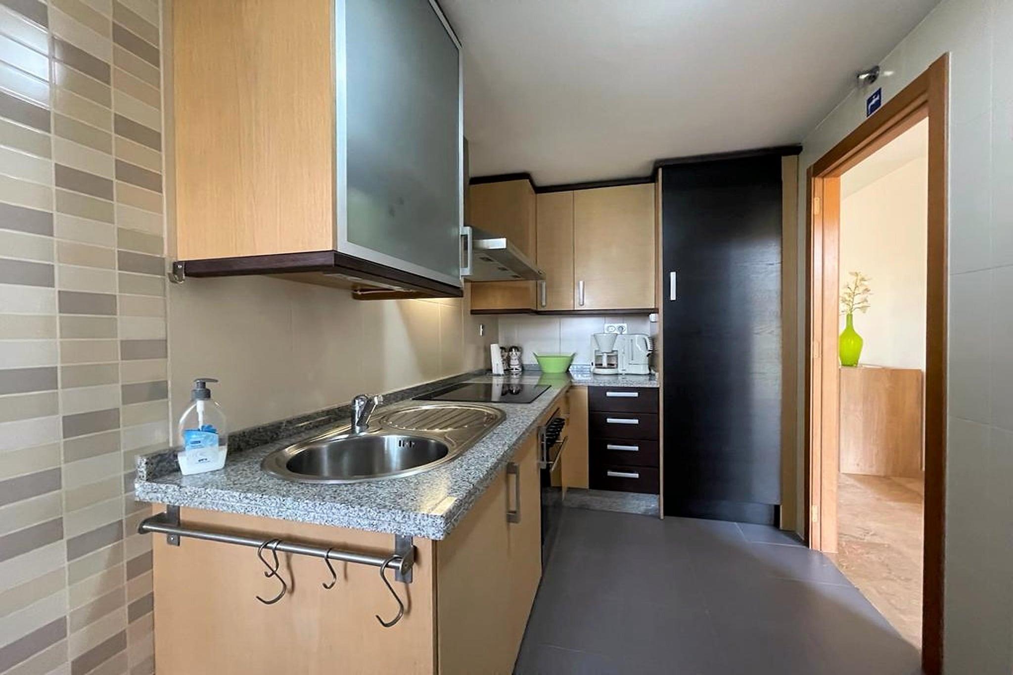 Beliggende i de fredelige omgivelser i Residential Vereda Golf, tilbyder denne indbydende lejlighed på anden sal den perfekte blanding af komfort, bekvemmelighed og feriestemning - ideel til familier, par eller venner, der søger en afslappet ferie. Interiøret åbner ind i et lyst og indbydende opholdsrum med en enkelt sovesofa, tv, spisebord og komfortable siddepladser, hvilket skaber et afslappende knudepunkt for sociale øjeblikke og rolige aftener. Det tilstødende fuldt udstyrede køkken gør det nemt at tilberede hjemmelavede måltider og afslappede morgenmader. Lejligheden indeholder to komfortable soveværelser - et soveværelse med en dobbeltseng og et andet soveværelse med to enkeltsenge - ideelt til børn eller venner. Der er to moderne badeværelser, et med en kombination af badekar og bruser og et andet med separat bruser, hvilket sikrer privatliv og rolige morgener. Et dedikeret vaskerum med vaskemaskine giver ekstra bekvemmelighed ved længere ophold. Ekstra bekvemmeligheder inkluderer aircondition, luft-til-luft varmepumpe, elevatoradgang og parkering i garage med fælles indgang, hvilket skaber et nemt og behageligt ophold fra ankomst til afrejse. Udenfor er din private terrasse på 15 m² møbleret til udendørs spisning og afslapning, med direkte adgang til den fælles oplyste have - et fredeligt grønt område med siddeområder og hængekøjer. Den udendørs swimmingpool tilbyder forfriskende afslapning på solrige dage, mens fælles fitnessudstyr giver dig mulighed for at holde dig aktiv under hele dit ophold. Denne lejlighed tilbyder en afslappet resortlivsstil med alle hjemmets bekvemmeligheder - en ubesværet base for at nyde solskin, hvile og kvalitetstid sammen.