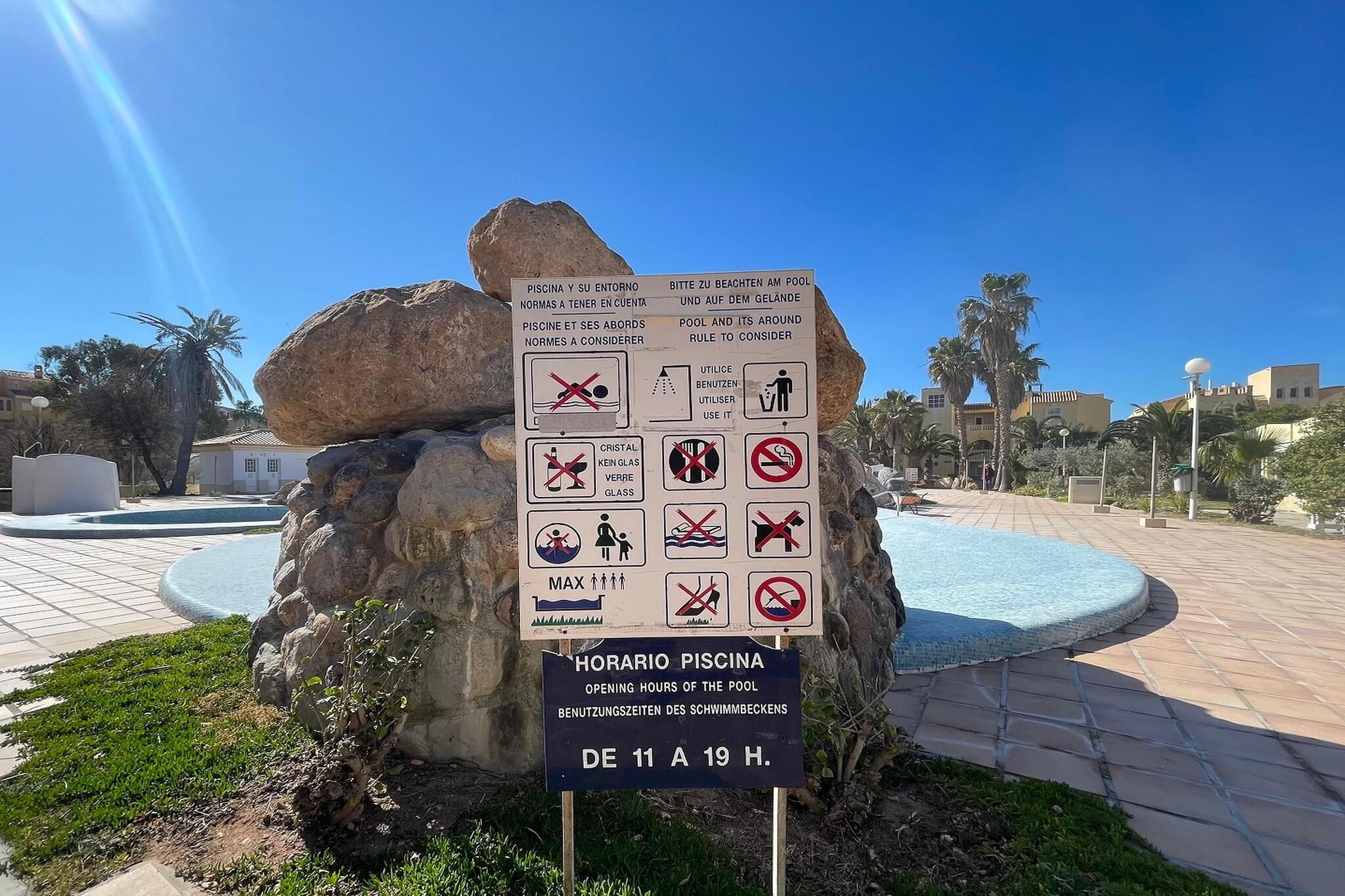 På 1. etage: (Indgang (deles med andre gæster, adgang udefra), åbent køkken(kogeplade, brødrister, emhætte, kaffemaskine, mikrobølgeovn, køle-fryseskab), stue / spisestue(enkeltsovesofa, Fjernsyn(kabel, fladskærm, parabol), spisebord(4 personer), sofahjørne, balkon eller terrasse), soveværelse(enkeltseng(90 x 200 cm), enkeltseng(90 x 200 cm)), soveværelse(dobbeltseng(135 x 200 cm)), badeværelse(badekar med bruser, håndvask, toilet, føntørrer), balkon eller terrasse, klimaanlæg, luft til luft-varmepumpe) hottub, solarium, vaskemaskine(deles med andre gæster), have(deles med andre gæster, oplyst), havemøbler, parkering, Parasol, swimmingpool(deles med andre gæster, udendørs, inkl. separat børne swimmingpool (maks. dybde 50 cm), opened from Jun upto and including Sep), swimmingpool(deles med andre gæster, udendørs, opened from Jun upto and including Sep), tennisbane(deles med andre gæster), hængekøje, strygebræt, strygejern