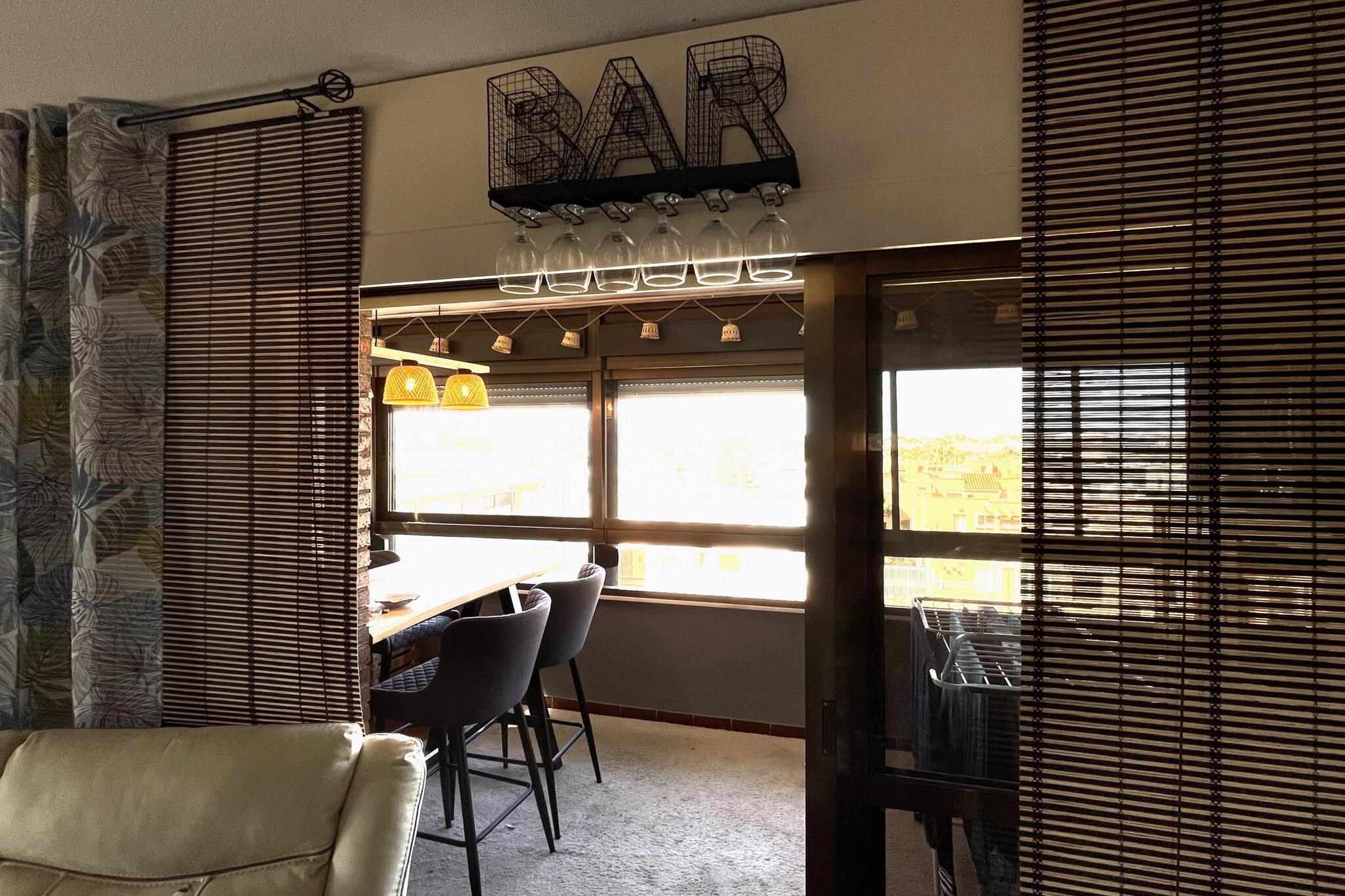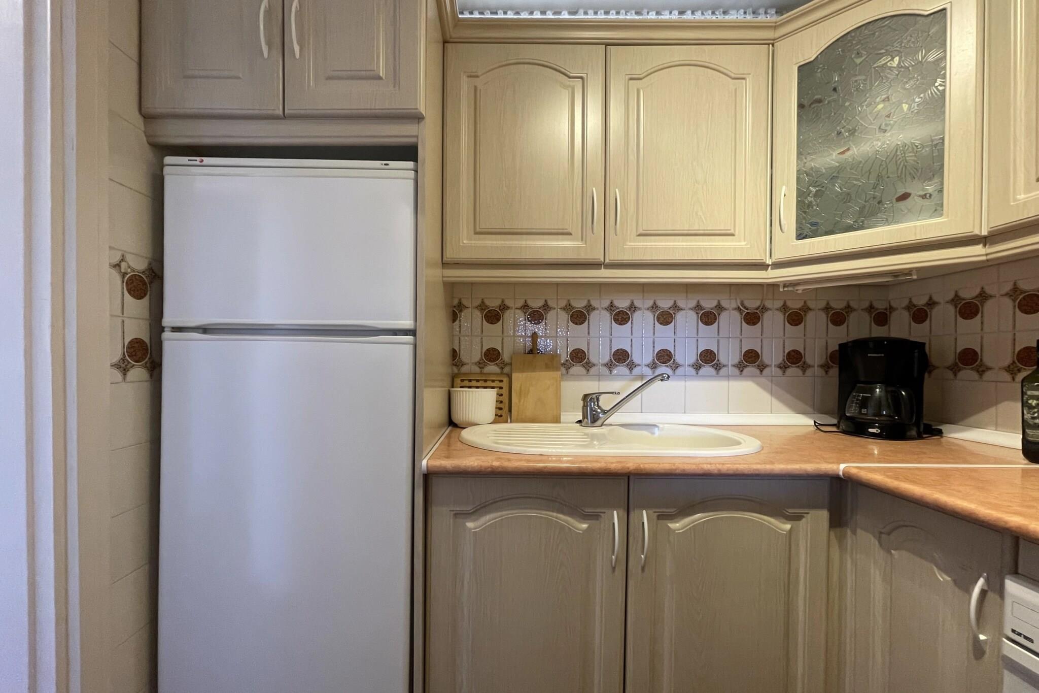 Stueetage: (Indgang (elevator)) På 4. etage: (Indgang , Køkken(kogeplade, elkedel, emhætte, kaffemaskine, ovn, mikrobølgeovn, køle-fryseskab), stue / spisestue(Fjernsyn(fladskærm), spisebord, sofahjørne), soveværelse(dobbeltseng), soveværelse(dobbeltseng), badeværelse(bruser, håndvask, toilet), varme, klimaanlæg, terrasse(privat), havemøbler) have, parking lot(public), swimmingpool(deles med andre gæster, udendørs, opened from May upto and including Sep)
