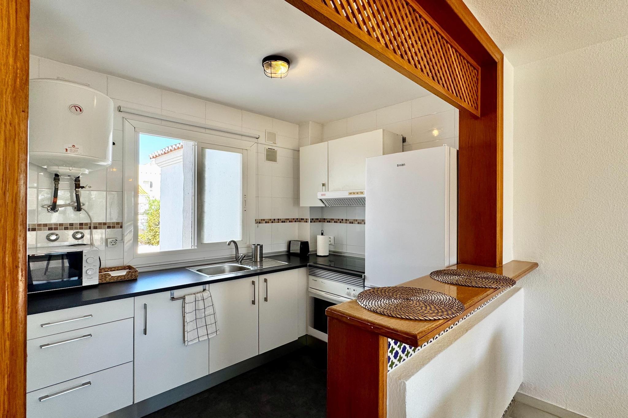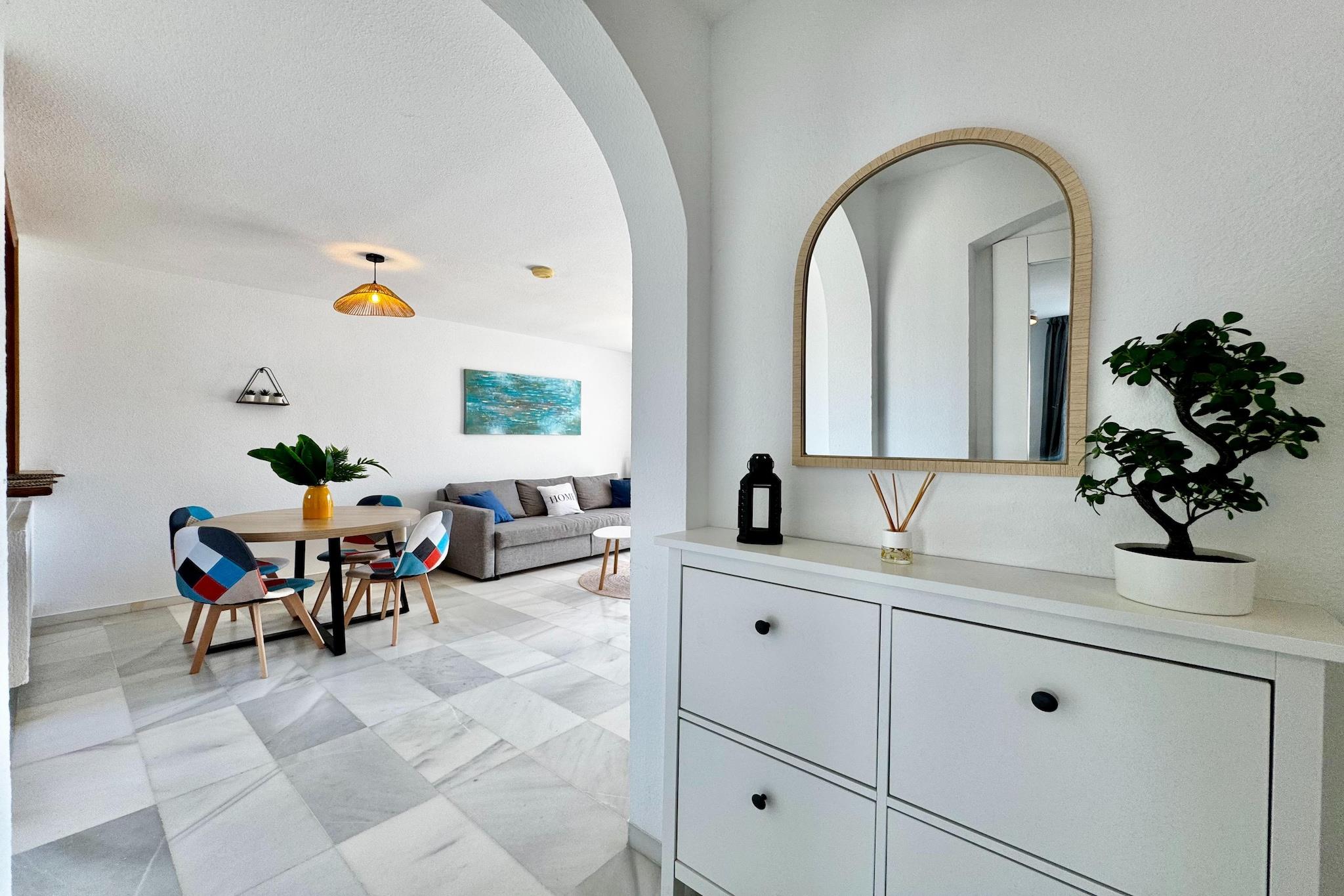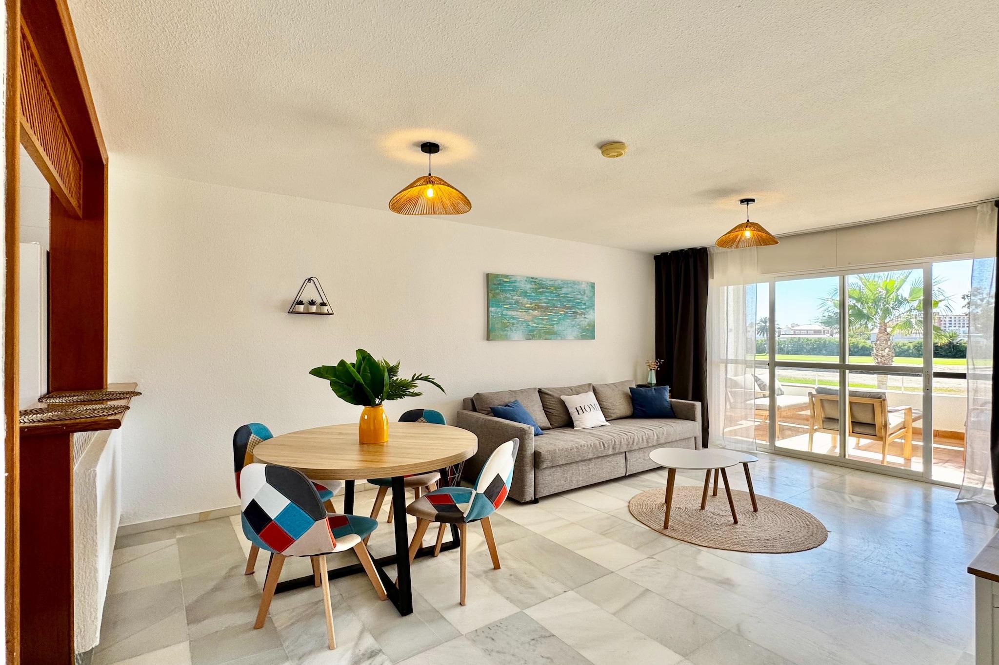 Nyd en afslappende ferie ved kysten i denne stilfulde lejlighed beliggende i hjertet af Poblado Golf Center, kun en kort gåtur fra den smukke Playa Serena. Omgivet af anlagte haver tilbyder dette charmerende tilflugtssted adgang til en fælles swimmingpool, en legeplads og åbne grønne områder, der er perfekte til både familier og par. Lejligheden er smagfuldt indrettet i moderne stil og er fuldt udstyret til både feriegæster og fjernarbejdere. Du finder højhastigheds-Wi-Fi, internationalt tv og et komfortabelt indendørs opholdsområde designet til både afslapning og produktivitet. Træd ud på den private terrasse, der er ideel til solrige morgenmader, videoopkald eller en aftendrink med fredfyldt udsigt over haven og poolen. Med en frisk kystbrise, der driver igennem, vil du måske aldrig forlade stedet. Inden for gåafstand kan du udforske det bløde sand ved Playa Serena og dens rolige promenade, eller spille tee på den nærliggende Playa Serena Golfklub, der ligger kun få minutter væk. Området byder også på en række restauranter, strandbarer og cykelstier, hvilket gør det nemt at udforske kystlinjen i dit eget tempo. For naturelskere er naturparken Punta Entinas-Sabinar kun en kort køretur væk, et paradis for fuglekiggeri, vandreture og uspolerede strande. Uanset om du søger sol, sport eller ro, tilbyder denne velbeliggende lejlighed den ideelle base for en uforglemmelig andalusisk ferie.