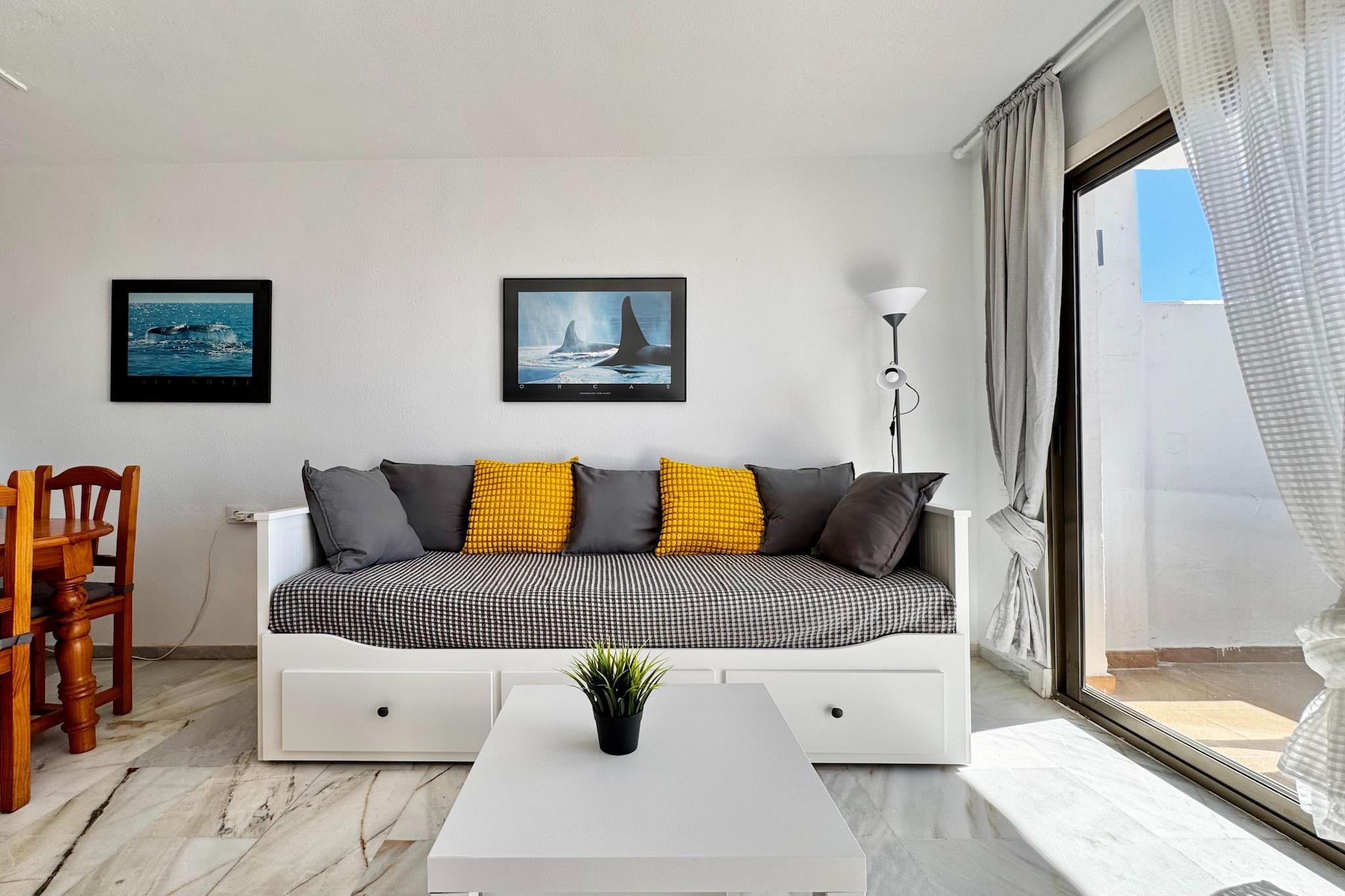 Stueetage: (Indgang (fælles indgang)(elevator)) På 7. etage: (Indgang , åbent køkken(kogeplade, brødrister, emhætte, kaffemaskine, ovn, mikrobølgeovn, køle-fryseskab, vaskemaskine), stue / spisestue(dobbeltsovesofa, Fjernsyn(fladskærm, Internationale TV-kanaler), sofahjørne), soveværelse(dobbeltseng), badeværelse(bruser, håndvask, toilet), balkon eller terrasse, varme, klimaanlæg) havedøre, have(deles med andre gæster), havemøbler, swimmingpool(deles med andre gæster, udendørs, opened from Jun upto and including Sep), strygebræt, strygejern