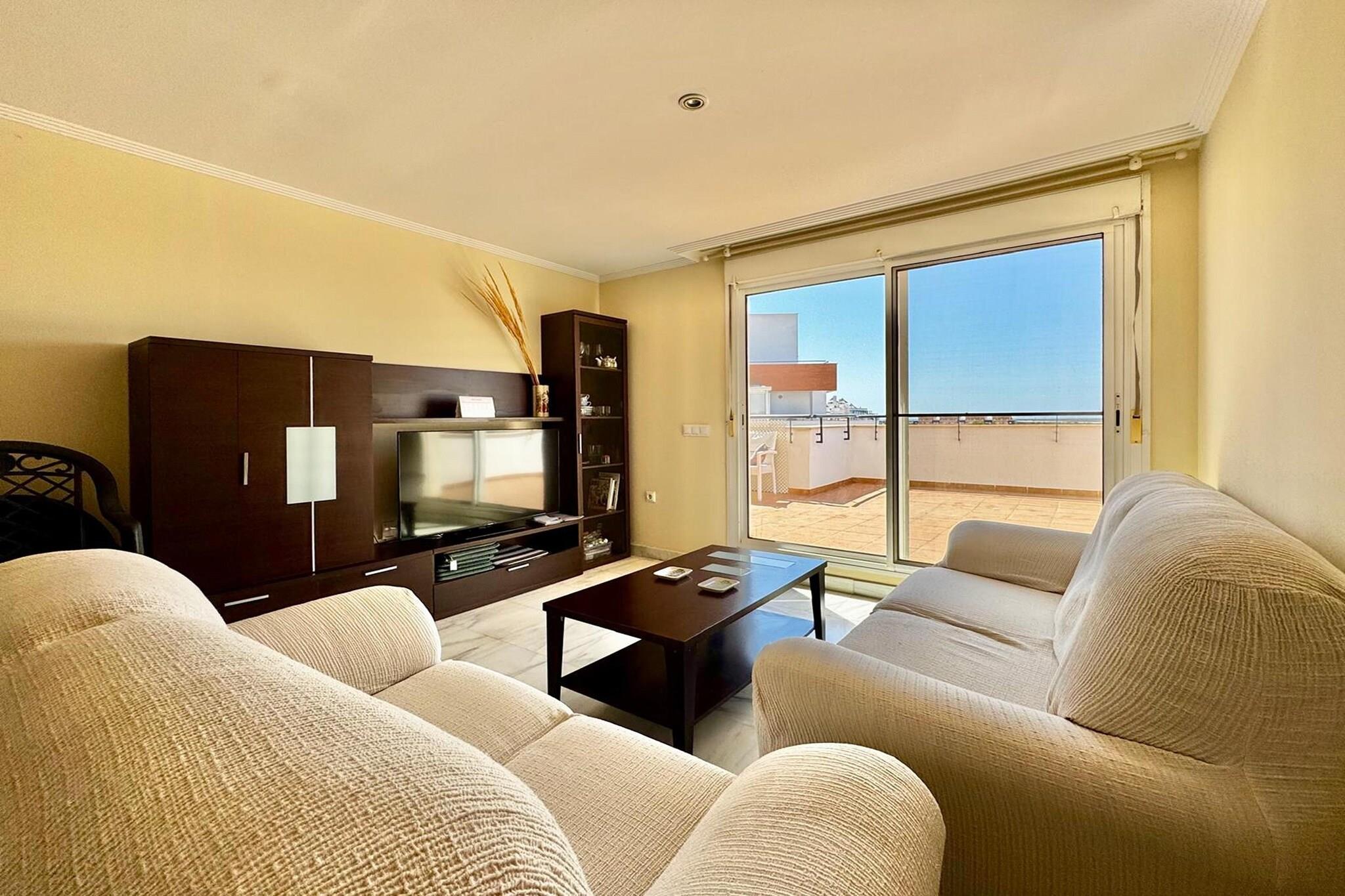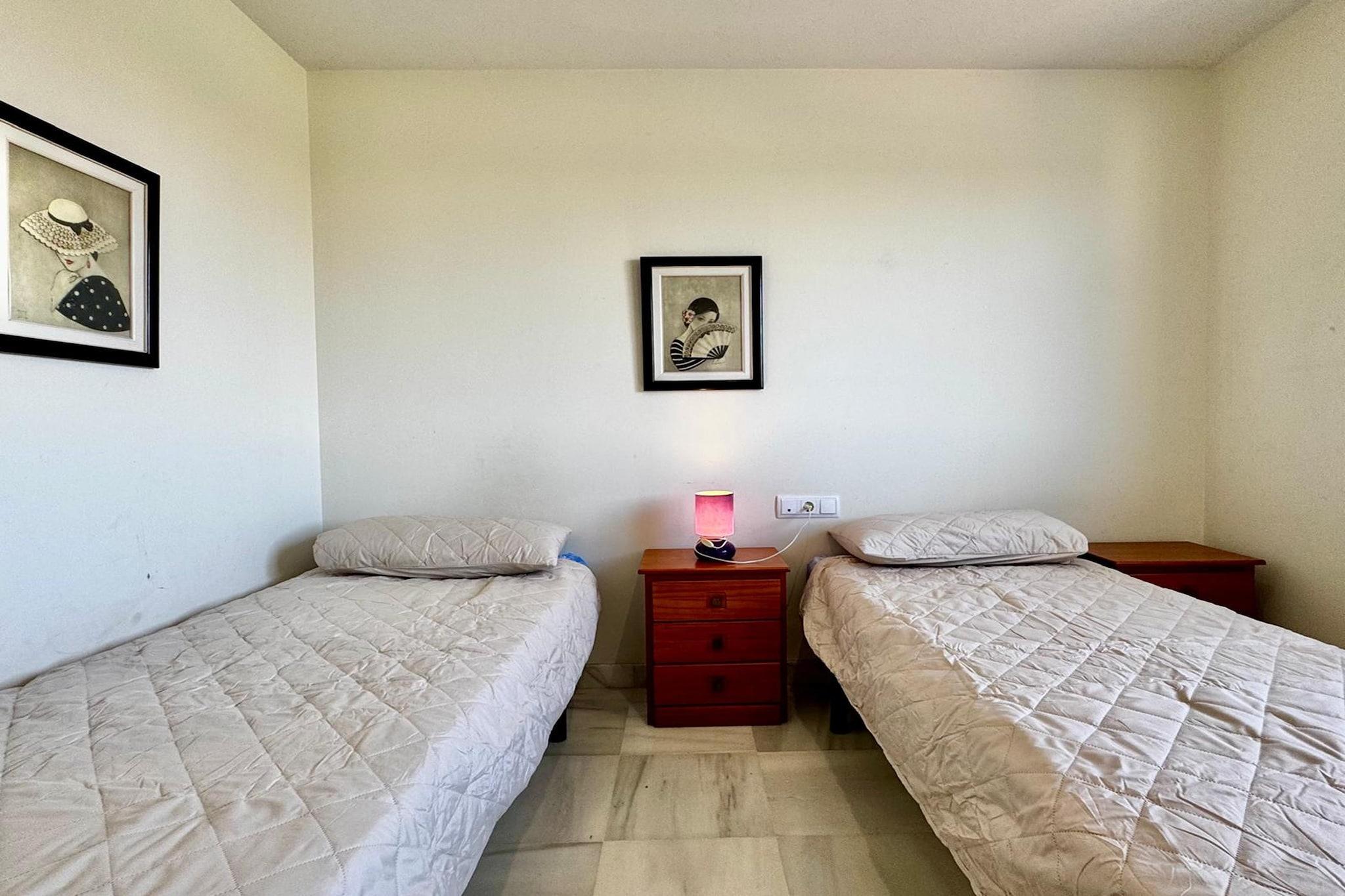 Oplev dit ideelle tilflugtssted i hjertet af Roquetas de Mar! Denne vidunderlige lejlighed på anden sal tilbyder en perfekt blanding af komfort og bekvemmelighed, hvilket gør den til et ideelt valg til din ferie. Udenfor kan du nyde den fælles garage for praktisk parkering, en smukt oplyst have og en fælles pool perfekt til afslappende dukkert under solen. Denne førsteklasses beliggenhed giver nem adgang til en række attraktioner. Gå en tur til de fantastiske strande i Roquetas de Mar, hvor du kan solbade, svømme og deltage i vandsport. Den nærliggende promenade er perfekt til afslappede gåture, spisning og shopping. For familier byder Aquasol Water Park på timevis af sjov, mens naturelskere kan udforske den naturskønne skønhed i det nærliggende naturområde Punta Entinas-Sabinar. Lejligheden har et veludstyret køkken komplet med komfur, emhætte, brødrister, kaffemaskine og opvaskemaskine, så du nemt kan tilberede lækre måltider. Den indbydende stue/spisestue har en dobbelt sovesofa, et tv til underholdning, et spisebord og et hyggeligt opholdsområde, der alt sammen fører til en dejlig balkon eller terrasse, hvor du kan nyde din morgenkaffe eller aftensolnedgange. Træk dig tilbage til de komfortable soveværelser designet til fredelig søvn, suppleret med pæne og ryddelige badeværelser, der giver alle de nødvendige faciliteter. Du vil også sætte pris på aircondition og opvarmning, hvilket sikrer en behagelig atmosfære året rundt. Uanset om du leder efter afslapning eller eventyr, tjener denne lejlighed i Roquetas de Mar som den perfekte base. Book dit ophold i dag og oplev alt, hvad denne pulserende kystby har at tilbyde!