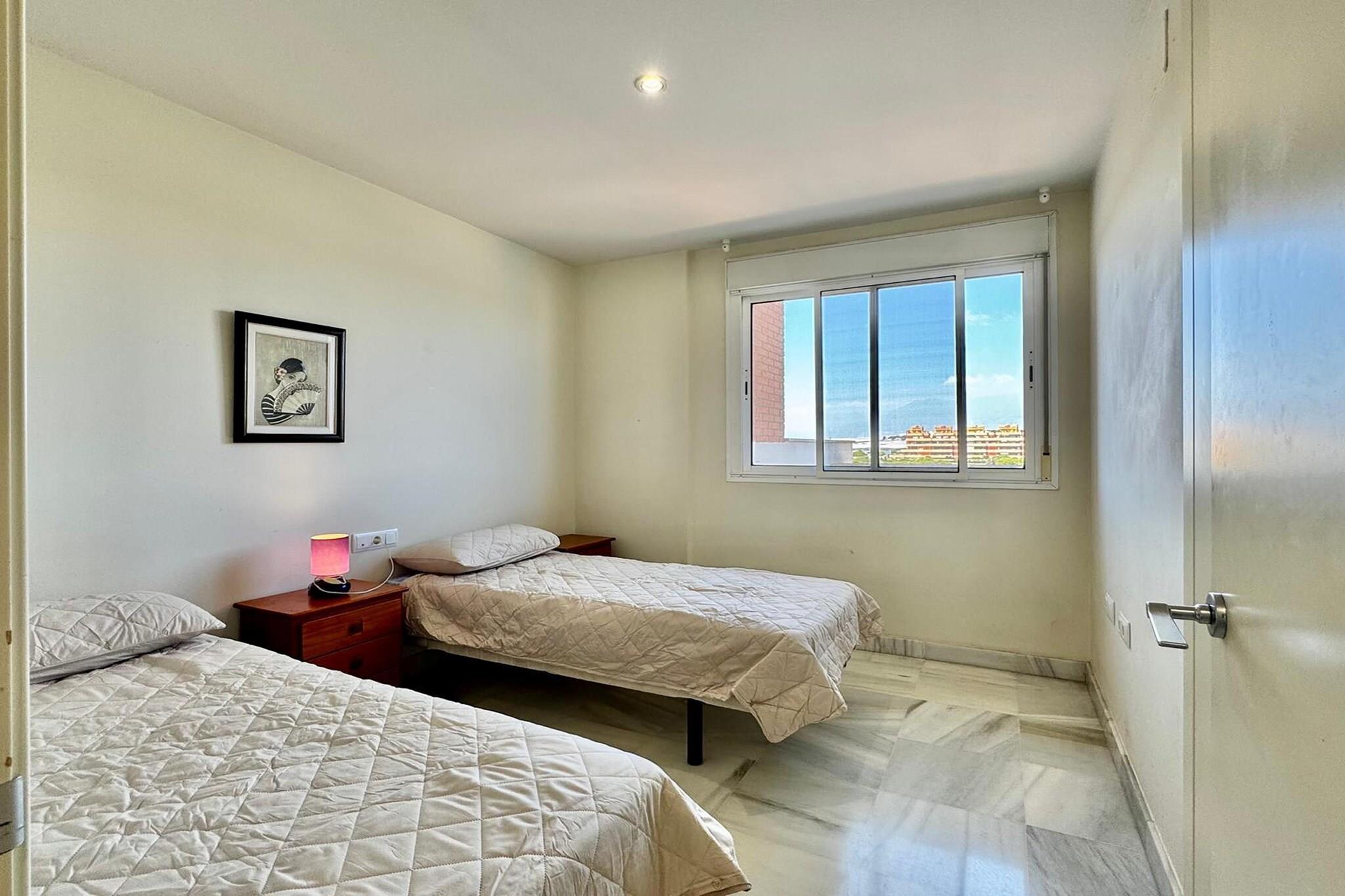 Stueetage: (Indgang (deles med andre gæster, adgang udefra), elevator) På 3. etage: (Indgang , Stue(Fjernsyn(fladskærm), spisebord, sofahjørne), Køkken(kogeplade, brødrister, emhætte, kaffemaskine, ovn, mikrobølgeovn, køle-fryseskab), soveværelse(enkeltseng, enkeltseng), soveværelse(enkeltseng, enkeltseng), Soveværelse med badeværelse(dobbeltseng, badekar med bruser, håndvask, toilet), badeværelse(bruser, håndvask, toilet), vaskerum (vaskemaskine, strygebræt, strygejern), klimaanlæg, terrasse(privat, 14 m2), luft til luft-varmepumpe) fitnessrum(fitnessapparater(deles med andre gæster)), sauna(deles med andre gæster), have(deles med andre gæster), grill(deles med andre gæster), parking lot(public), swimmingpool(deles med andre gæster, udendørs, opened from May upto and including Sep), swimmingpool(deles med andre gæster, indendørs, opened from Jan upto and including Dec), tennisbane(deles med andre gæster), padelbane