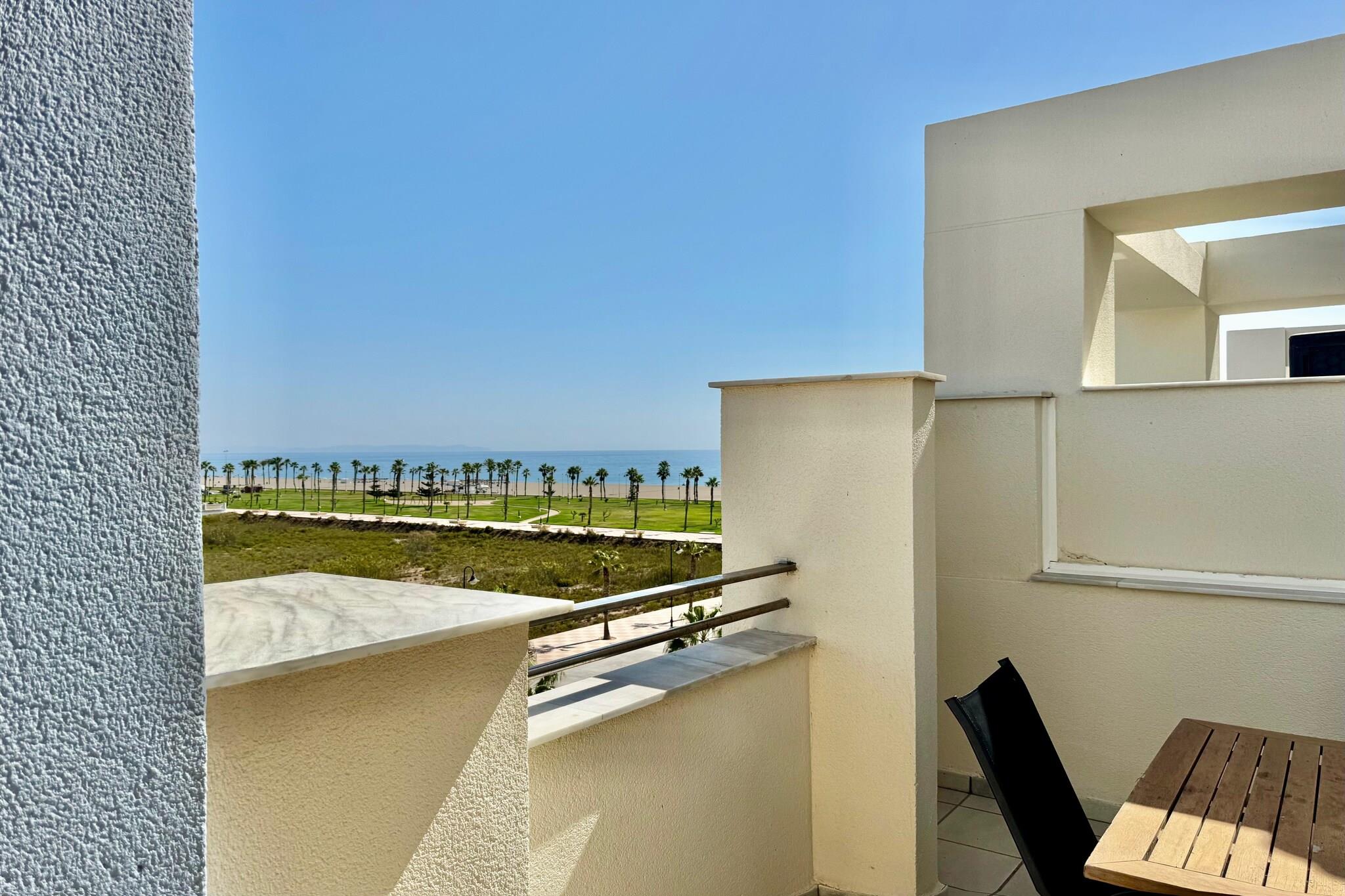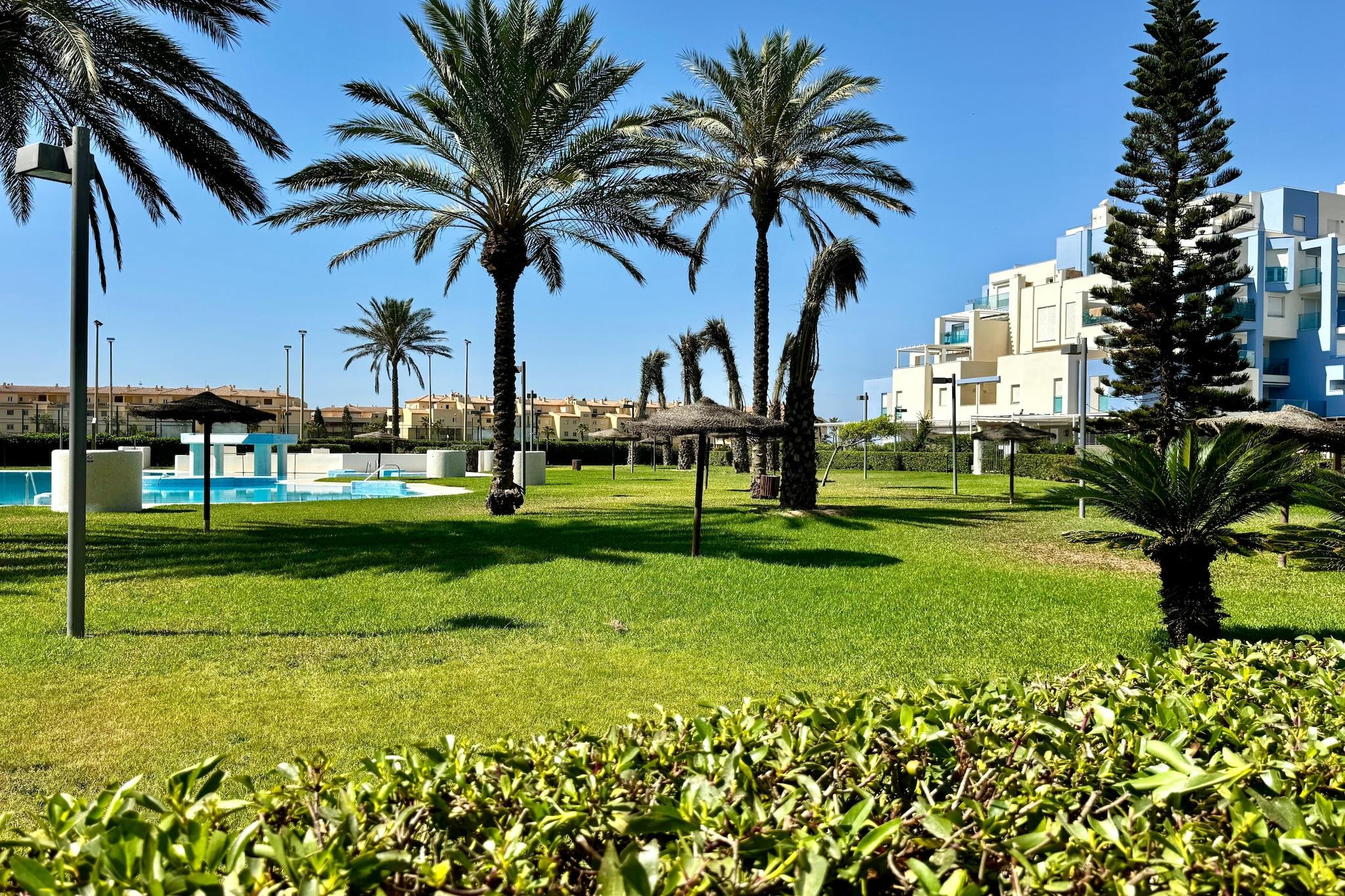 Nyd en afslappende ferie ved kysten i denne stilfulde lejlighed beliggende i hjertet af Poblado Golf Center, kun en kort gåtur fra den smukke Playa Serena. Omgivet af anlagte haver tilbyder dette charmerende tilflugtssted adgang til en fælles swimmingpool, en legeplads og åbne grønne områder, der er perfekte til både familier og par. Lejligheden er smagfuldt indrettet i moderne stil og er fuldt udstyret til både feriegæster og fjernarbejdere. Du finder højhastigheds-Wi-Fi, internationalt tv og et komfortabelt indendørs opholdsområde designet til både afslapning og produktivitet. Træd ud på den private terrasse, der er ideel til solrige morgenmader, videoopkald eller en aftendrink med fredfyldt udsigt over haven og poolen. Med en frisk kystbrise, der driver igennem, vil du måske aldrig forlade stedet. Inden for gåafstand kan du udforske det bløde sand ved Playa Serena og dens rolige promenade, eller spille tee på den nærliggende Playa Serena Golfklub, der ligger kun få minutter væk. Området byder også på en række restauranter, strandbarer og cykelstier, hvilket gør det nemt at udforske kystlinjen i dit eget tempo. For naturelskere er naturparken Punta Entinas-Sabinar kun en kort køretur væk, et paradis for fuglekiggeri, vandreture og uspolerede strande. Uanset om du søger sol, sport eller ro, tilbyder denne velbeliggende lejlighed den ideelle base for en uforglemmelig andalusisk ferie.