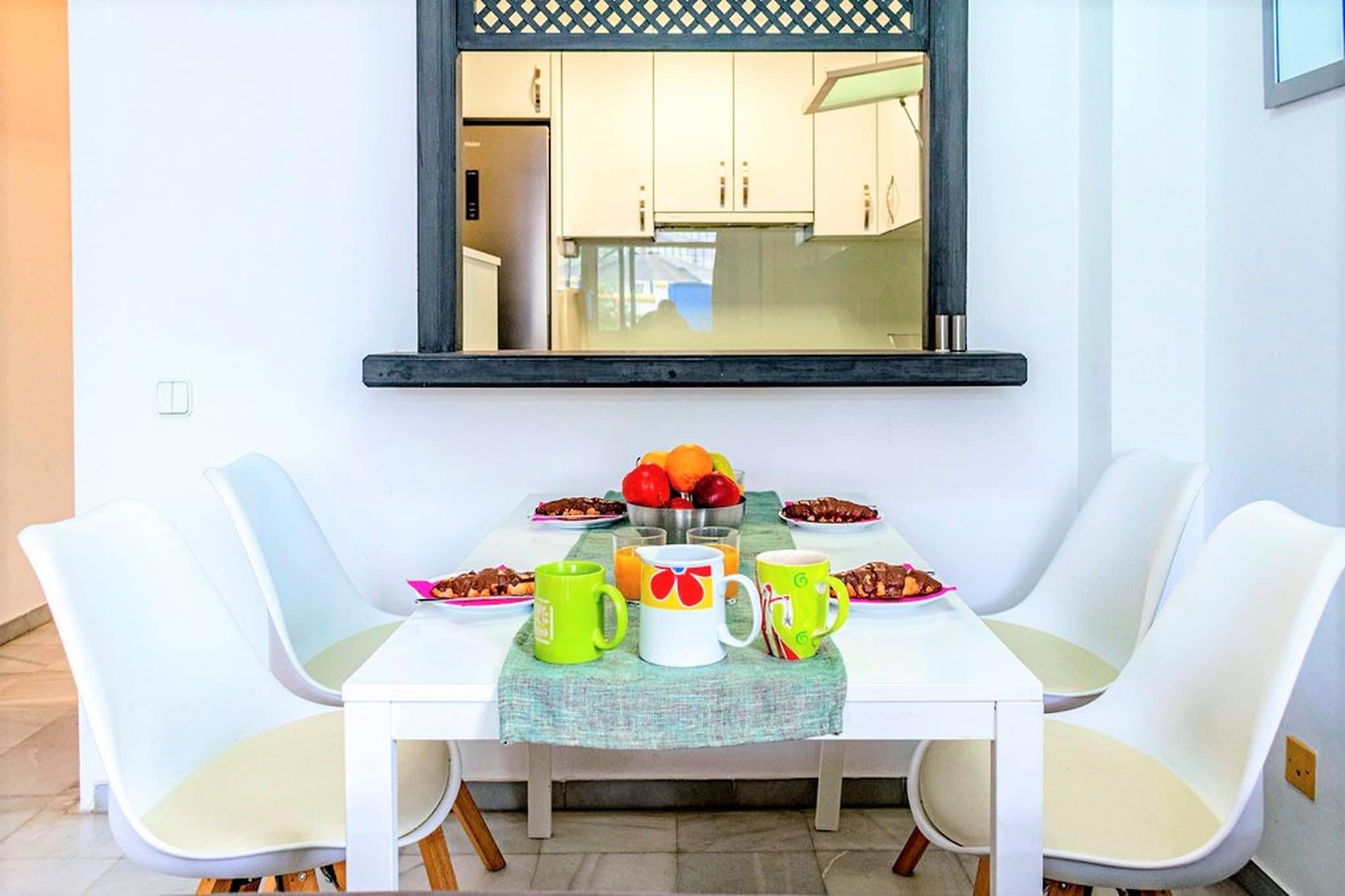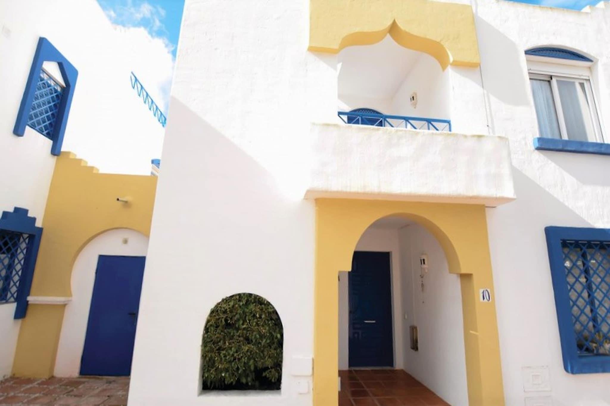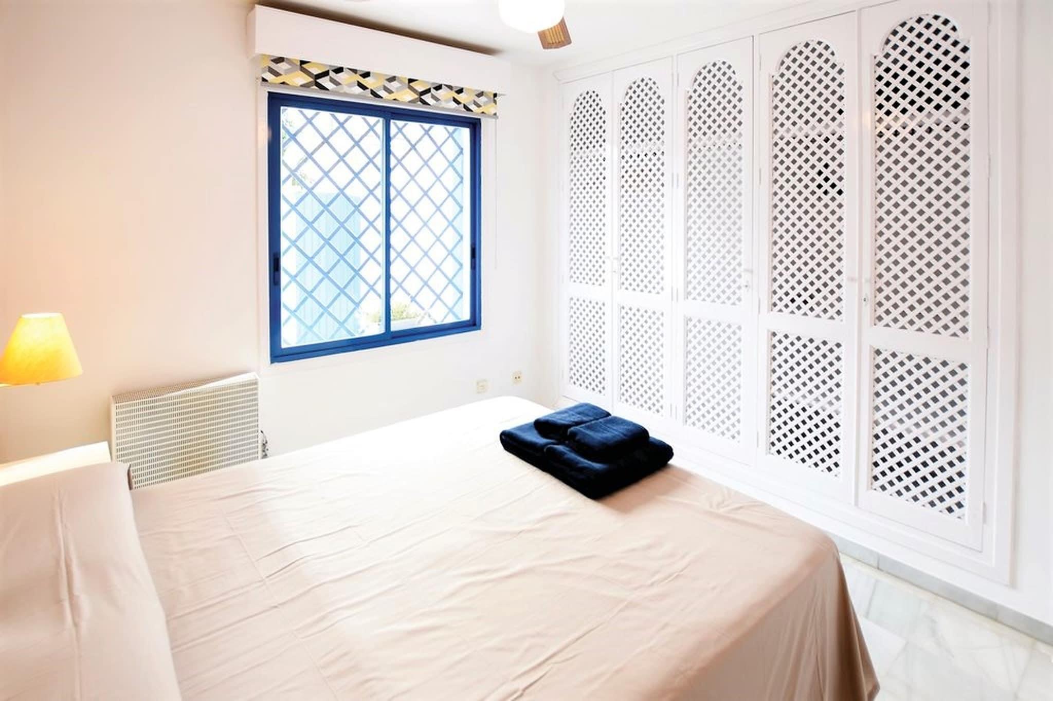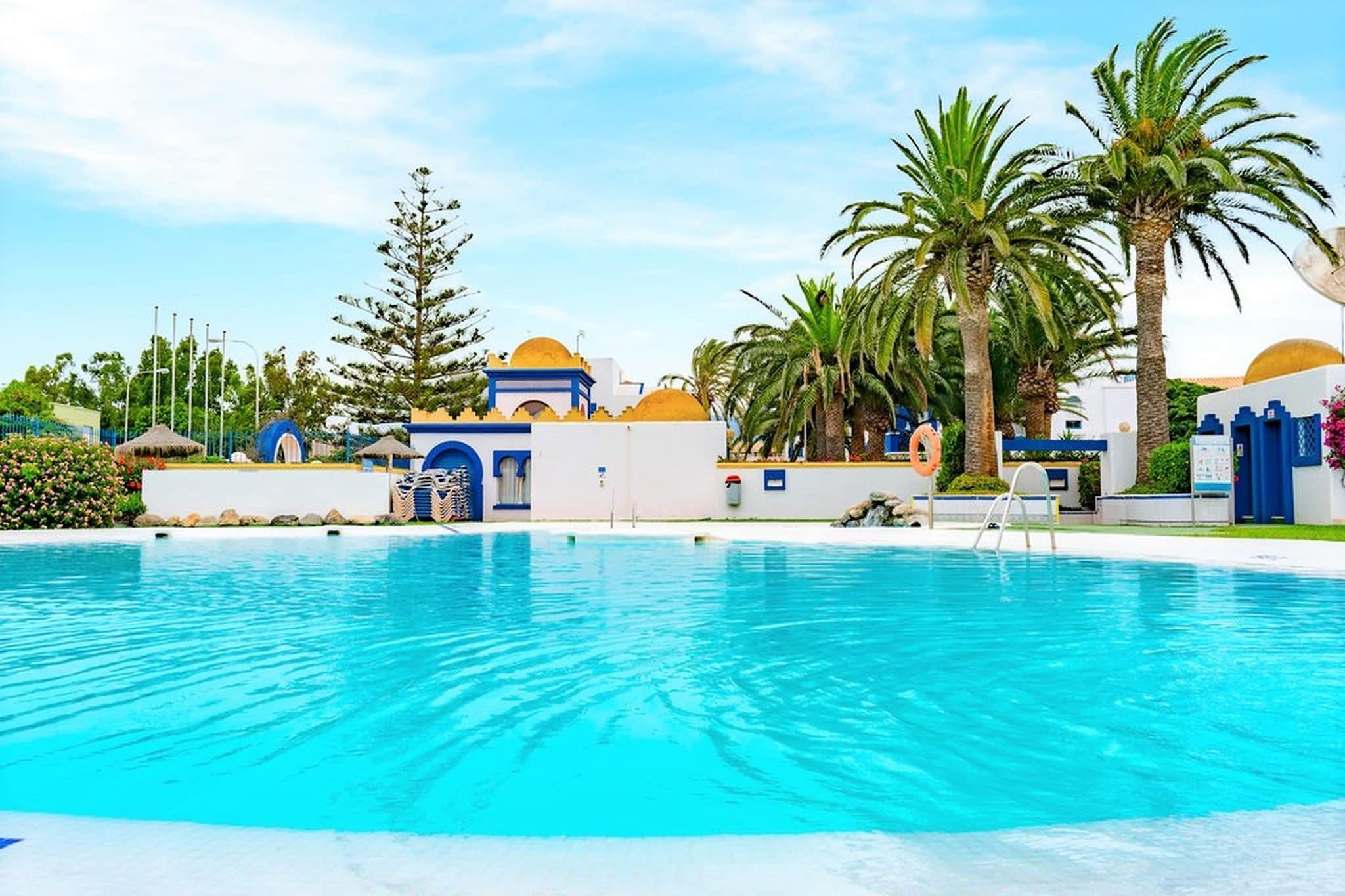 Denne hyggelige feriebolig i Roquetas de Mar, Spanien, kombinerer et let kystliv med moderne komfort og fælles resortfaciliteter - ideelt for par, små familier eller venner, der søger sol, hav og afslapning på Costa de Almería. Beliggende i et fredeligt kompleks, har huset et komfortabelt dobbeltværelse. Naturligt lys fylder det åbne opholdsrum, som inkluderer et tv, spiseplads og en sovesofa, der kan omdannes til en afslappet indendørs opholdsstue. Det fuldt udstyrede køkken giver dig mulighed for nemt at tilberede hverdagens måltider - perfekt til selvforplejning og afslappende morgenmad før stranddage, mens badeværelset har et brusebad og alle nødvendige inventar. Aircondition sikrer behagelige temperaturer i alle årstider, og en privat terrasse udvider dit opholdsrum udendørs til kaffe om morgenen eller aftendrinks under himlen. Fælles faciliteter på resortet inkluderer - udendørs swimmingpool til afkøling på solrige eftermiddage, have og solbadningsområder samt parkering for gæster med bil. Beliggende i den pulserende kystby Roquetas de Mar, er du en kort gåtur fra sandstrande og strandpromenader, hvor du kan svømme, solbade eller dyrke vandsport. Lokale attraktioner som Castillo de Santa Ana, fiskerestauranter og travle strandbarer tilføjer et autentisk andalusisk præg til dit ophold. Det omkringliggende område byder også på behagelige cykelruter, naturskønne vandrestier og golfbaner som Playa Serena Golf Club for dem, der foretrækker en aktiv ferie. Uanset om du planlægger at udforske, slappe af ved poolen eller tilbringe dage på stranden, tilbyder dette feriehus en indbydende base for en uforglemmelig spansk flugt ved Middelhavskysten.