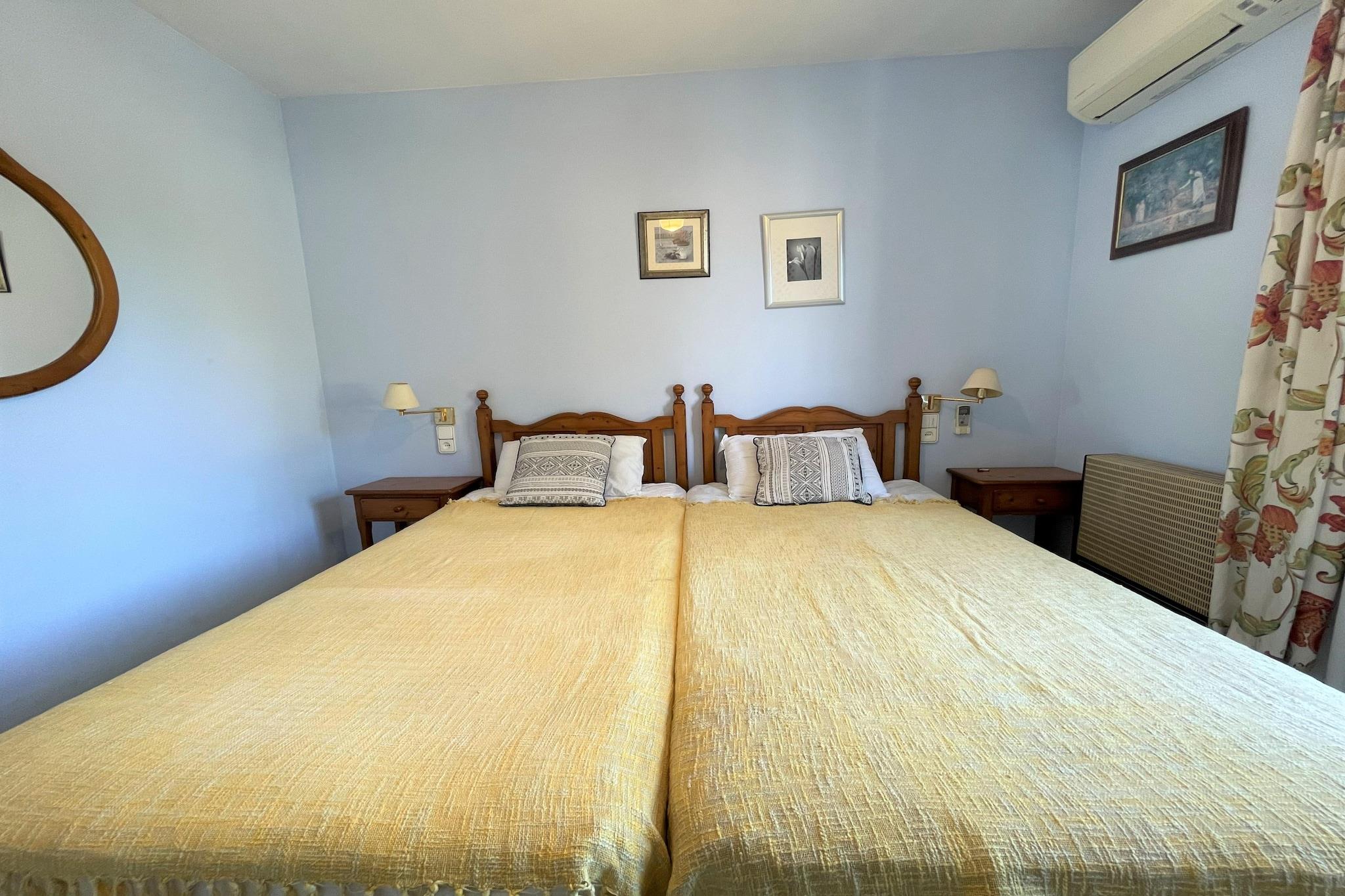 Stueetage: (Indgang (deles med andre gæster, adgang udefra)) På 1. etage: (Indgang , Stue(dobbeltsovesofa(150 x 200 cm), Fjernsyn(parabol), spisebord, sofahjørne, DVD-afspiller, balkon eller terrasse), Køkken(kogeplade(Komfur med fire kogeplader, gas), elkedel, brødrister, emhætte, kaffemaskine, ovn, mikrobølgeovn, opvaskemaskine , køle-fryseskab, vaskemaskine), soveværelse(enkeltseng(90 x 190 cm), enkeltseng(90 x 190 cm)), badeværelse(badekar med bruser, håndvask, toilet), varme, klimaanlæg) Loft: (tagterrasse) havedøre, have(deles med andre gæster), havemøbler, parkering, swimmingpool(deles med andre gæster, udendørs, opened from Jun upto and including Sep)