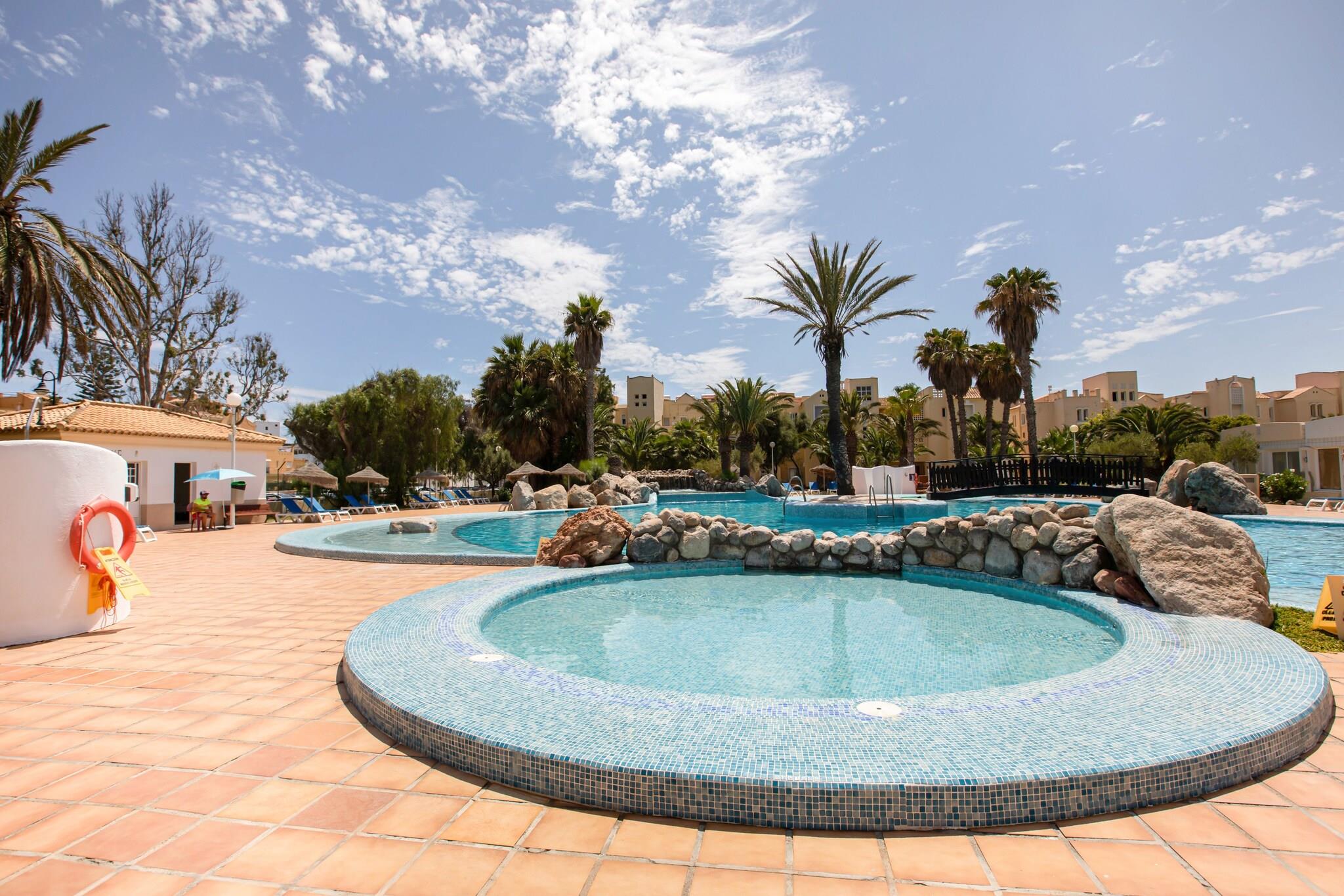 Stueetage: (åbent køkken(kogeplade, brødrister, kaffemaskine, mikrobølgeovn, vaskemaskine, Saftpresser), stue / spisestue(dobbeltsovesofa, spisebord, klimaanlæg), soveværelse(enkeltseng, enkeltseng), badeværelse(badekar eller bruser, håndvask, toilet)) terrasse(privat), have(deles med andre gæster), parkering, swimmingpool(deles med andre gæster), tennisbane(deles med andre gæster)