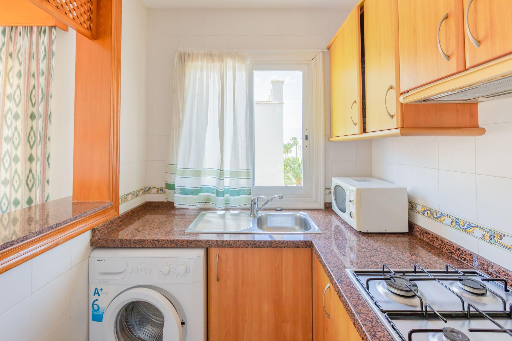 Coastal Retreat venter Træd ind i en lys lejlighed i stueetagen i Roquetas del Mar, kun 400 meter fra det glitrende hav. Det åbne køkken er udstyret med kogeplader, mikroovn, brødrister, kaffemaskine og juicer - ideel til at piske frisk morgenmad op før en dag med udforskning. Opholds- og spiseområdet har en dobbelt sovesofa og aircondition, hvilket skaber et behageligt sted at slappe af eller være vært for små sammenkomster. Aktiv livsstil i nærheden Boligen tilbyder fælles faciliteter, herunder en swimmingpool og tennisbane, perfekt til aktive gæster eller familier, der søger rekreative muligheder. Kæledyr er velkomne her, og nærliggende vandrestier langs kysten giver naturskønne ruter for både mennesker og lodne venner. Du kan også nyde lange vandreture ved stranden eller opdage lokale parker, hvor hunde kan løbe frit, hvilket kombinerer bekvemmelighed med fritid for kæledyrsejere. Spisning og lokal smag Kun få minutter væk byder Roquetas del Mar på en række spisesteder, der serverer frisk fisk og skaldyr, traditionelle spanske tapas og internationale retter. Gå en tur langs promenaden for at finde charmerende caféer eller oplev lokale markeder for friske råvarer. Uanset om du foretrækker en afslappet morgenmad med havudsigt eller et livligt aftensmåltid, byder området på muligheder for at glæde enhver smag. Almería Lufthavn ligger kun 30 km væk, hvilket gør denne lejlighed til et nemt landingssted for dem, der ønsker at kombinere komfort, bekvemmelighed og kystcharme.