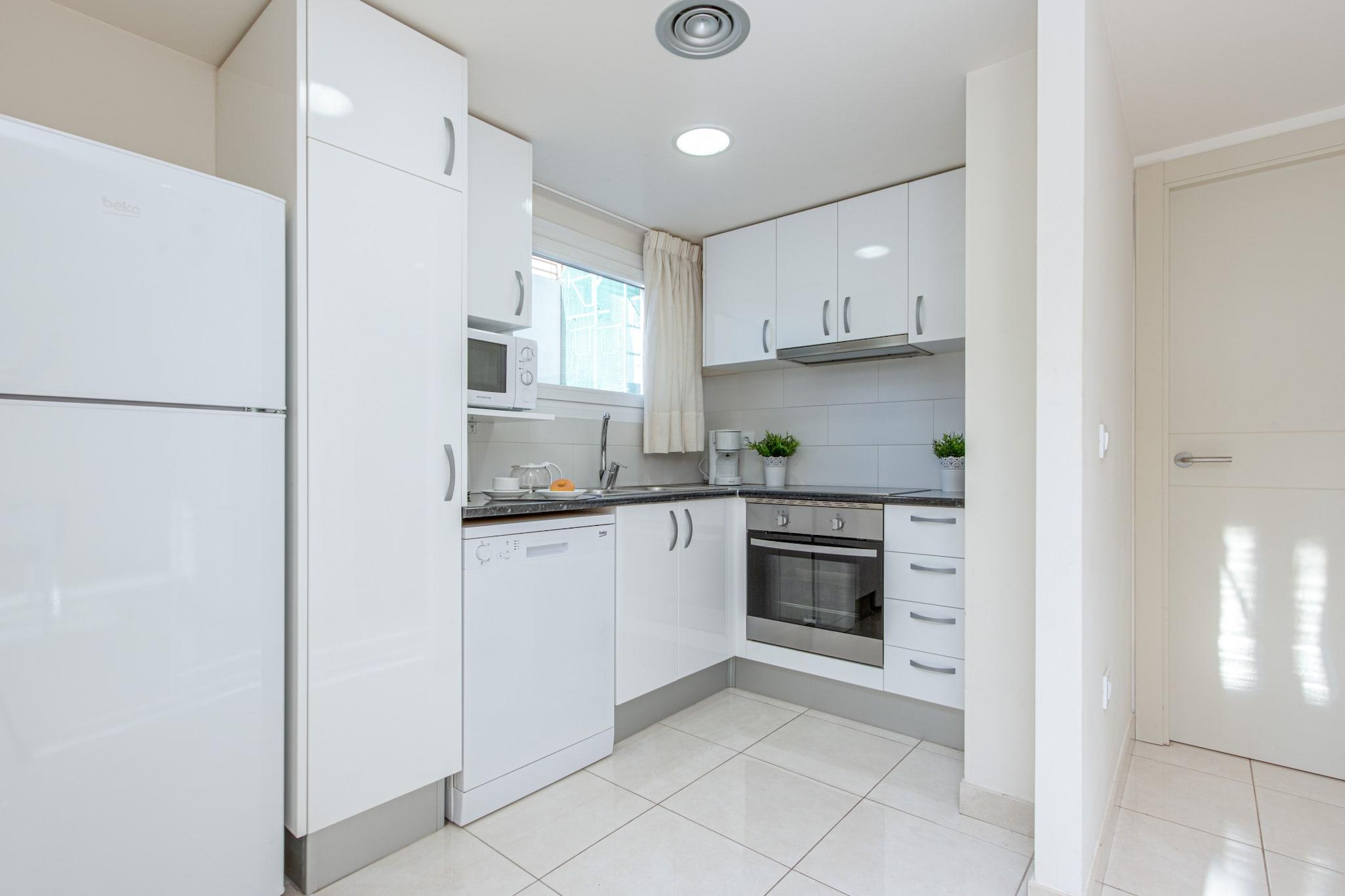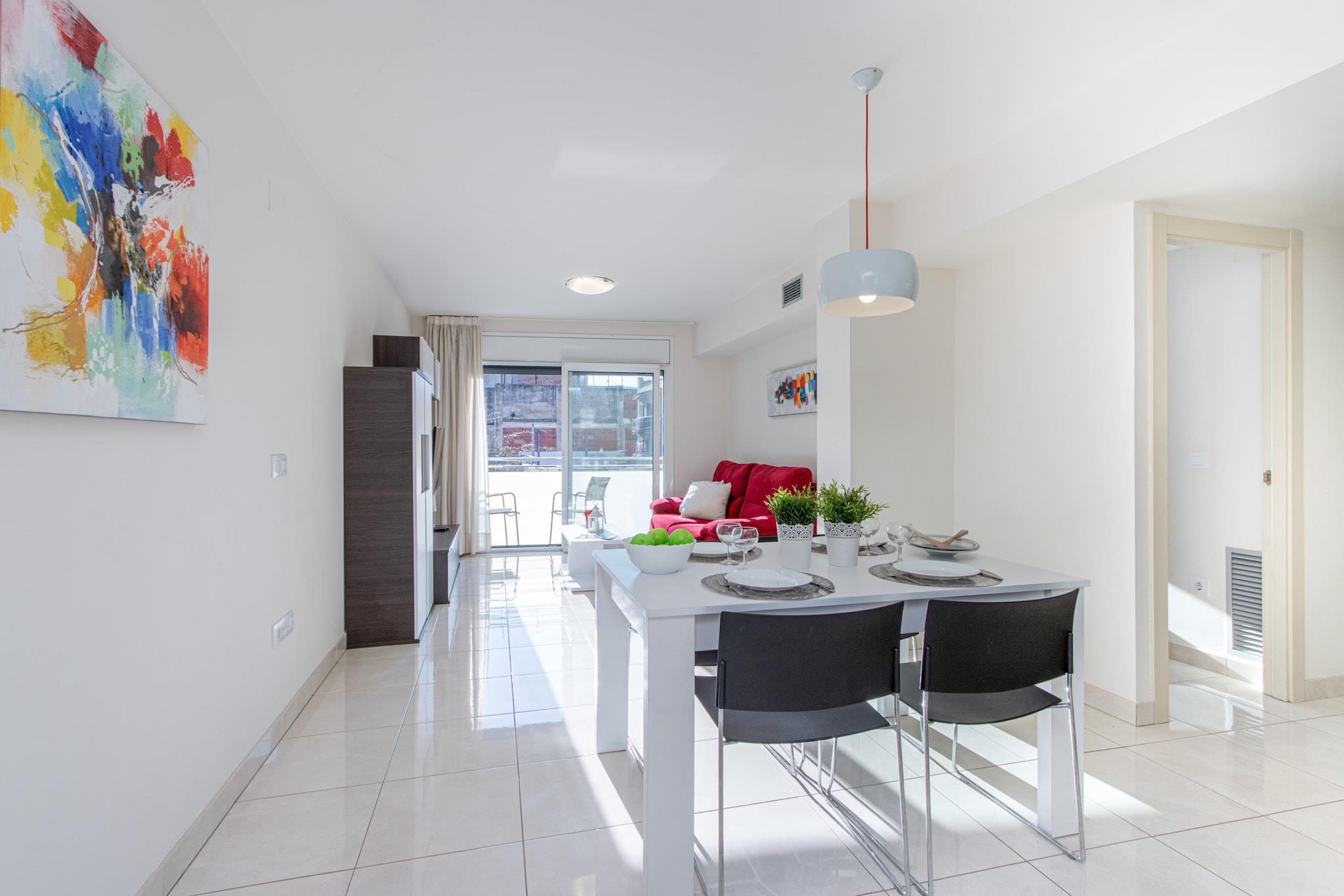 Denne moderne familielejlighed i Roses tilbyder et komfortabelt ophold for op til 5 gæster med to veludstyrede soveværelser, et med en dobbeltseng og et andet med to enkeltsenge, plus en ekstra soveplads i fællesområdet. Lejligheden er på 70 m² og ligger på anden sal med elevatoradgang. Lejligheden har en privat balkon, ideel til afslapning efter en dag på stranden. Aircondition overalt, centralvarme og højhastigheds-Wi-Fi sikrer komfort året rundt. Overdækket parkering i en nærliggende bygning er også inkluderet. Denne lejlighed ligger kun 150 meter fra sandstranden "de la Punta" og i gåafstand fra supermarkeder, caféer og restauranter. Den tilbyder en førsteklasses beliggenhed for familier og rejsende, der ønsker at nyde Costa Brava. Lokale attraktioner som vandlandet Aquabrava ligger en kort køretur væk, mens golfelskere vil sætte pris på den nærliggende Peralada Golfbane. Figueres AVE/TGV-togstation ligger kun 30 km væk, og Girona Lufthavn ligger inden for 70 km, hvilket gør rejseforbindelserne nemme. Gæsterne kan nyde et fuldt udstyret åbent køkken med keramisk kogeplade, ovn, opvaskemaskine og kaffemaskine samt et moderne badeværelse med bruseniche. Yderligere faciliteter omfatter vaskemaskine, satellit-tv med flersprogede kanaler og strygejern. Turistskat og valgfrie tjenester er ikke inkluderet i prisen. Kontakt venligst agenturet for at bekræfte sæsonbestemte indtjekningstider.