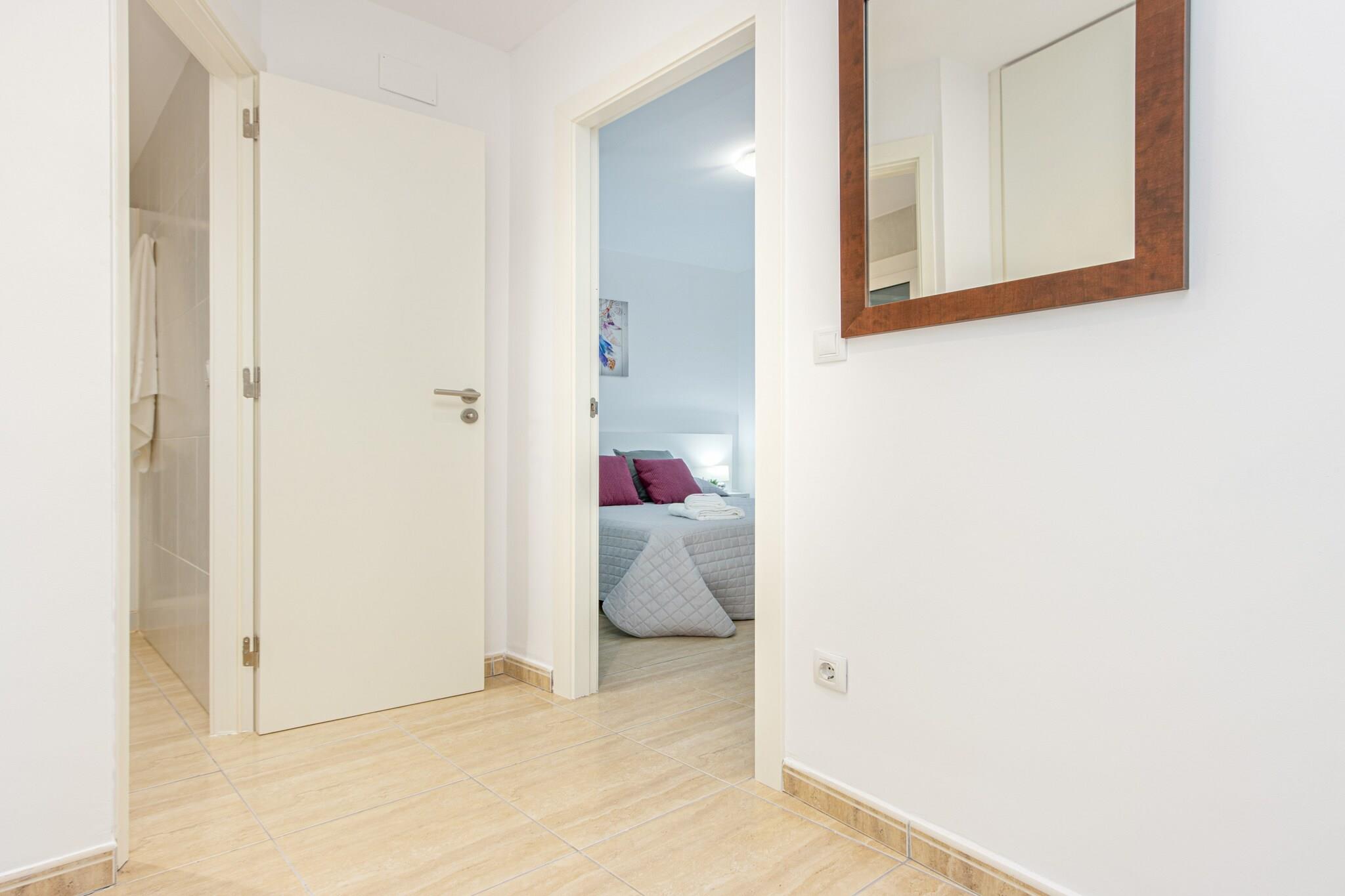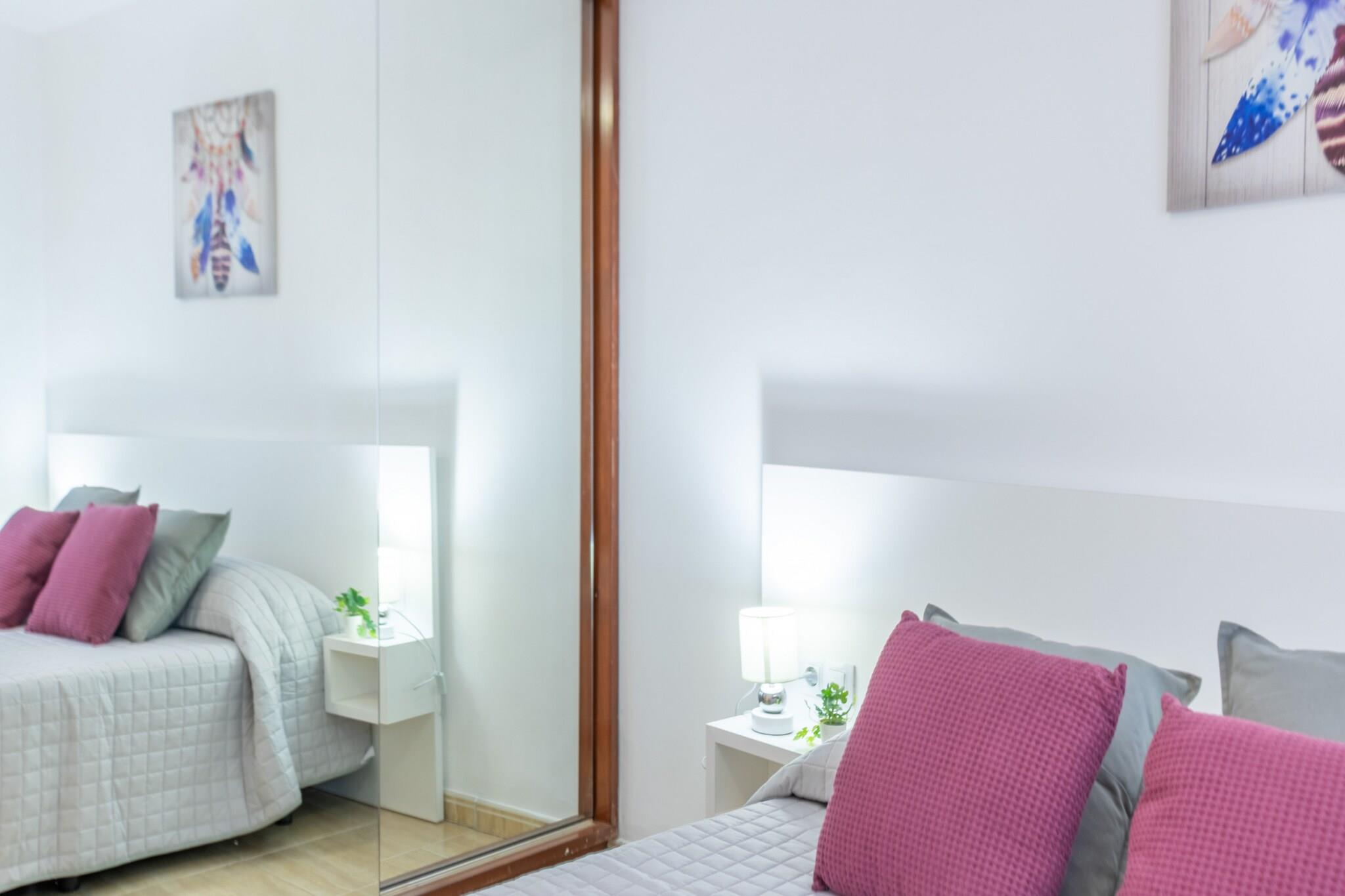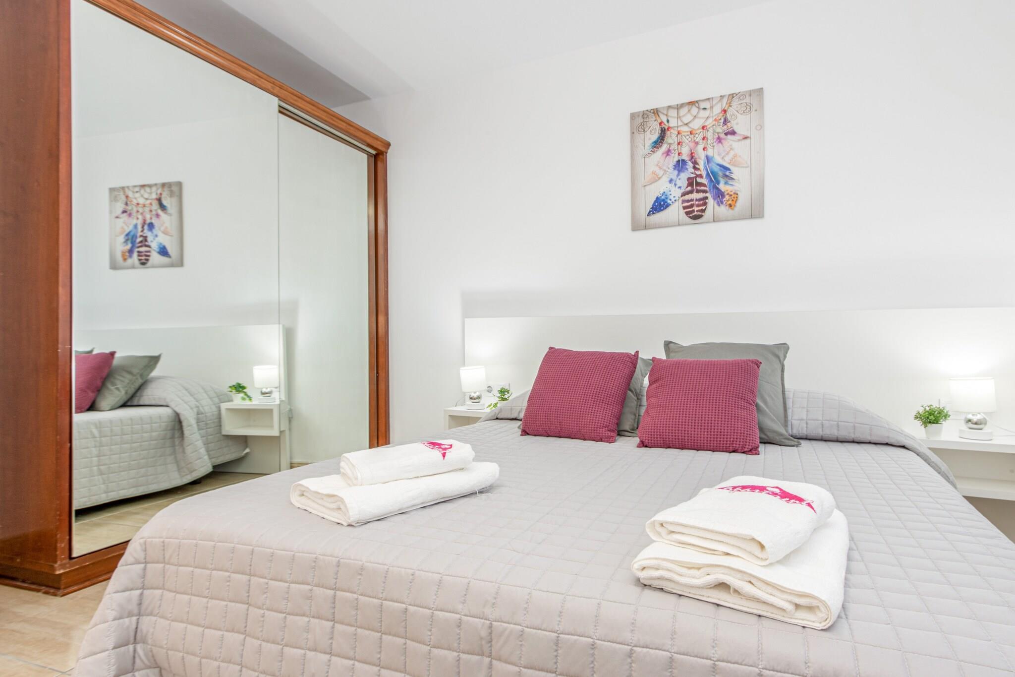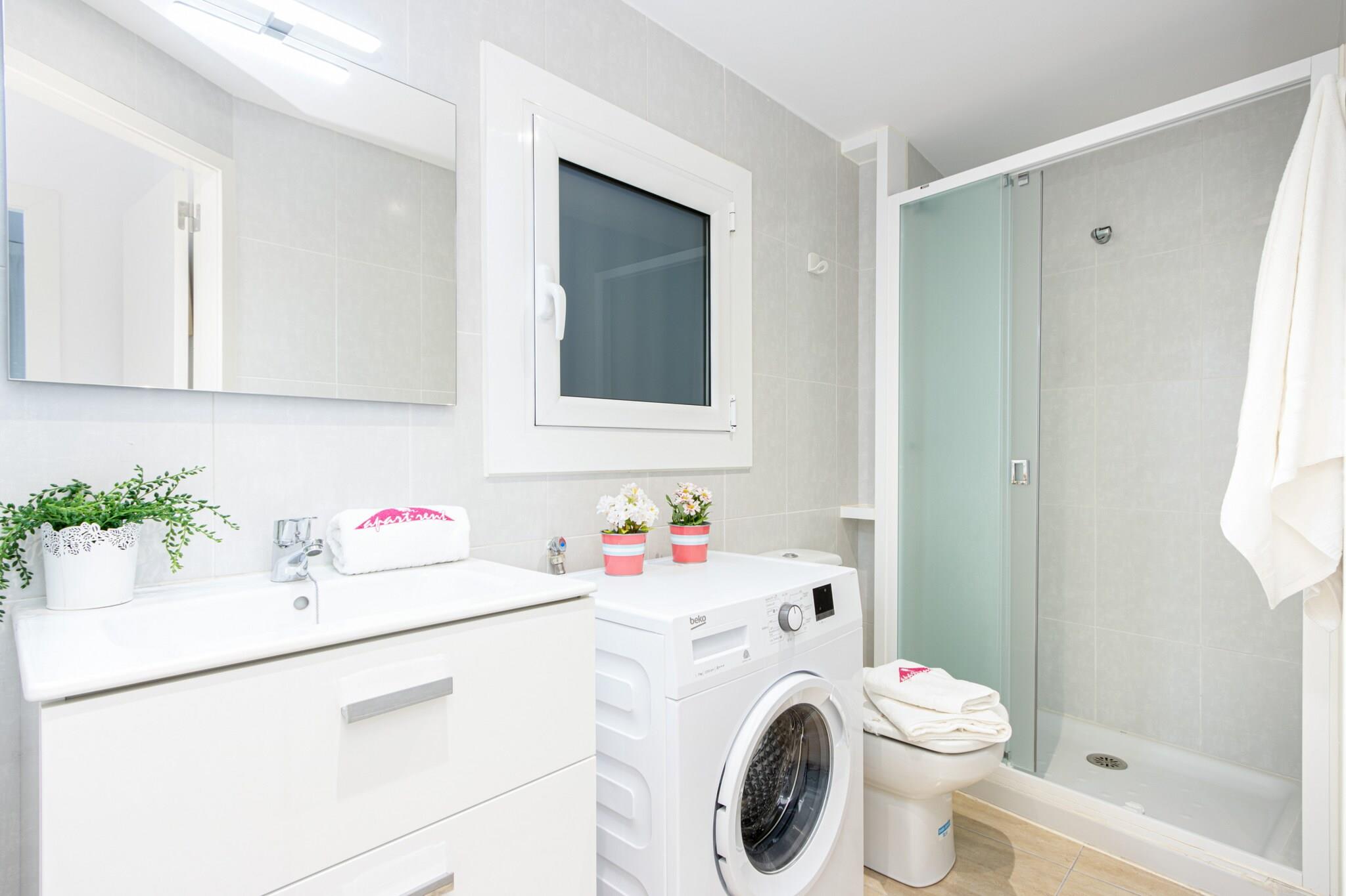 Denne moderne lejlighed tilbyder et komfortabelt tilflugtssted for op til fire gæster. Den har et soveværelse med en dobbeltseng og en dobbelt sovesofa i opholdsstuen, ideel til både par og små familier. Opholdsstuen har et tv og åbner ud til en privat balkon, der tilbyder et behageligt sted at slappe af. Enheden er udstyret med Wi-Fi og aircondition i stuen for ekstra komfort. Gæsterne har adgang til en elevator og en overdækket parkeringsplads en kort gåtur væk. Denne lejlighed er ikke kæledyrsvenlig og accepterer ikke ungdomsgrupper. Centralt beliggende i et familievenligt område af Roses, ligger lejligheden kun 50 meter fra Nova-sandstranden og 500 meter fra det nærmeste supermarked. En række restauranter, caféer og butikker er inden for rækkevidde, hvilket gør den bekvem til både korte og længere ophold. Lokale attraktioner omfatter vandlandet Aquabrava, kun 3 km væk, og kulturelle højdepunkter som Peralada golfbane og AVE/TGV Figueres togstation inden for 30 km. Girona Lufthavn ligger 70 km fra ejendommen. Lejligheden har et veludstyret åbent køkken med keramisk kogeplade, køleskab, mikrobølgeovn, opvaskemaskine og vaskemaskine. Køkkenredskaber, tallerkener, bestik, kaffemaskine og brødrister er også til rådighed for selvforplejning. Enheden har et badeværelse med bruser, og der er varme afhængigt af sæsonen. Ejendommen er placeret på første sal og sikrer nem adgang og funktionel bolig for et afslappet ophold ved kysten.