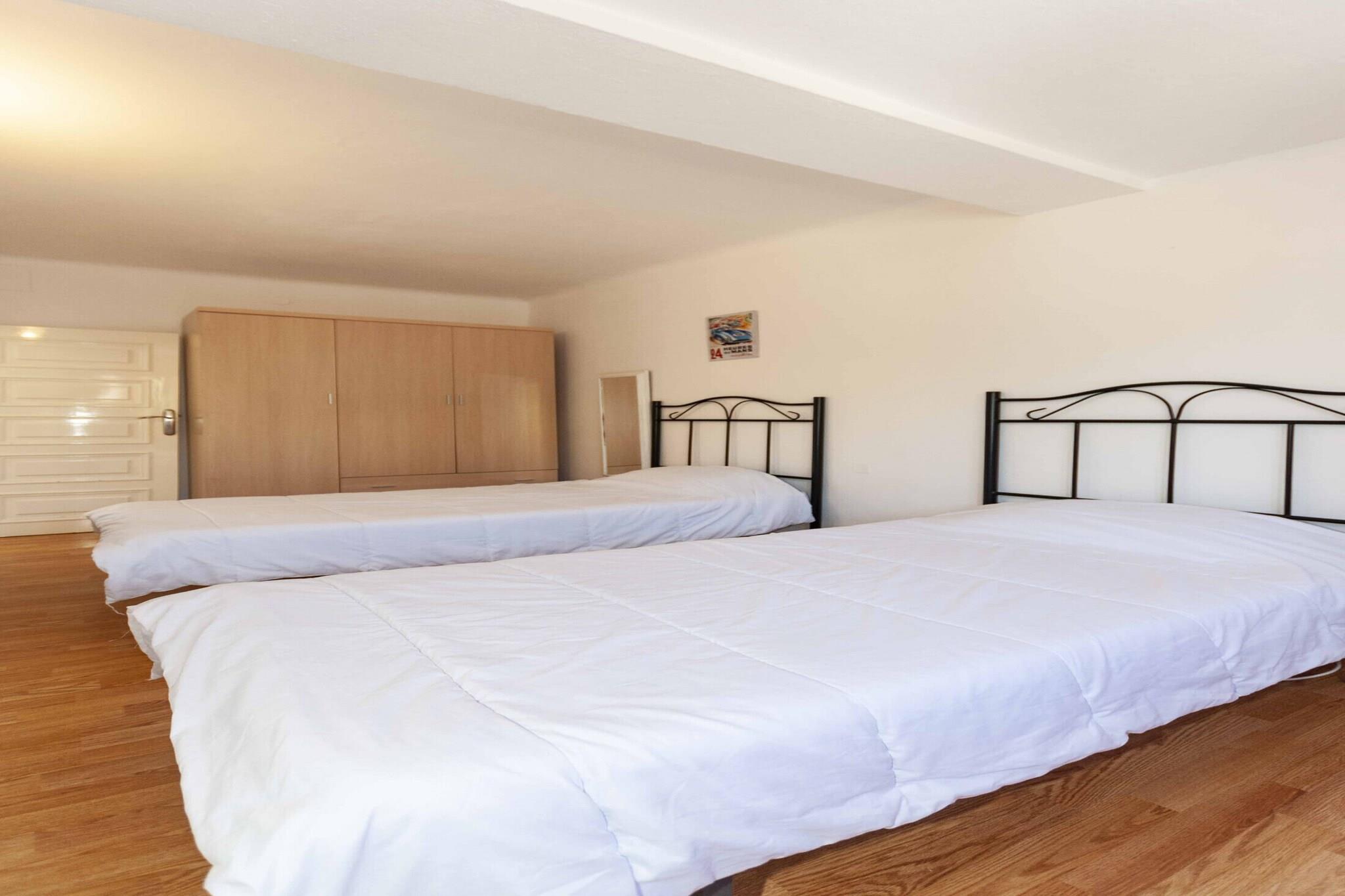 Velkommen til denne smukt møblerede 55 m² store lejlighed i Roses, der tilbyder 2 soveværelser og plads til op til 6 gæster. Lys og indbydende, denne bolig er ideel til et feriested ved havet. Beliggende kun 50 meter fra byen Roses og sandstranden, vil du have nem adgang til både lokale attraktioner og kysten. Et supermarked, Varios, er kun 100 meter væk, og Sarfa busstation er 1 km fra dit dørtrin. Til familiesjov er Aquabrava vandland 3 km væk, og den fantastiske Parc Natural Aiguamoll ligger kun km fra lejligheden Aiguamoll. Golfentusiaster kan nyde den nærliggende Perelada golfbane, som ligger 15 km væk. AVE-TGV-togstationen i Figueres ligger 20 km væk, og både Girona Lufthavn (65 km) og Barcelona Lufthavn (165 km) er inden for rækkevidde. For vintersportelskere ligger Vallter 2000-skiløjperne 100 km væk. Denne komfortable lejlighed har en hyggelig 3 m² stor terrasse til at nyde den friske luft samt faciliteter som vaskemaskine, strygejern og varme med varmepumpe. Stuen er udstyret med aircondition og har et tv med satellitkanaler på spansk, engelsk, tysk og fransk, hvilket sikrer underholdning under dit ophold. Tekøkkenet er veludstyret med en keramisk kogeplade, køleskab, mikroovn, ovn, fryser, porcelæn, bestik, køkkenredskaber, kaffemaskine, brødrister, kedel og juicer, der dækker alle dine madlavningsbehov. Oplev charmen ved denne lejlighed i Roses, hvor komfort, bekvemmelighed og smukke omgivelser mødes for et uforglemmeligt ophold!