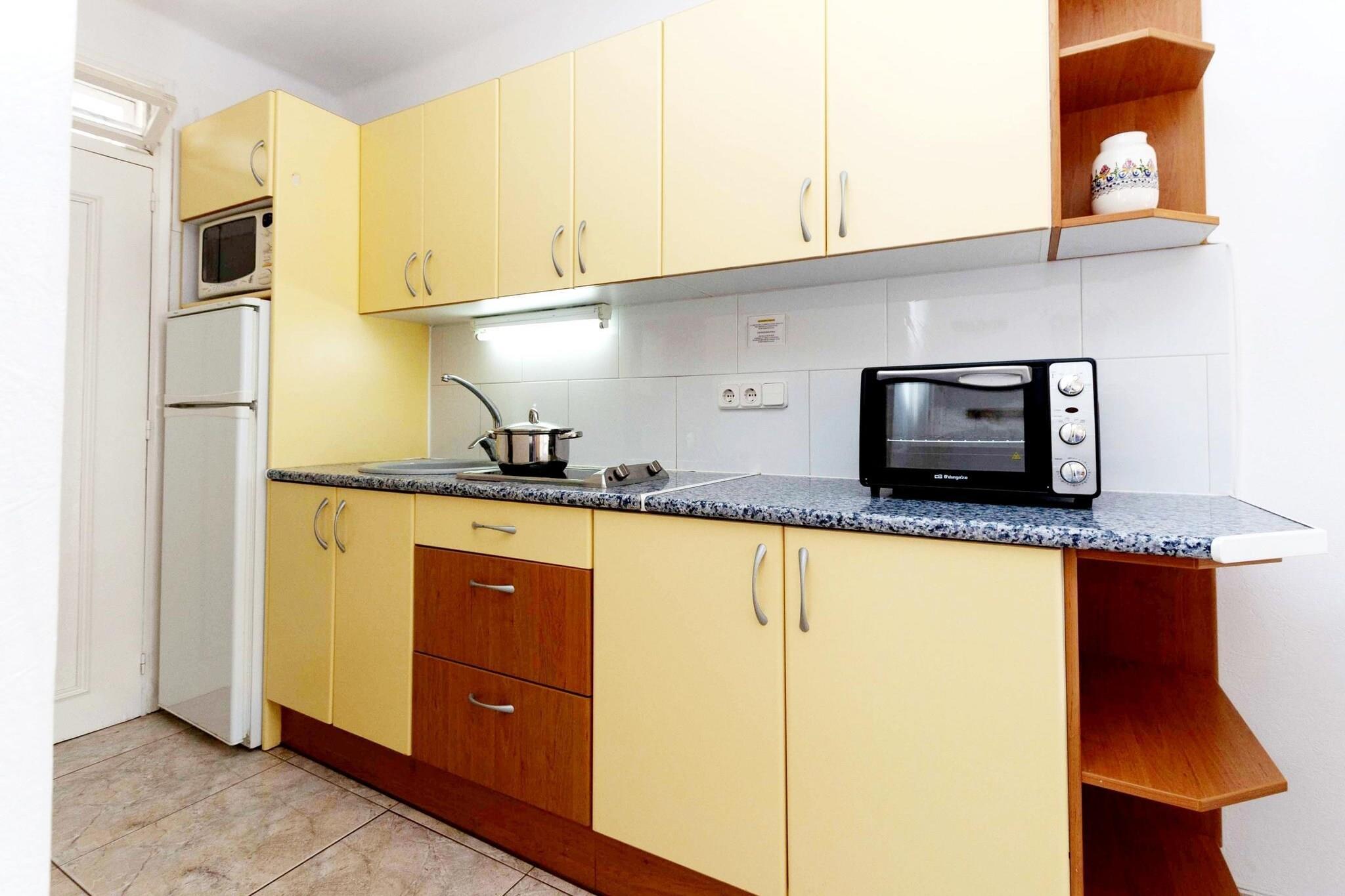 Velkommen til dette hyggelige 20 m² store studie i Roses, designet til komfortabelt at rumme op til 4 gæster. Dette fuldt udstyrede rum er ideelt beliggende kun 150 meter fra sandstranden Santa Margarita og 300 meter fra et lokalt supermarked for din bekvemmelighed. Den pulserende by Roses ligger kun 2 km væk, sammen med familievenlig sjov i vandlandet Aqua Brava, som ligger 3 km fra studiet. Golfentusiaster vil sætte pris på nærheden til Golf Peralada, blot 15 km væk. AVE-togstationen er også let tilgængelig på 18 km, mens både Girona Lufthavn (60 km) og Barcelona Lufthavn (160 km) er inden for en rimelig afstand, hvilket gør denne placering bekvem for rejsende. Beliggende i et godt forbundet område ved havet, er denne studio perfekt til en ferie ved havet. Indkvarteringen har en 5 m² stor terrasse, ideel til at nyde frisk luft. Yderligere faciliteter omfatter en elevator, en vaskemaskine og internetadgang (Wi-Fi). Aircondition sikrer din komfort i de varmere måneder, mens underholdningsmulighederne omfatter et tv med satellitkanaler på spansk, tysk og fransk. Tekøkkenet er veludstyret med en keramisk kogeplade, køleskab, ovn, fryser, porcelæn, bestik, køkkenredskaber, kaffemaskine og brødrister, som giver alt hvad du behøver for et dejligt ophold. Oplev charmen ved dette dejlige studie i Roses til din næste ferie!