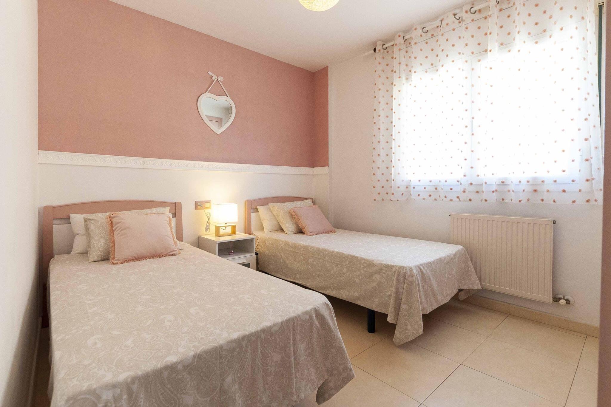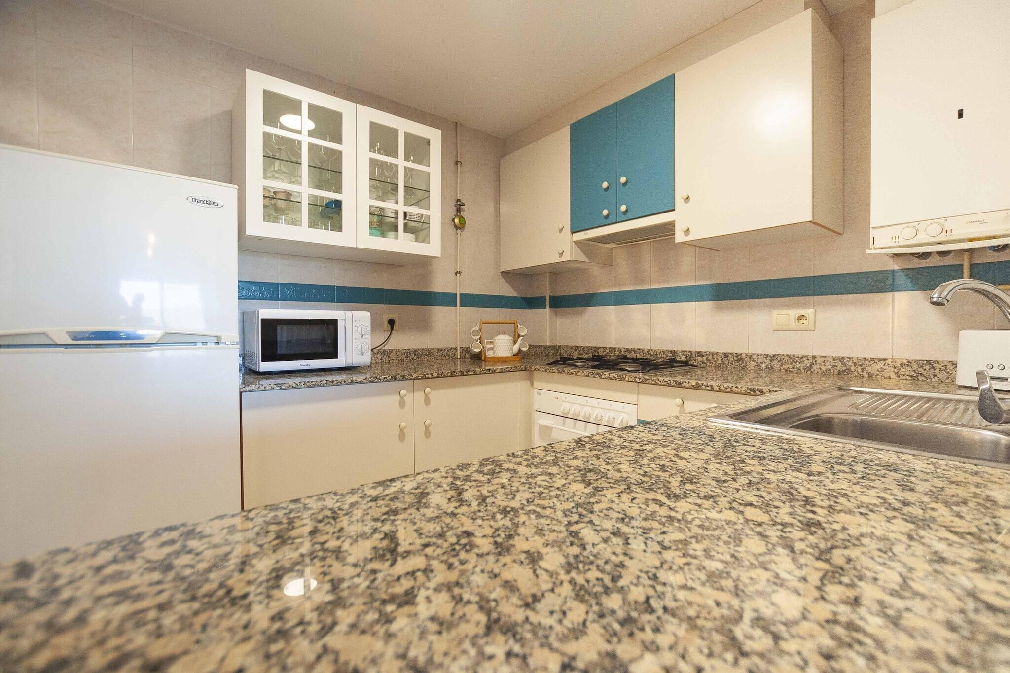 Velkommen til denne charmerende 69 m² store lejlighed i Roses, perfekt til familier eller grupper, med plads til op til 6 gæster (maks. 4 voksne). Med en fantastisk udsigt over bjergene og rigeligt naturligt lys tilbyder dette smukke rum et afslappende miljø for din ferie. Beliggende kun 50 meter fra Mercadona-supermarkedet og 200 meter fra busstationen, er det bekvemt placeret til alle dine behov. Sandstranden Playa de Arena Santa Margarita ligger kun 800 meter væk, hvilket gør det nemt at nyde solen og havet. Indvendigt har lejligheden en elevator for nem adgang og en rummelig terrasse på 12 m², hvor du kan nyde solen eller nyde udendørs spisning. Opholdsområdet inkluderer aircondition, hvilket sikrer komfort på varmere dage, mens den individuelle gaskedel giver pålideligt varmt vand. Familier vil sætte pris på den fælles pool og udendørs parkering i bygningen. Til underholdning er der et tv med satellitkanaler på flere sprog, inklusive spansk, engelsk, tysk og fransk, samt gratis Wi-Fi for at holde dig forbundet under dit ophold. Det åbne gaskøkken er veludstyret til dine kulinariske behov, med køleskab, mikroovn, ovn, opvaskemaskine og væsentlige køkkenredskaber, herunder porcelæn, bestik, kaffemaskine, brødrister, kedel og juicer. Beliggende i en familievenlig urbanisering tilbyder denne lejlighed en perfekt blanding af bekvemmelighed og komfort til dit ophold i Roses. Oplev skønheden i området og nyd en mindeværdig ferie i denne dejlige bolig!