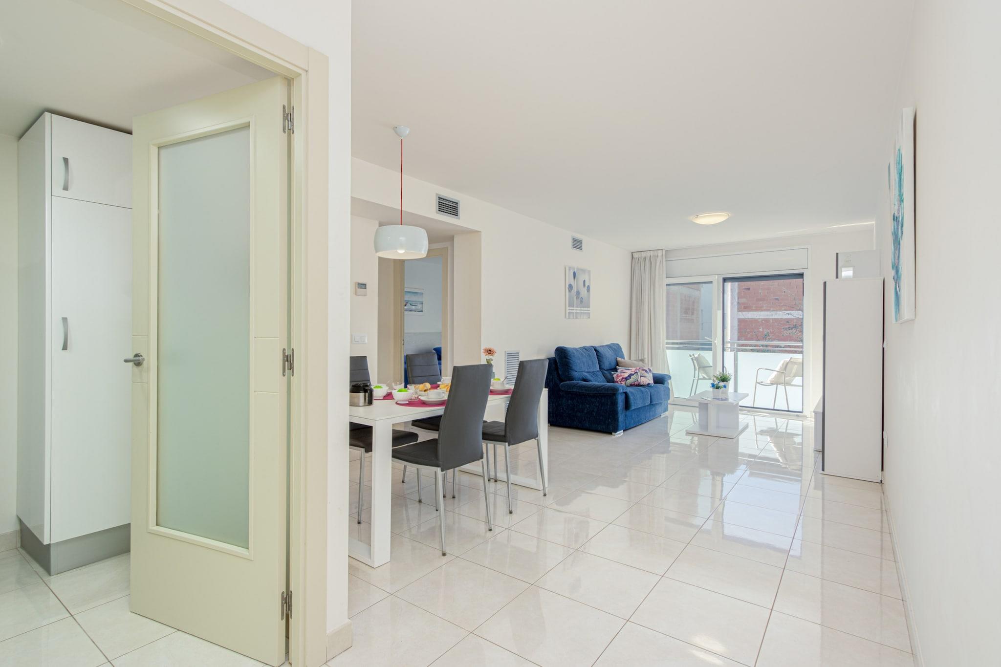Nyd en afslappende kystferie i denne moderne lejlighed med 2 soveværelser, der ligger kun 150 meter fra sandstranden "de la Punta" i hjertet af Roses. Med 70 m² lyst og komfortabelt opholdsrum har lejligheden plads til op til 5 gæster og er perfekt til familier eller små grupper. Beliggende i et familievenligt kvarter tæt på butikker, restauranter og lokale attraktioner, tilbyder den både bekvemmelighed og en fredelig atmosfære. Lejligheden har en rummelig opholdsstue, et badeværelse med bruser og et åbent køkken udstyret med keramisk kogeplade, ovn, mikrobølgeovn, opvaskemaskine og kaffemaskine - ideelt til at tilberede måltider derhjemme. Gæsterne kan nyde den friske luft fra den private balkon, og faciliteter såsom aircondition overalt, centralvarme, Wi-Fi, satellit-tv og vaskemaskine sikrer et behageligt ophold. Lejligheden ligger på 2. sal med elevatoradgang og inkluderer også udendørs parkering i en nærliggende bygning. Uanset om du planlægger en strandferie eller udforsker de kulturelle højdepunkter på Costa Brava, tilbyder denne lejlighed en god base. Valgfrie tjenester såsom sengelinned, håndklæder og slutrengøring er tilgængelige, og et refunderbart depositum er påkrævet. Bemærk venligst, at kæledyr og ungdomsgrupper ikke er tilladt. Fleksible ind- og udtjekningsmuligheder er tilgængelige i lavsæsonen, og bureauet hjælper gerne med personlige arrangementer.