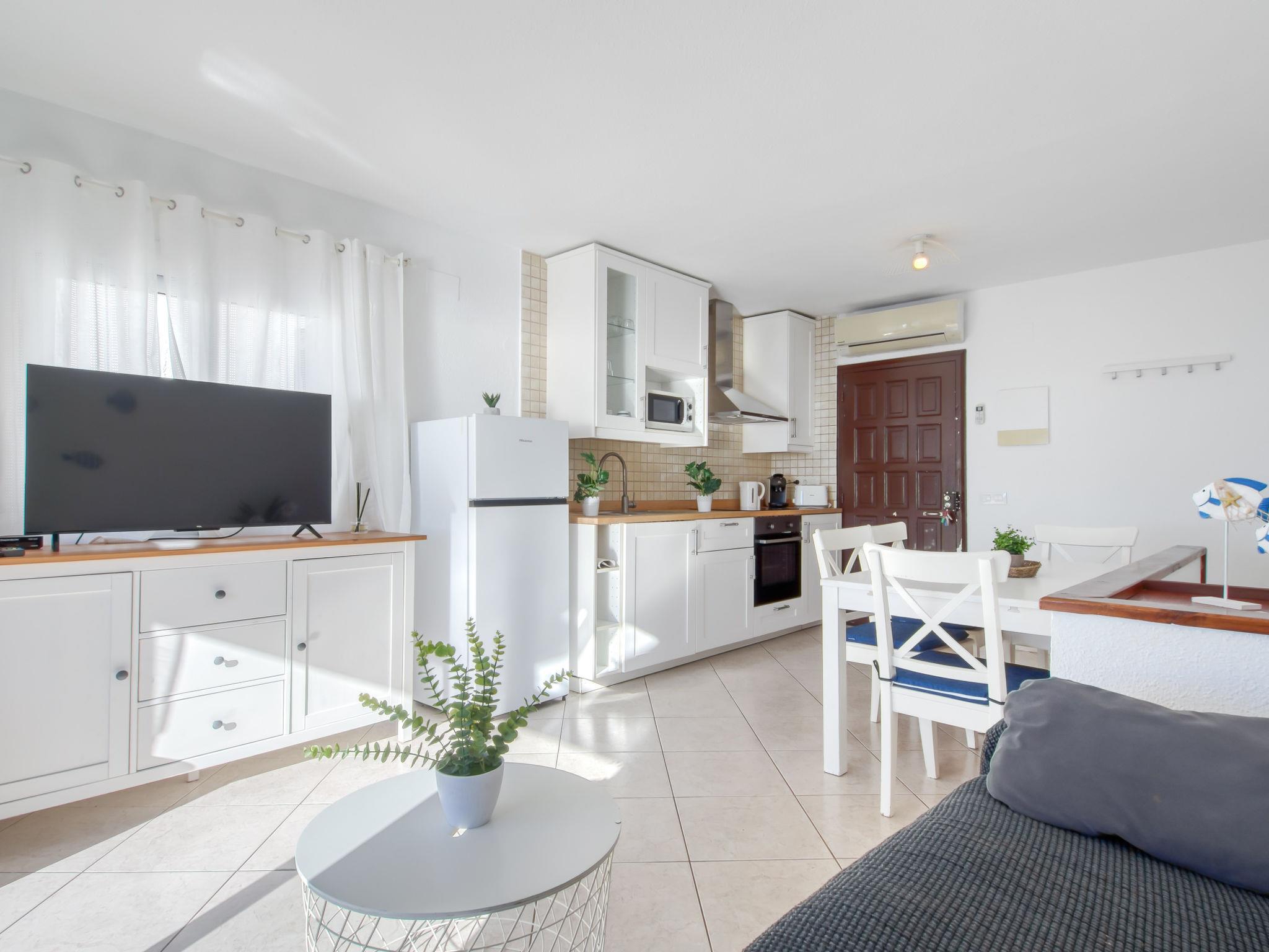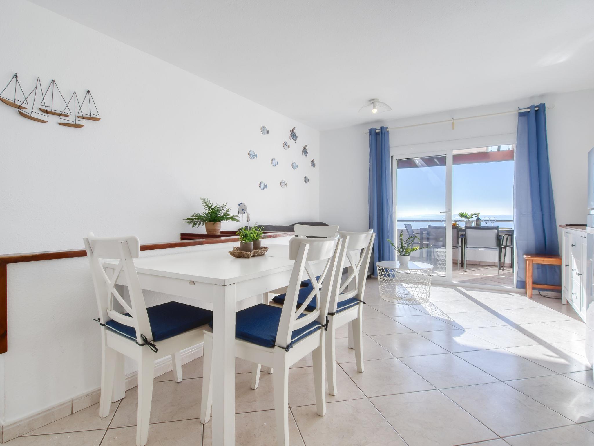 3-room terraced house 60 m2 on 2 levels. Bright, practical and cosy furnishings: living/dining room with dining table, satellite TV, air conditioning and forced-air heating. Exit to the terrace, south facing position and west facing position. Open kitchen in the entrance (oven, 4 ceramic glass hob hotplates, toaster, kettle, microwave, freezer, electric coffee machine). On the lower ground floor: 1 room with 1 french bed (150 cm, length 190 cm), electric heater and fan. Exit to the terrace. 1 room with 2 beds (90 cm, length 190 cm). Shower/WC. Terrace 15 m2. Terrace furniture. Marvellous panoramic view of the sea and the mountains. Facilities: washing machine, iron, hair dryer. Internet (WiFi, free). Parking space n 29. Please note: non-smokers only. TV only ES, FR. No lift. 60 steps to access the dwelling. HUTG-020465 // Reg. Nr.: ESFCTU00001701900004864600000000000000HUTG-020465-953