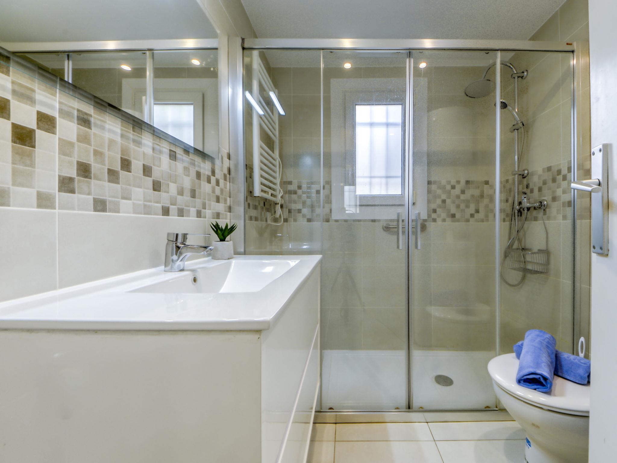 Playa de l'Almadrava 4 km from Roses: Cosy, comfortable apartment block "El Santiago II". 4 km from the centre of Roses, in a quiet, sunny position, 300 m from the sea, 300 m from the beach, road to cross, south-west facing position. Steep motor access. Parking. Shop, grocery 10 m, supermarket 1 km, restaurant 300 m, bar 200 m, bus stop "Moventis estació bus" 5.3 km, railway station "Figueres Renfe Adif" 26 km, sandy beach "Almadrava" 300 m pebble beach "Cala Murtra" 1.5 km, swimming bay 300 m. Sports harbour 4 km, golf course (18 hole) 20 km, tennis 13 km, minigolf 13 km. Nearby attractions: Parque Acuático Aquabrava Roses 7 km, Centro paracaidismo y túnel del viento 13 km, Museo Dalí Figueres 24 km, Casino y festival de Peralada 25 km, Monasterio Sant Pere de Rodes 25 km, Cadaqués 17 km. Please note: car recommended. Groups of teenagers on request only. The keys‘ handover takes place by the agency Interhome in Roses. Neighbourhood highly sensitive to noise. Quietness and good behaviour expected.