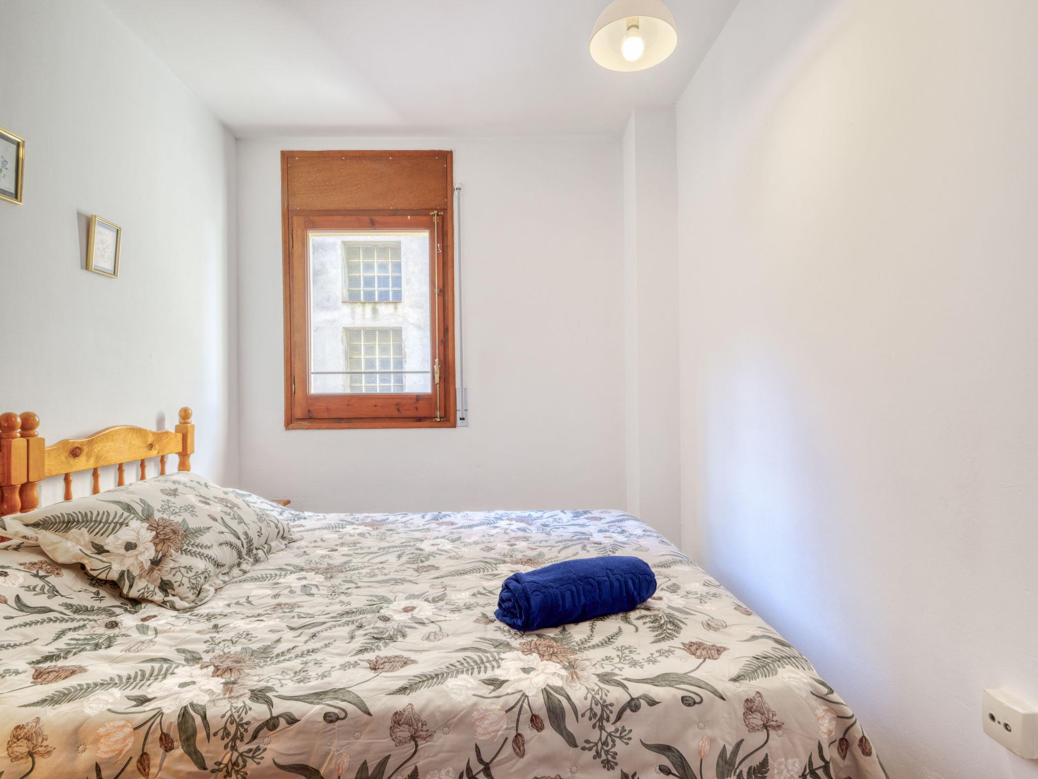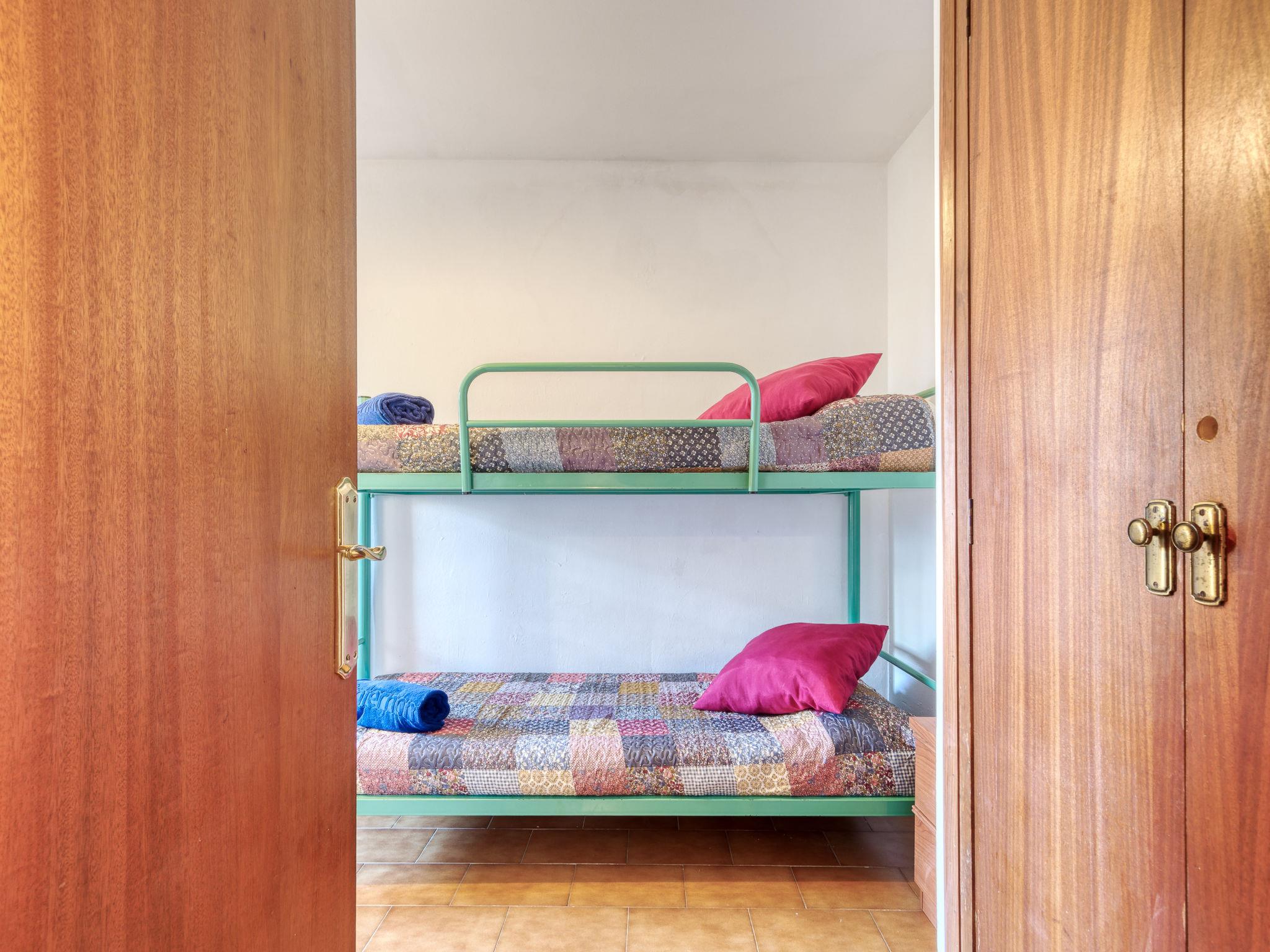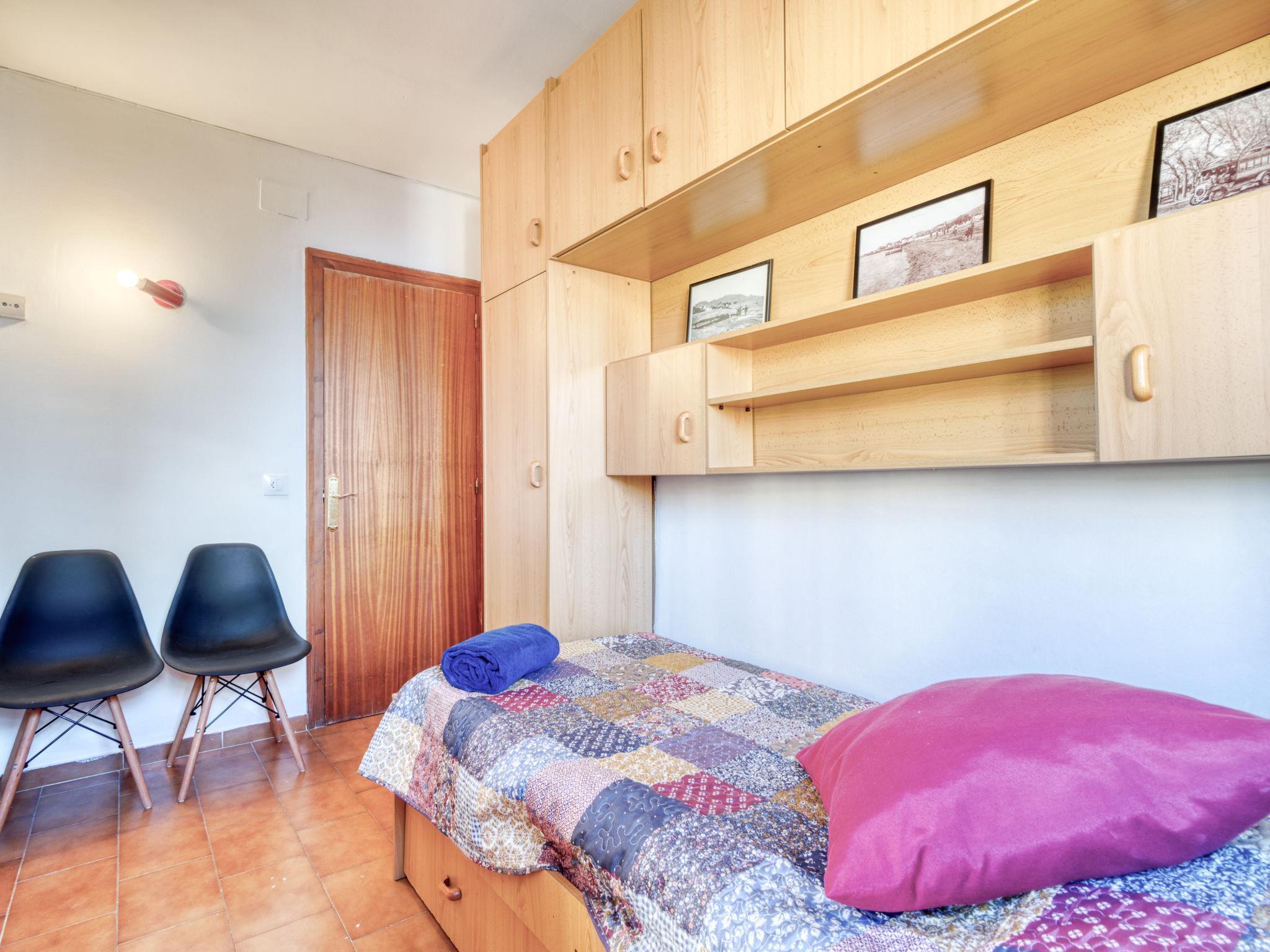 4-room apartment 70 m2 on 2nd floor. Very simple furnishings: living/dining room with dining table, TV, air conditioning and forced-air heating. 1 room with 1 french bed (140 cm, length 190 cm). 1 room with 1 bed (90 cm, length 190 cm). 1 room with 1 x 2 bunk beds (90 cm, length 190 cm). Small, open kitchen (dishwasher, 2 ceramic glass hob hotplates, toaster, kettle, microwave, freezer, electric coffee machine). Bath/bidet/WC. Boiler (100 litres). View of the resort. Facilities: washing machine. Internet (WiFi, free). Please note: non-smokers only, no parking. TV only ES. No lift. Apartment without terrace. HUTG-057954 // Reg. Nr.: ESFCTU00001701900008774400000000000000000HUTG-0579549
