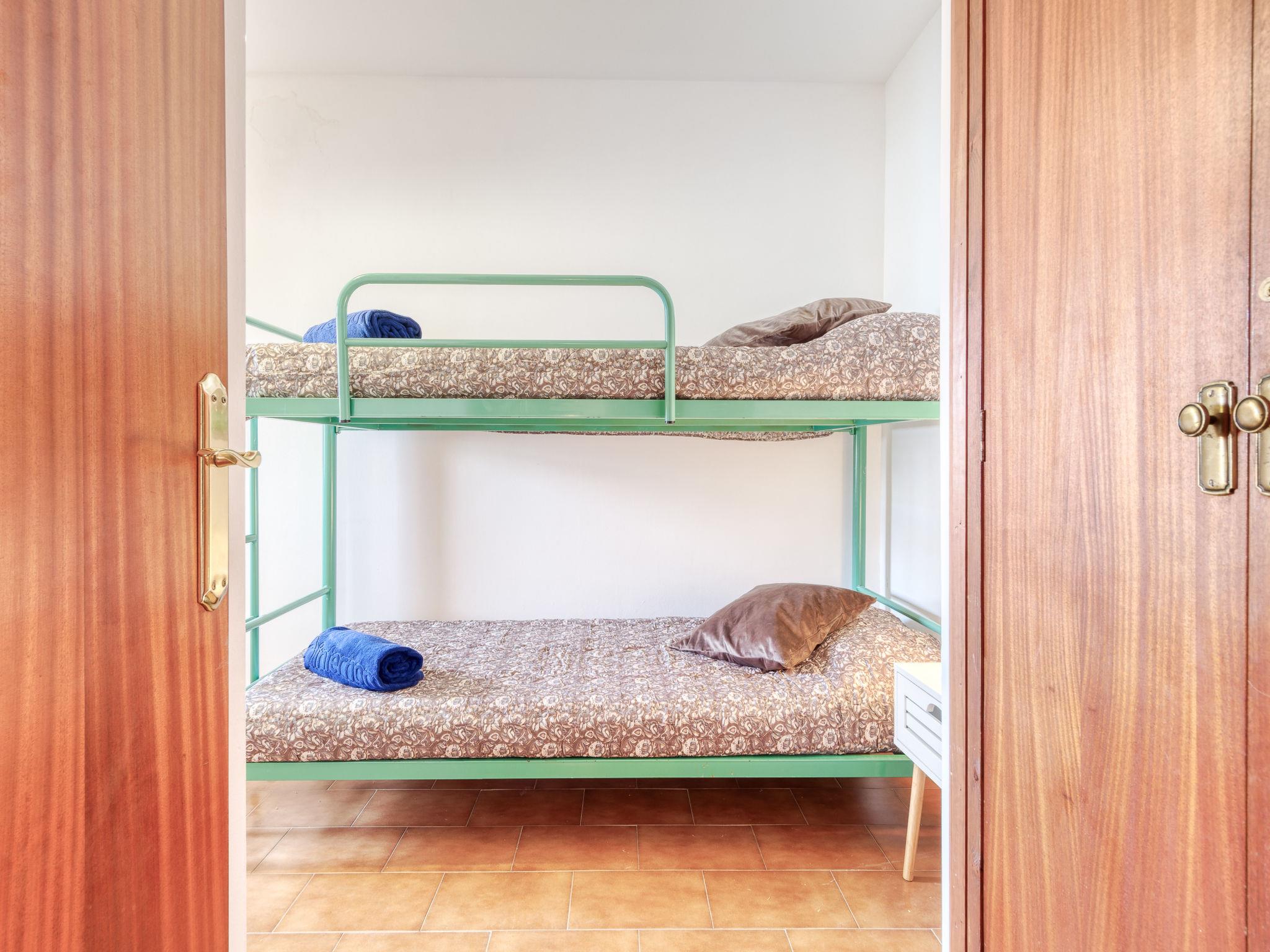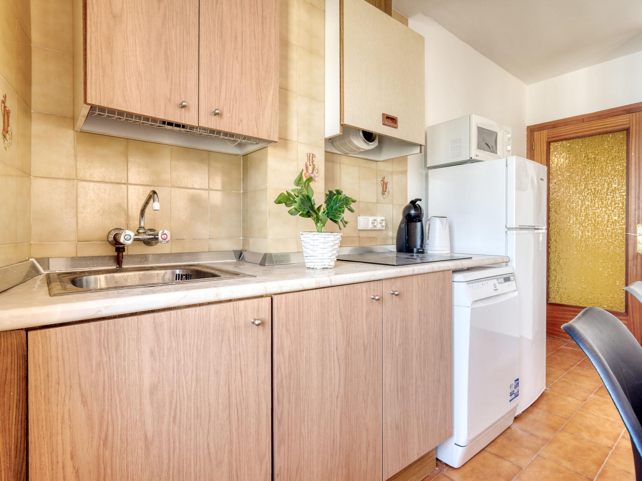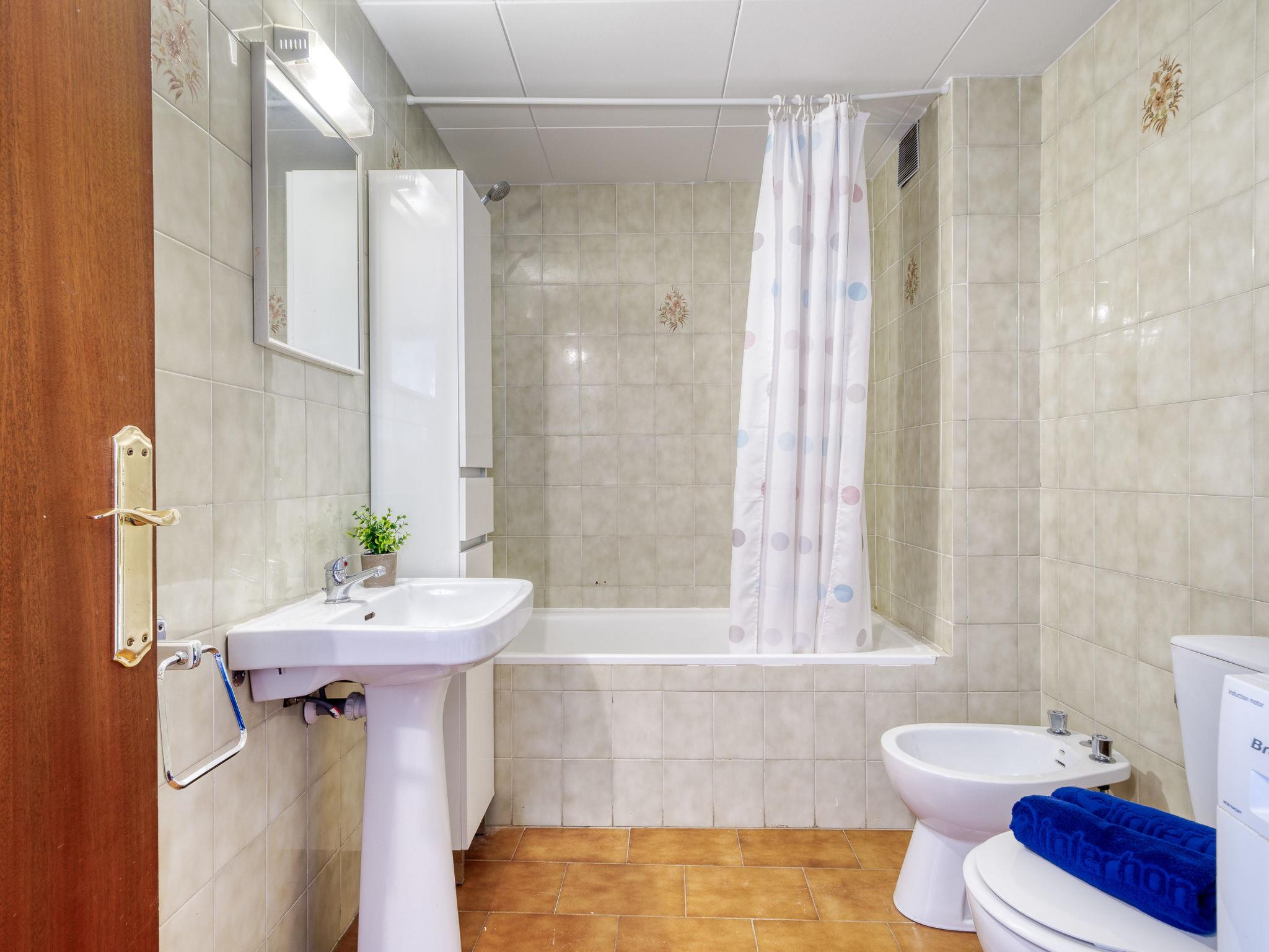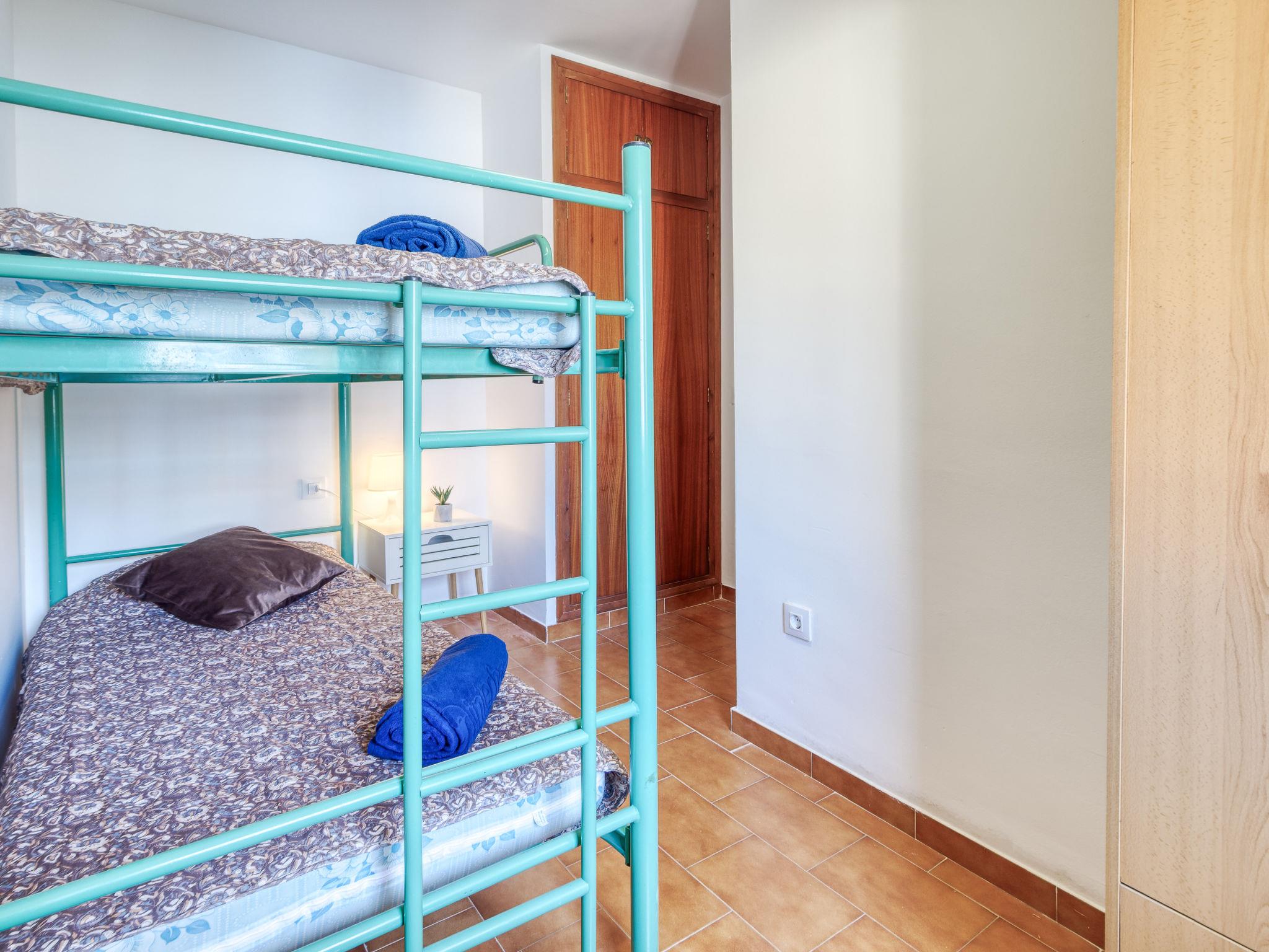 4-room apartment 70 m2 on 3rd floor. Very simple furnishings: living/dining room with dining table, TV, air conditioning and forced-air heating. 1 room with 1 french bed (140 cm, length 190 cm). 1 room with 1 bed (90 cm, length 190 cm). 1 room with 1 x 2 bunk beds (90 cm, length 190 cm). Small, open kitchen (dishwasher, 3 induction hot plates, toaster, kettle, microwave, freezer, electric coffee machine). Bath/bidet/WC. Boiler (100 litres). View of the resort. Facilities: washing machine. Internet (WiFi, free). Please note: non-smokers only, no parking. No lift. Apartment without terrace. HUTG-057953 // Reg. Nr.: ESFCTU00001701900008774400000000000000000HUTG-0579532