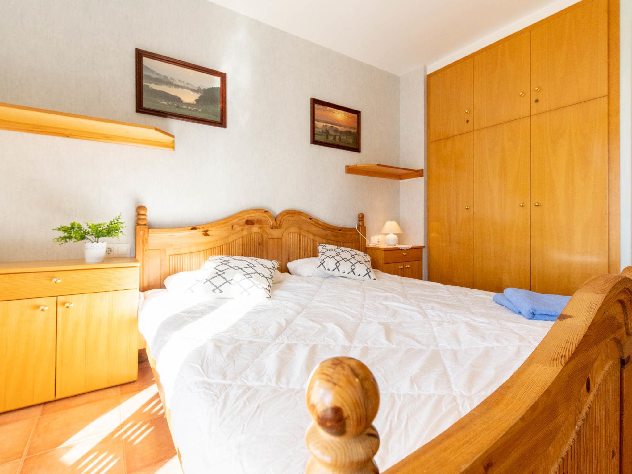 3-room apartment 62 m2. Spacious, practical furnishings: living/dining room with dining table and satellite TV. Exit to the terrace. 1 room with 1 french bed (2 x 90 cm, length 200 cm). 1 room with 2 beds (90 cm, length 200 cm). Kitchen (4 hot plates, toaster, kettle, microwave, freezer, electric coffee machine). Bath/WC, shower/WC. No heating option. Terrace 11 m2. Terrace furniture. Facilities: washing machine, iron, hair dryer. Garage space n 4 2,3X4,20.Coche peq. Please note: non-smokers only. TV only ES, FR, DE. HUTG-008524 // Reg. Nr.: ESFCTU0000170190003423620000000000000HUTG-008524-597