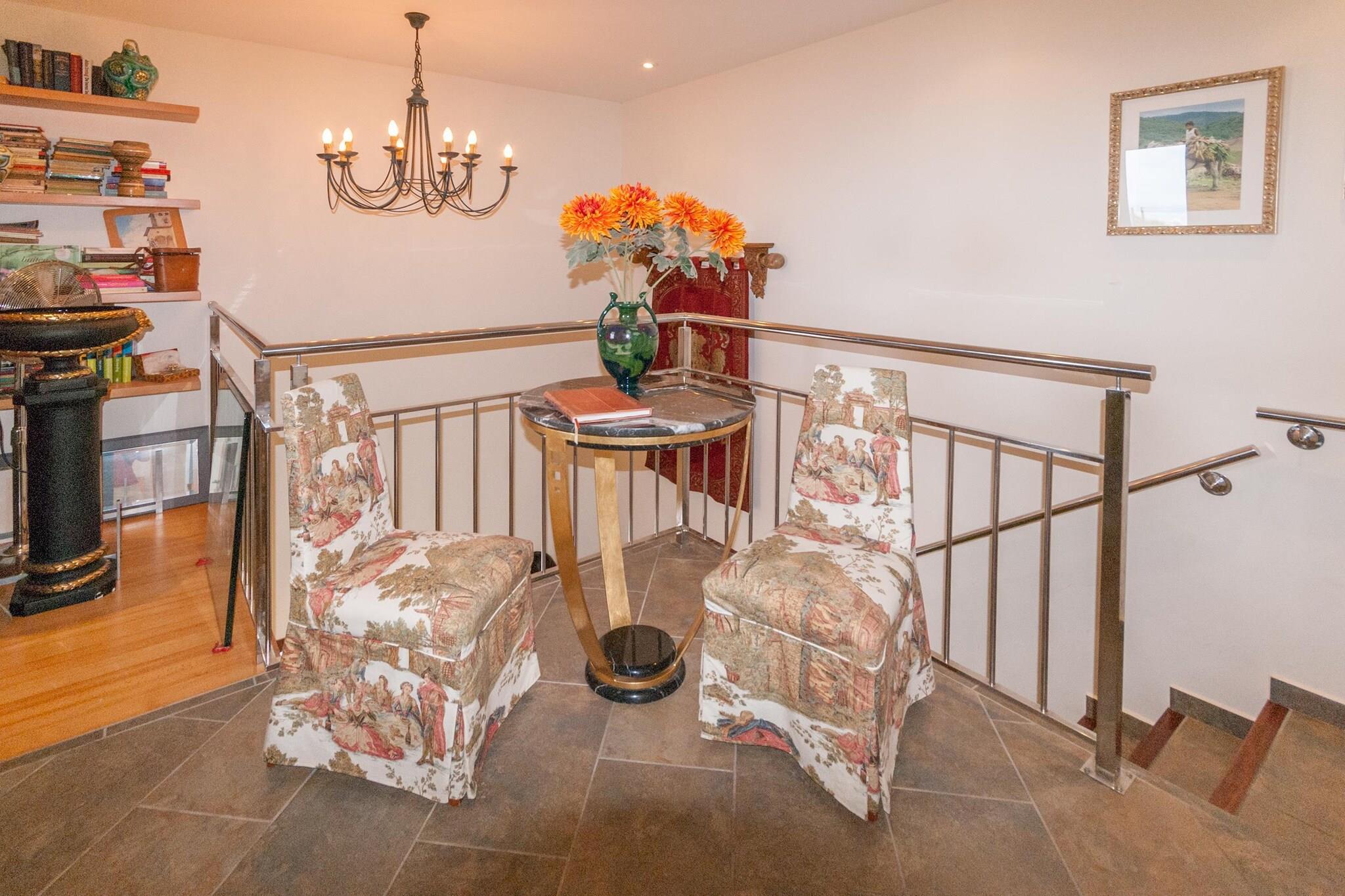 På 1. etage: (åbent køkken(Fjernsyn, spisebord(4 personer), pejs, sofahjørne, kogeplade(induktion), elkedel, kaffemaskine, ovn, opvaskemaskine , køleskab, vaskemaskine, klimaanlæg), soveværelse(enkeltseng(90 x 200 cm), enkeltseng(90 x 200 cm), klimaanlæg), soveværelse(køjeseng, klimaanlæg), badeværelse(bruser, håndvask, toilet), terrasse(privat), have(deles med andre gæster), havemøbler, swimmingpool(deles med ejer og andre gæster, indhegnet))