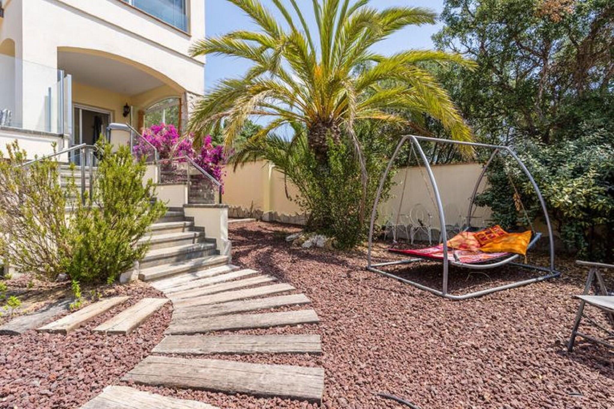Stueetage: (sofastue(pejs, sofahjørne, klimaanlæg), Køkken(kogeplade(Komfur med fire kogeplader, glaskeramisk), elkedel, kaffemaskine, opvaskemaskine , køleskab), soveværelse(enkeltseng(90 x 200 cm), enkeltseng(90 x 200 cm), klimaanlæg), Soveværelse med badeværelse(dobbeltseng(180 x 190 cm), badekar, håndvask, toilet, klimaanlæg), badeværelse(bruser, håndvask, toilet), vaskemaskine, terrasse(privat), have(deles med andre gæster), havemøbler, swimmingpool(deles med andre gæster, indhegnet))