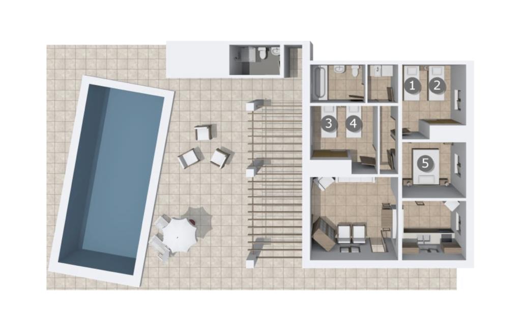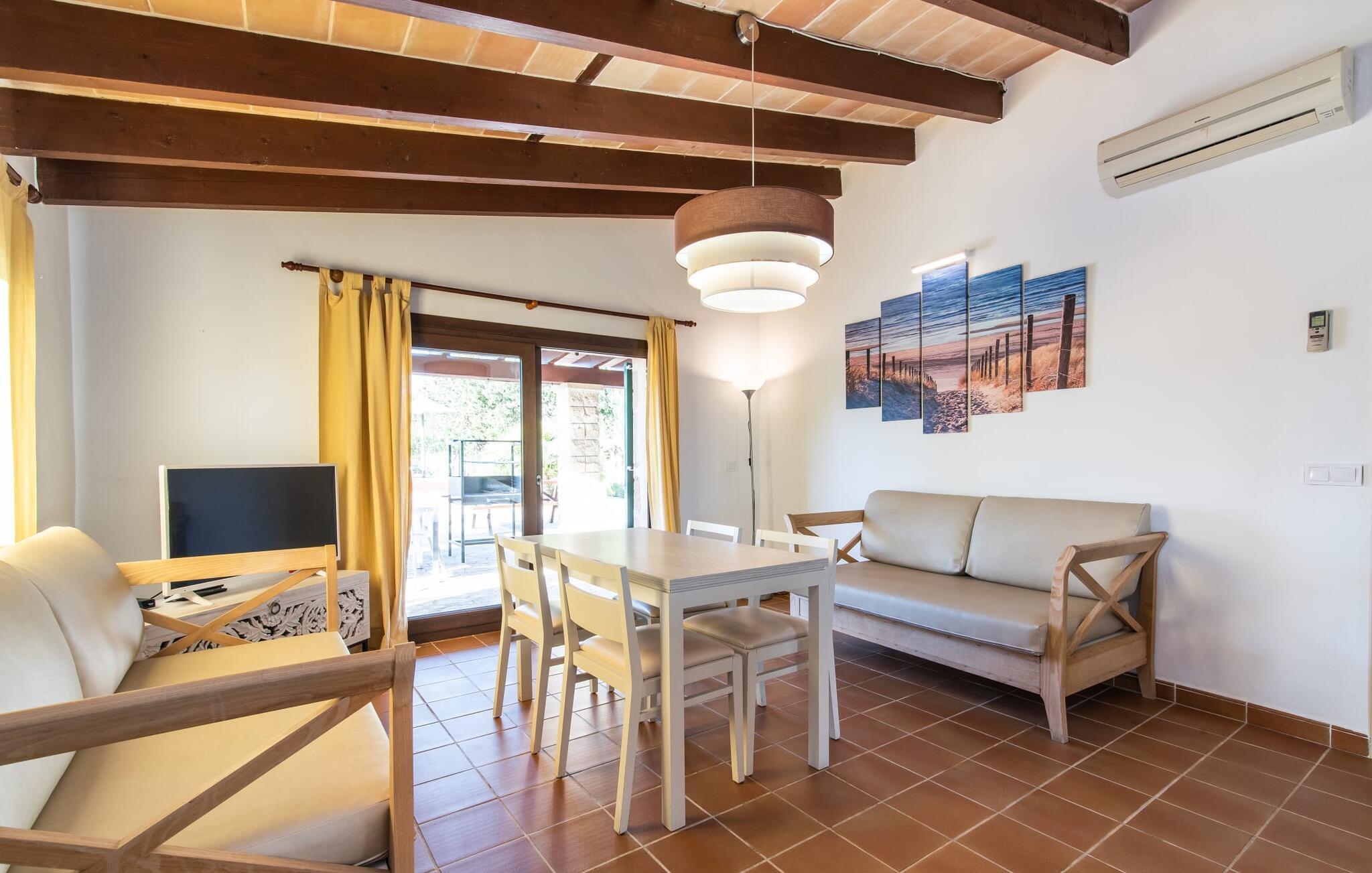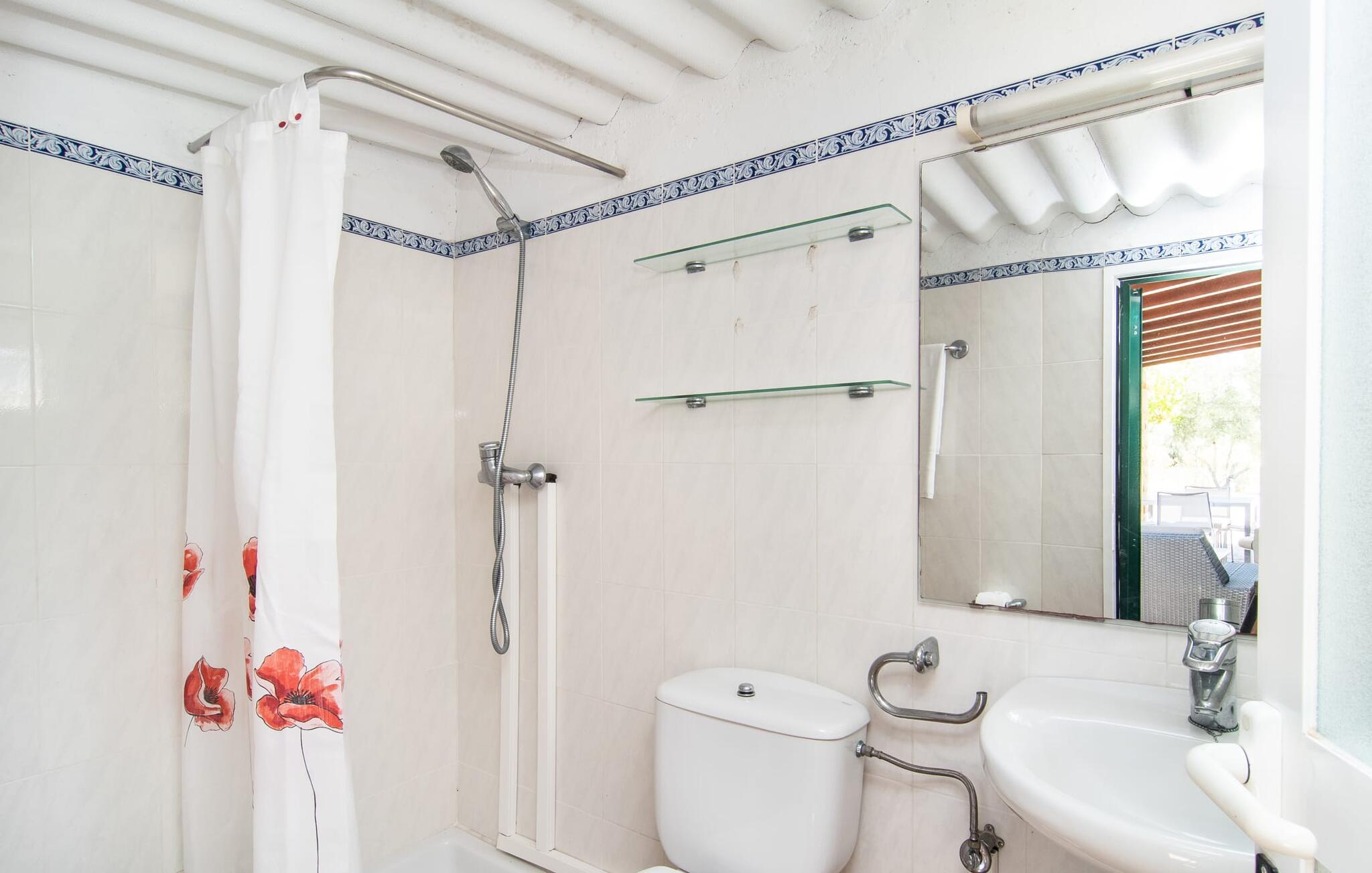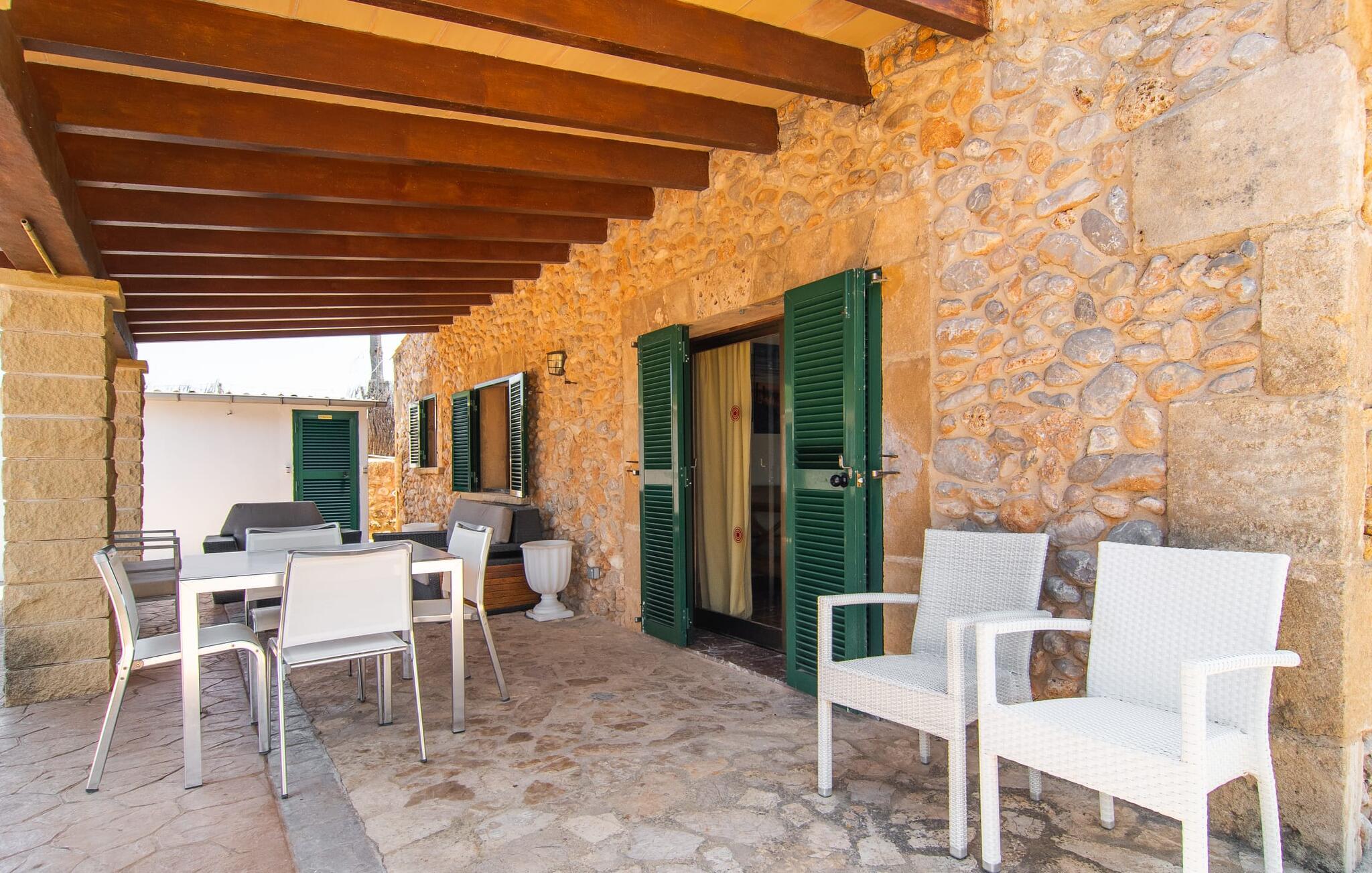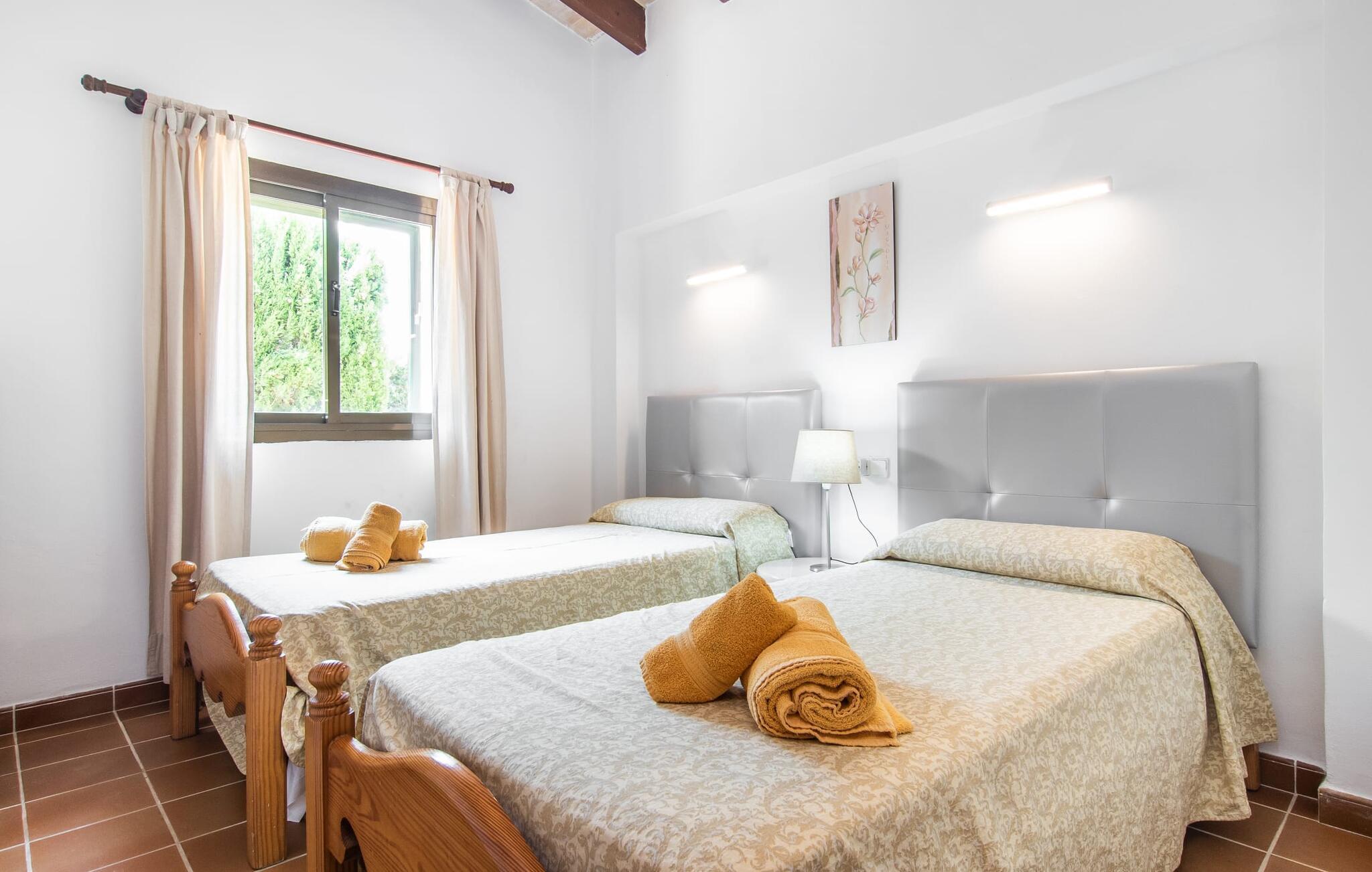 Den idylliske villa "Rotes de Bou" ligger meget tæt på en hovedvej, der fører direkte til den lokale strand. Denne ferieboligs store grund byder på en frodig bestand af træer og forskellige andre middelhavsplanter, der smukt indrammer det store pool- og terrasselandskab. I midten af udendørsområdet, let forhøjet, ligger den 32 m² store pool, hvor I kan køle af dejligt på varme dage. Det er tilgængeligt via en klassisk trappe og er omgivet af en solterrasse i kontrasterende farver. Komfortable liggestole tilbyder ideelle betingelser for omfattende afslapning. Måske vil I bare slukke og ikke lave noget i et stykke tid – I er trods alt på ferie. For at beskytte jer mod stærk UV-stråling fås en parasol. Herfra fører et par trin til den store, delvist overdækkede terrasse ved siden af huset. Der er en række udendørs siddepladser til rådighed på terrassen, der passer til en bred vifte af aktiviteter og behov. For eksempel kan I spise middag sammen ved siddeområdet, slappe af i det lille, luksuriøse loungeområde med polyrattan-lænestole eller blive hængende i den luftige skygge ved træbord-bænk-kombinationen - også perfekt til at nyde middagen sammen. Her kan I sammen fejre en kulinarisk grillaften, tilberede og nyde lækre regionale delikatesser og nyde den smukke udsigt over haven. Traditionelt træder man ind i huset via terrassen og når den stemningsfulde stue-spisestue, hvor muntre farver og en variation af individuelle dekorationer harmonerer med det smukke fritlagte bjælkeloft og gulvfliser. I kan slappe af i de komfortable sofaer og lænestole på et hvilket som helst tidspunkt af dagen og måske fordybe jer i en god bog eller et blad - eller blive underholdt af en attraktiv film, som I kan se på det bekvemt placerede fladskærms-satellit-tv her. Dette værelse byder med sit åbne design på to forskellige spisepladser samt køkkenet, der er lidt adskilt fra rummet af en bue og en disk. Køkkenet er rummeligt og rengøringsvenligt og er udstyret med alt hvad I skal bruge til daglig brug. Faciliteterne omfatter også en italiensk kaffemaskine og en elkedel. Individuelt og kærligt indrettede værelser inviterer jer til at slappe af og drømme. Værelserne med aircondition sikrer en afslappende søvn, selv på de varme midsommernætter. Her finder I to enkeltsenge, der måler 0,90 x 1,90 m og en dobbeltseng på 1,50 x 1,90 m. Det lyse badeværelse med dagslys er funktionelt indrettet, herunder badekar. En hårtørrer er tilgængelig i huset, så I ikke behøver at medbringe jeres egen. Havet er virkelig kun et par minutters gang væk. En særlig form for luksus, som er meget eftertragtet af mange feriegæster. Derudover har de fine sandstrande omkring Port de Pollença en lavvandet indgang til vandet, hvilket gør dem særligt attraktive for familier med børn. Den smukke by Port de Pollença byder på en smuk promenade med butikker, barer og restauranter. Dette er et meget attraktivt alternativ, hvis I ønsker at tilbringe en nat væk fra den private villa. Den gamle bydel i Pollenças centrum, der ligger lidt længere inde på øen, anses ofte for at være særligt malerisk. I dens hjerte ligger det centrale sted; Søndagsmarkedet er fyldt med lokale og turister. Villaen "Rotes de Bou" er et rigtigt højdepunkt på grund af sin sensationelle nærhed til stranden. Huset med det mest moderne udstyr ligger på en meget stor 11.000 m² grund. Kystlandsbyen Port de Pollença ligger kun 12 minutter væk i bil. Den nærmeste ligger i gåafstand, kun 250 m væk. Turen til lufthavnen tager cirka 42 minutter.
