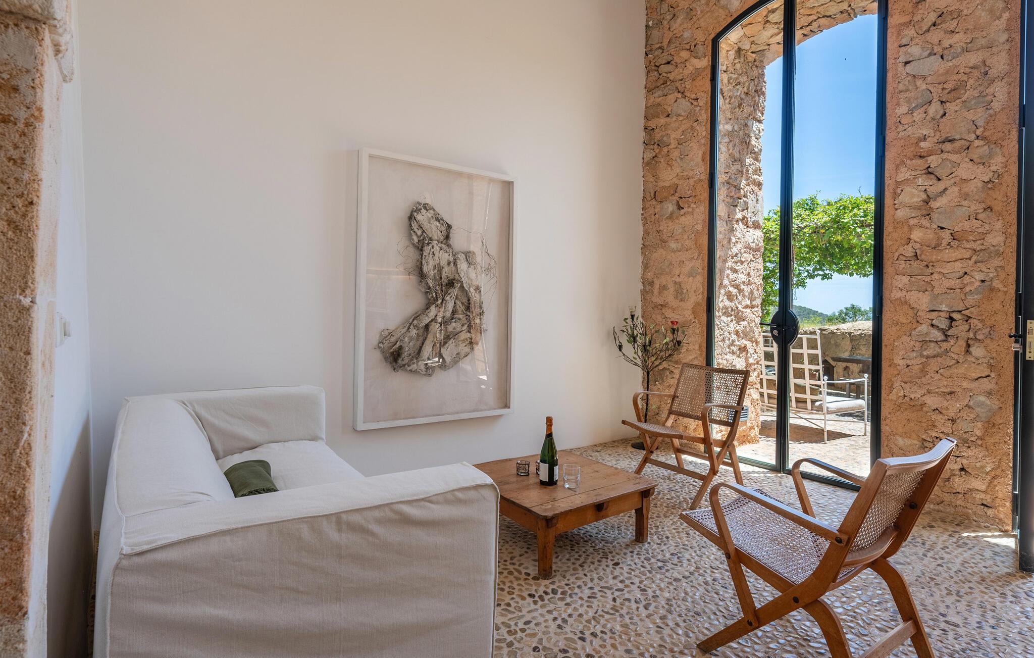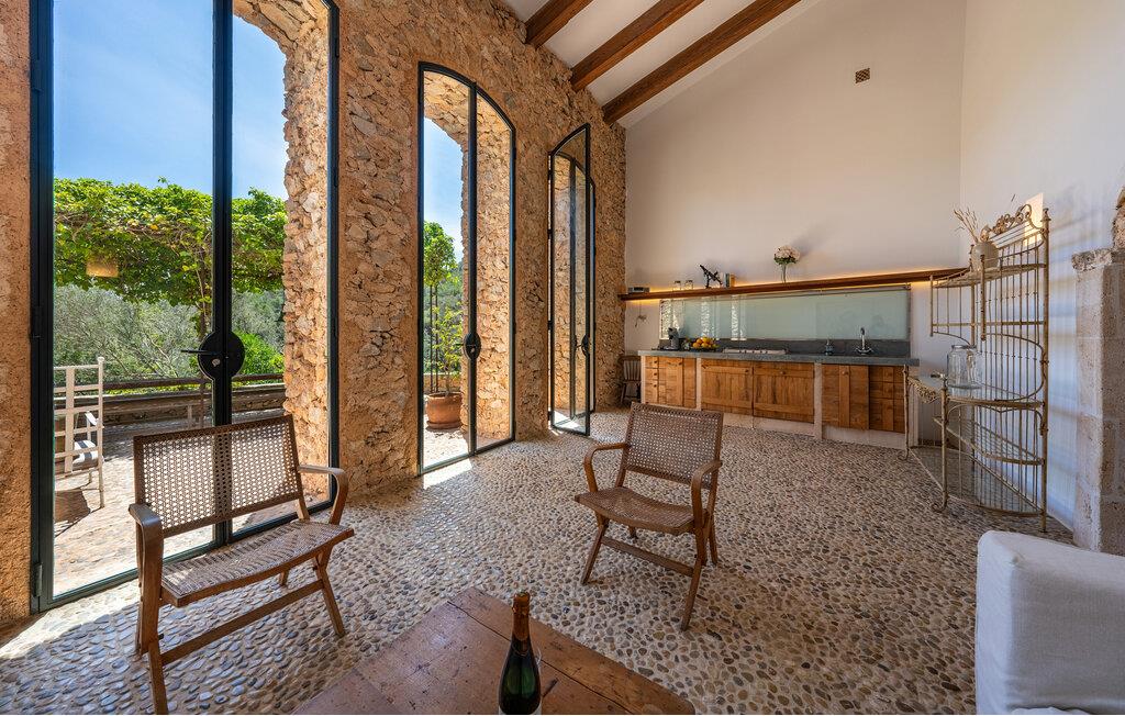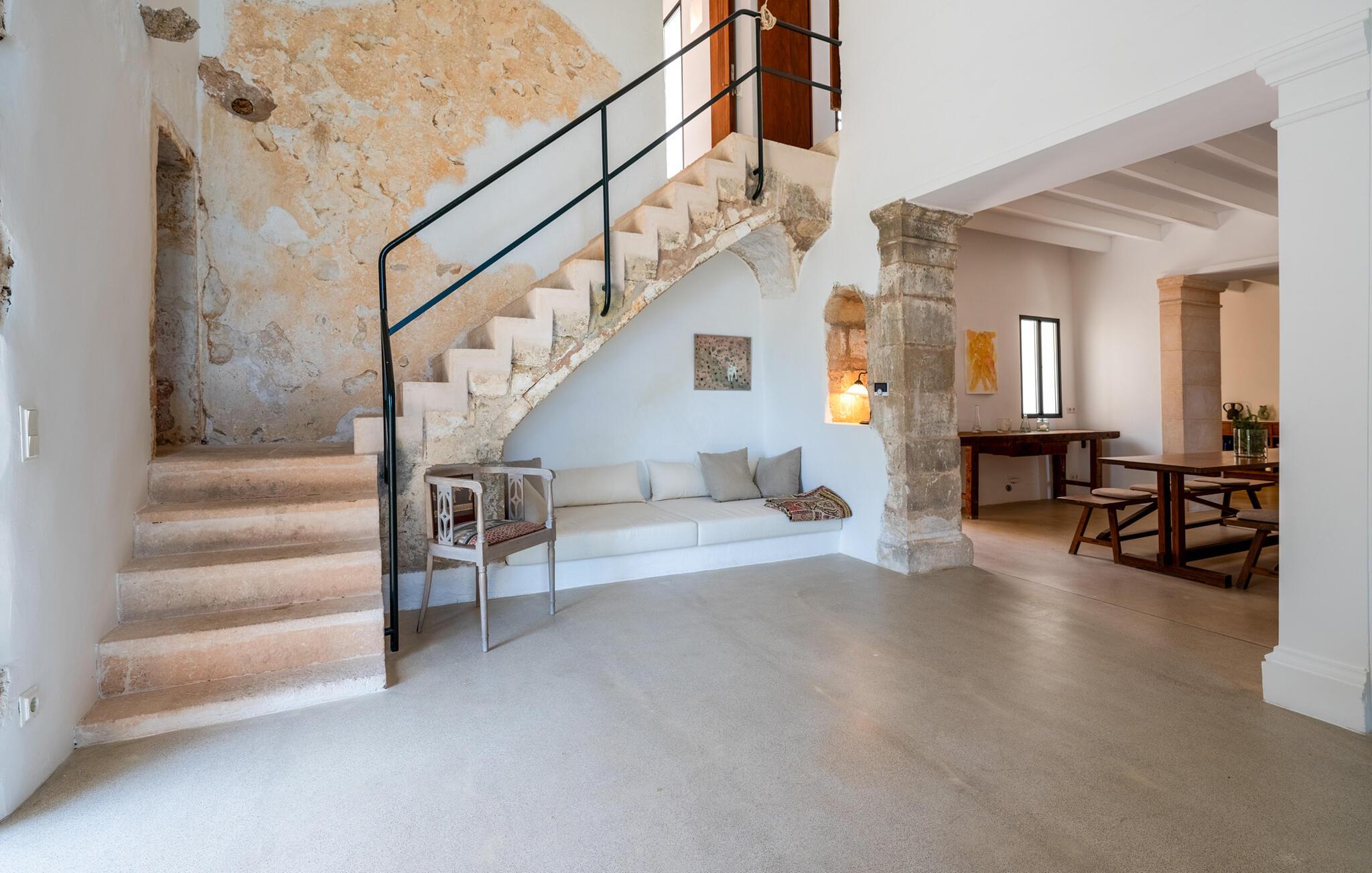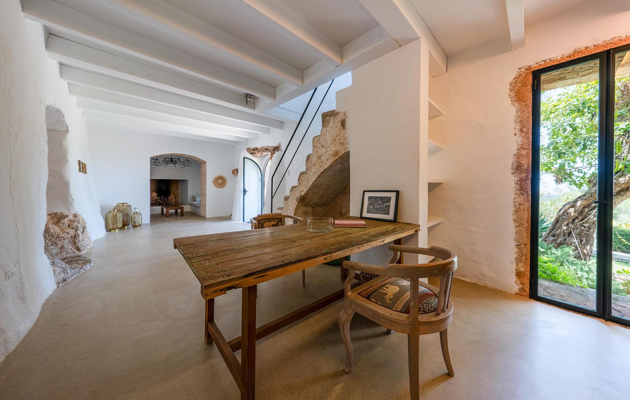 I denne imponerende finca er rustikke elementer blevet stilfuldt fremvist og harmonisk kombineret med naturlige materialer og moderne komfort. Lyse, rummelige værelser og kærlige detaljer skaber en indbydende og forfriskende atmosfære. Nyd hyggelige madlavningsaftener i det rummelige køkken og stemningsfulde måltider ved det lange træbord. Gennemse det interne bibliotek og sæt hverdagen på pause med en god snak og et glas vin.