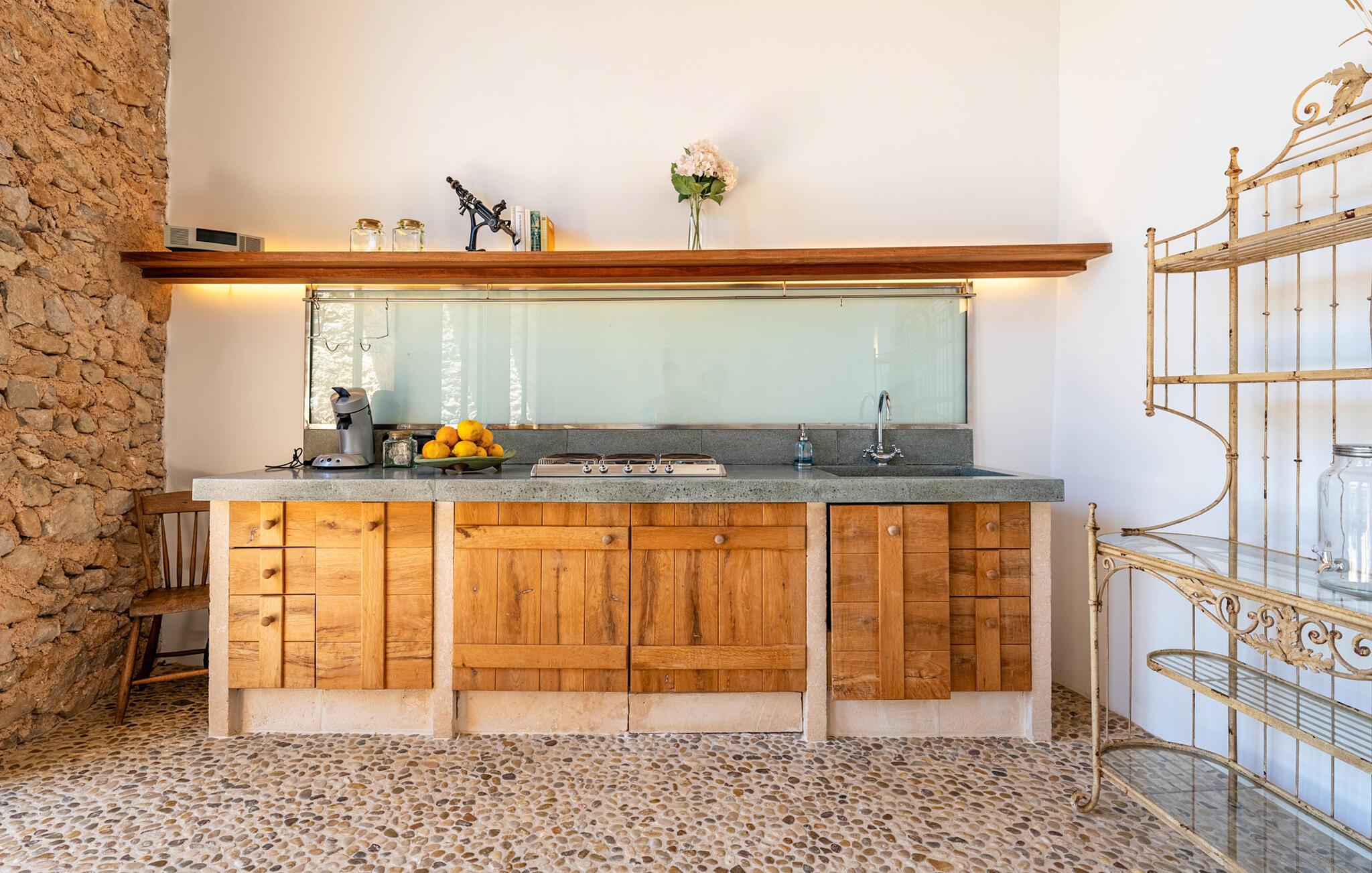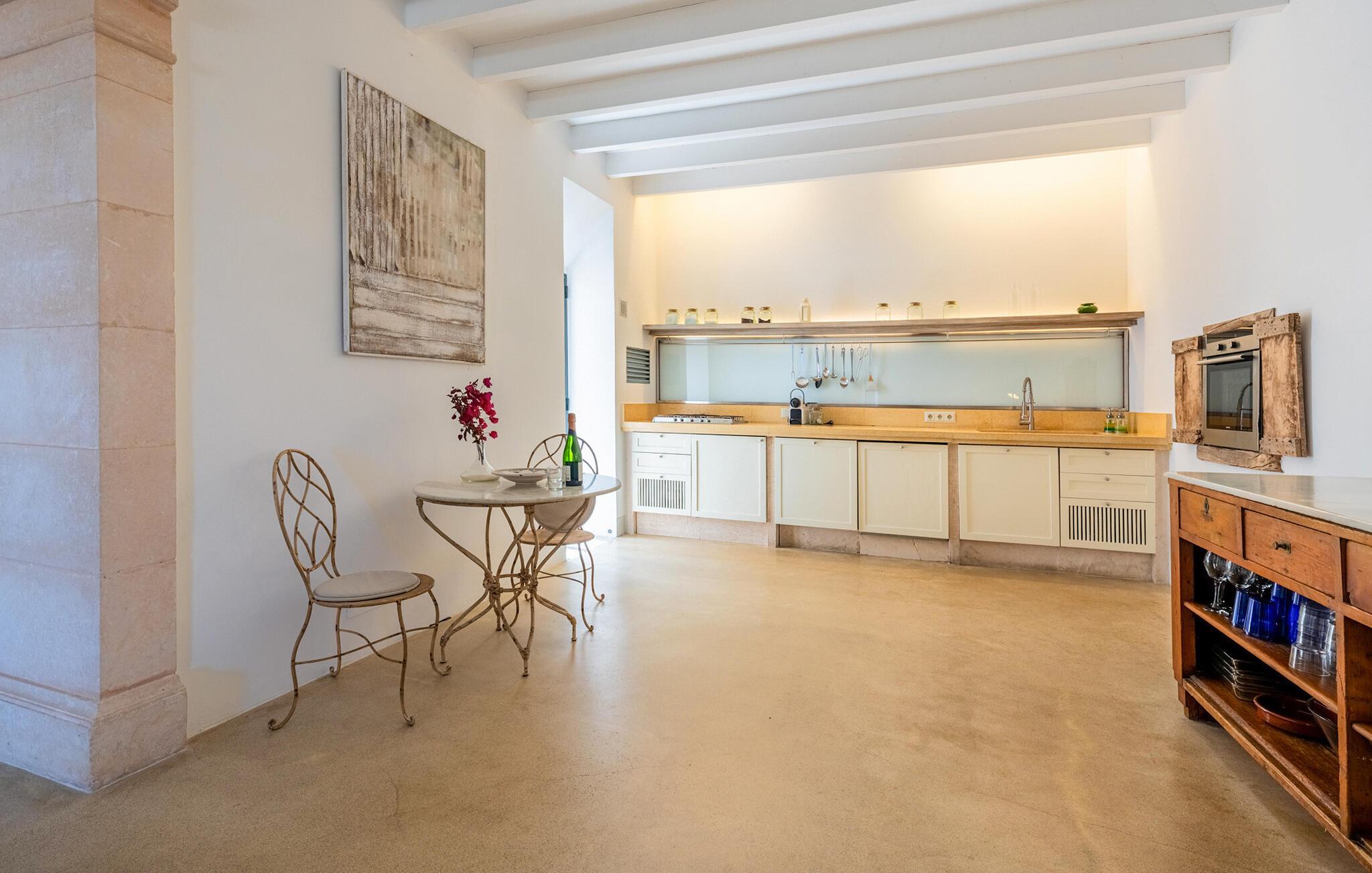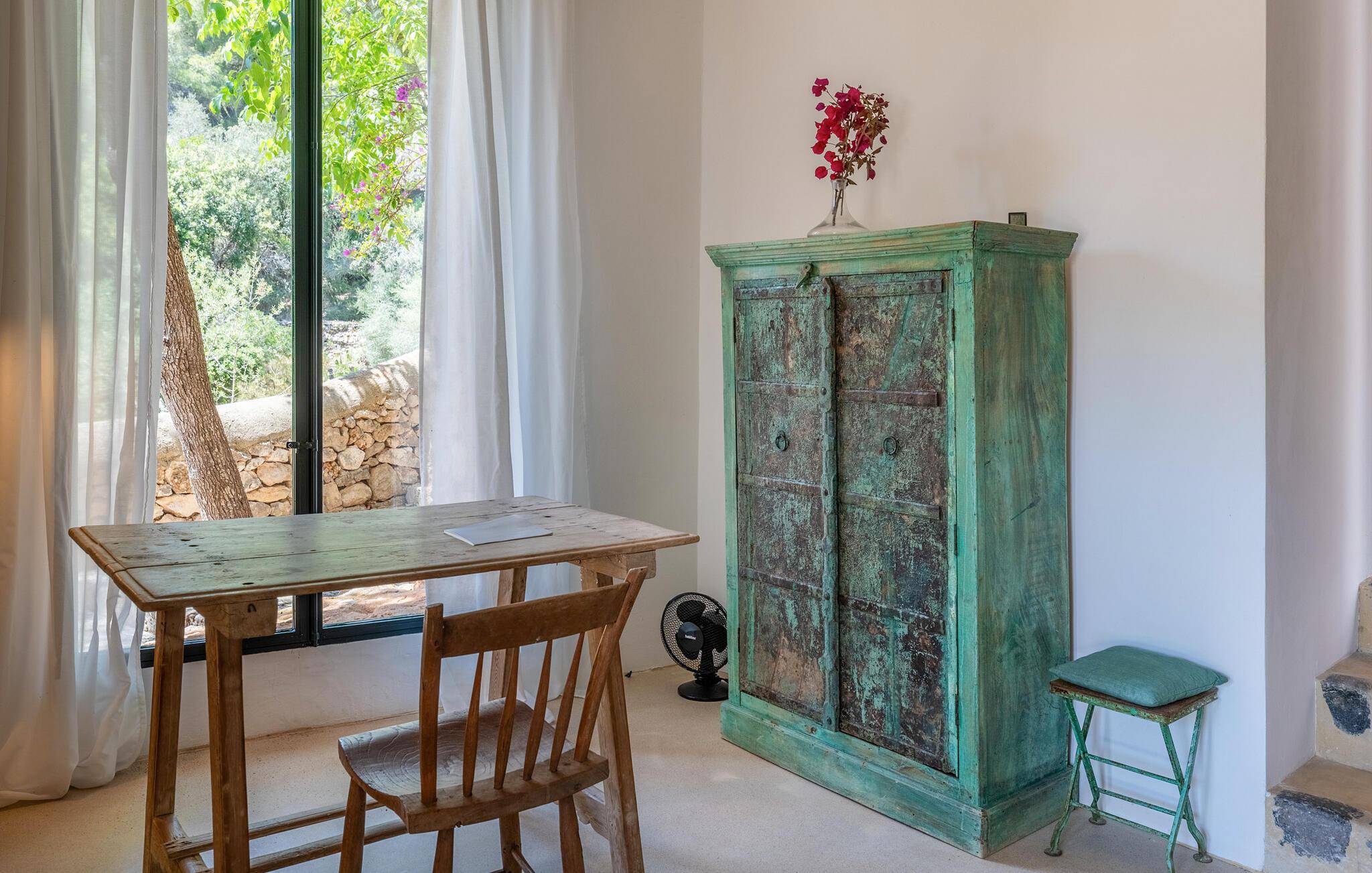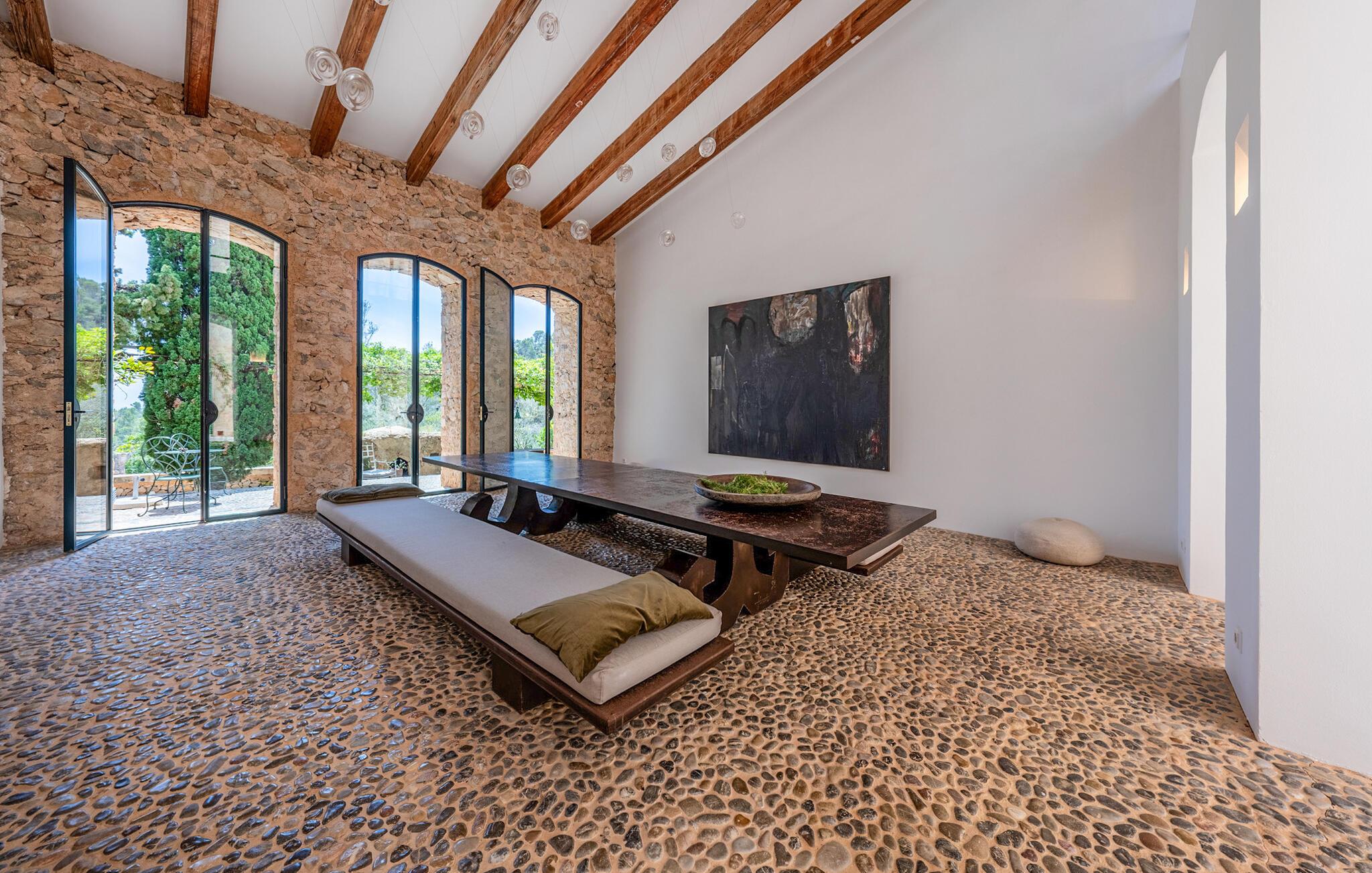 I denne imponerende finca er rustikke elementer blevet stilfuldt fremvist og harmonisk kombineret med naturlige materialer og moderne komfort. Lyse, rummelige værelser og kærlige detaljer skaber en indbydende og forfriskende atmosfære. Nyd hyggelige madlavningsaftener i det rummelige køkken og stemningsfulde måltider ved det lange træbord. Gennemse det interne bibliotek og sæt hverdagen på pause med en god snak og et glas vin.