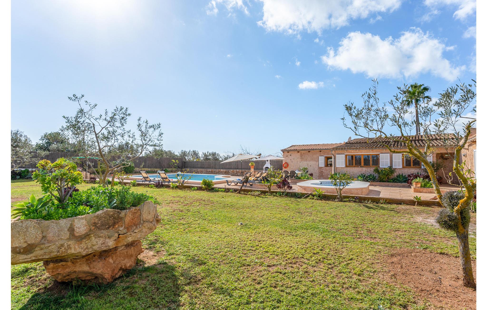 Dette lyse, venlige feel-good hus vil glæde jer. Især den privilegerede beliggenhed er bemærkelsesværdig, da I kun bor cirka 5 minutters kørsel fra de smukke sandstrande i Cala Mondragó og Cala Barca. Familier vil sætte pris på den lavvandede strand, og vandsportentsusiaster får masser af sjov for pengene. Hestelskere kan booke en ridetur lige ved siden af gården. Den nærliggende, hyggelige havn Porto Petro og den ædle bådehavn i Cala d'Or med gode barer og restauranter samt eksklusive butikker er også meget populære mødesteder.