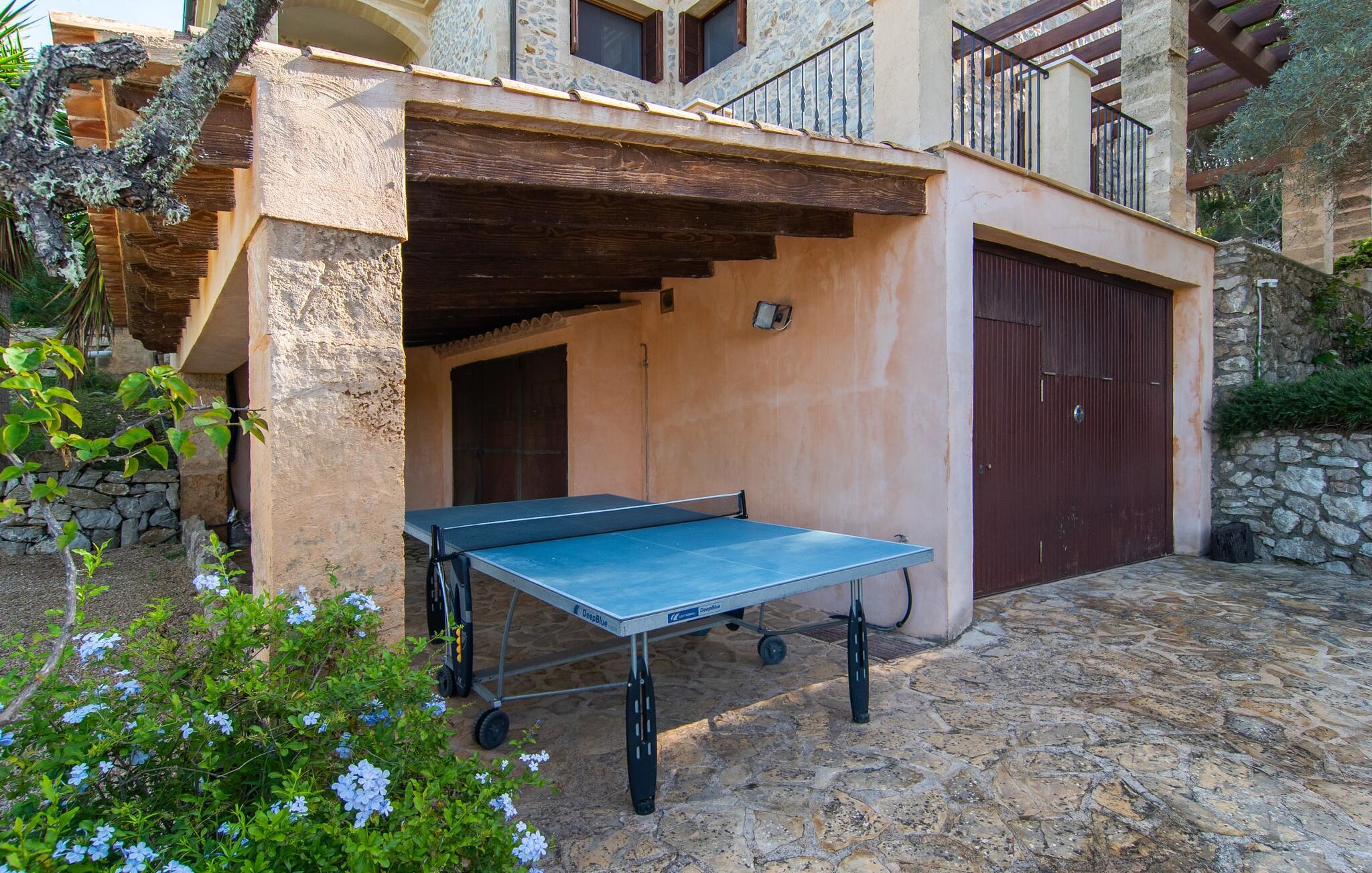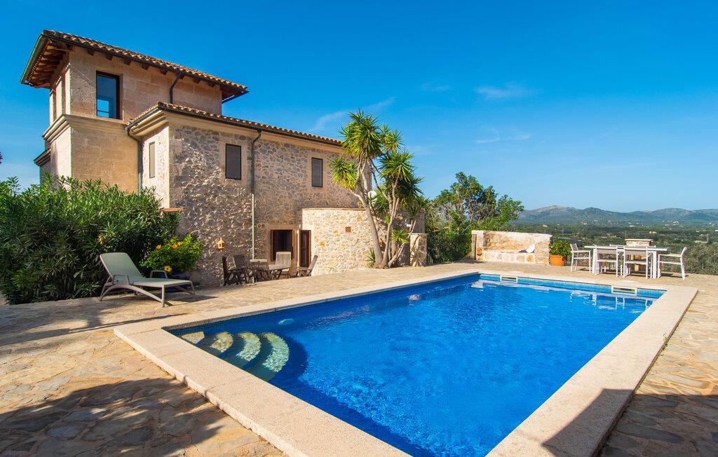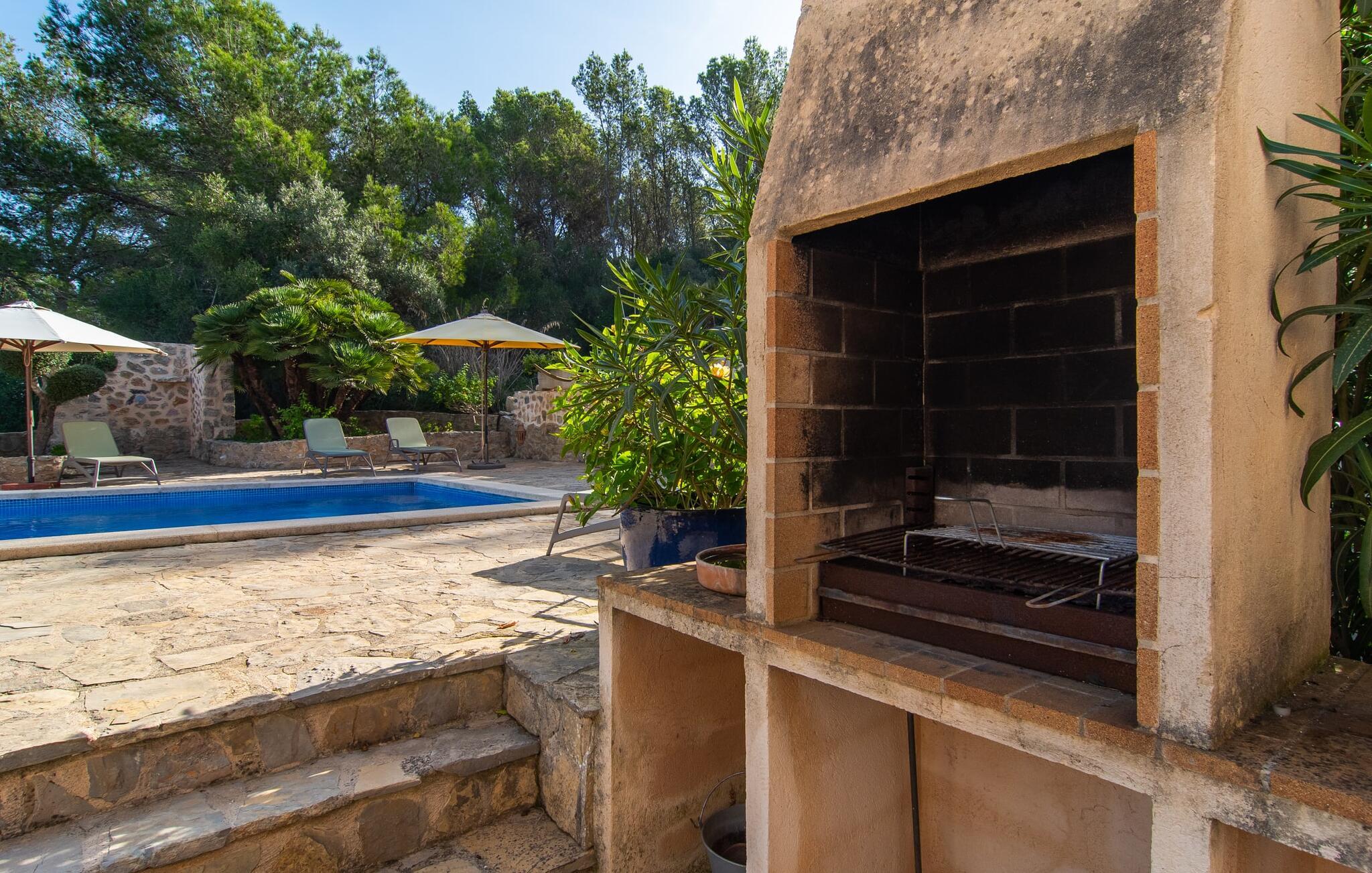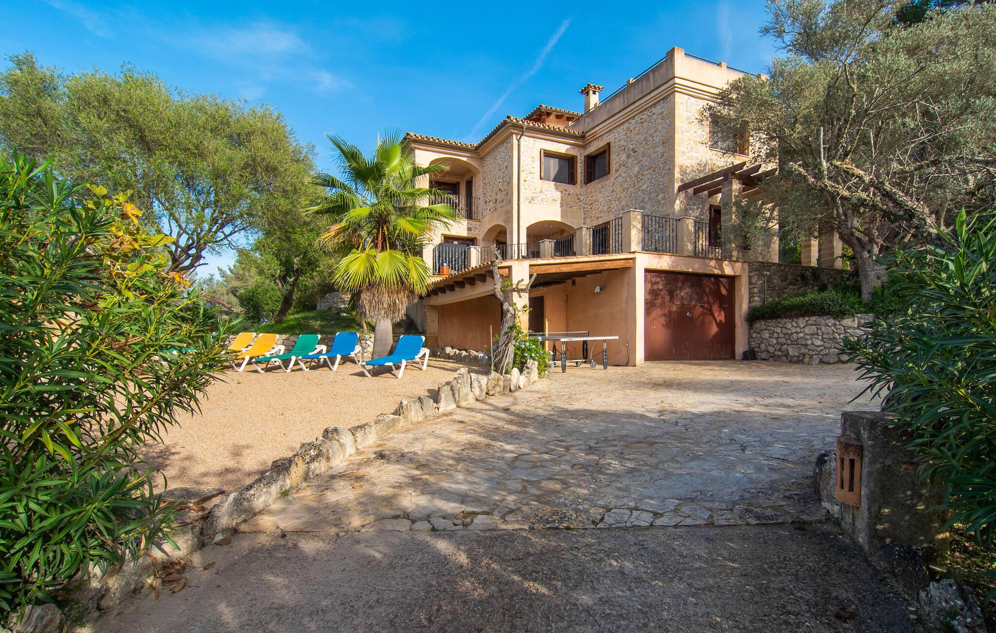 I en vidunderlig, afsides beliggenhed nær Artà byder fincaen "S'Estelrica" ??sine gæster velkommen, hvor de kan tilbringe en fuldstændig afslappende tid i absolut privatliv. Ejendommen byder jer velkommen med et middelhavspræg, når I kører mod huset gennem en allé med oleanderbuske. området er behageligt naturskønt, og de gamle træer, herunder mandel-, oliven- og figentræer, giver området et typisk mallorcansk præg. På den åbne terrasse omkring huset er der mange smukke steder at slappe af og nyde. Foran stuen og køkkenet, som er fremragende udstyret til amatørkokke, er der en overdækket terrasse. Den velholdte pool varierer i dybde mellem 1,20 m og 2 m og har et modstrømssystem. Overalt omkring kan I finde det smukkeste sted at slappe af, enten i solen eller i skyggen af ??træer og parasoller, nyde middelhavsatmosfæren og frem for alt nyde den storslåede udsigt over Artà. Den udendørs bruser i mursten er et særligt blikfang i dette område, sammen med den blå flisebelagte pool.