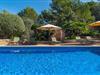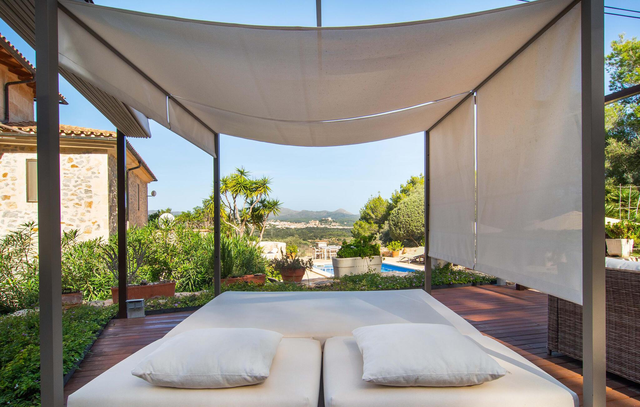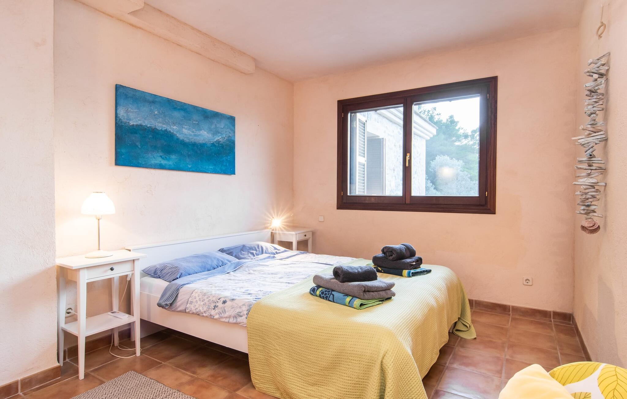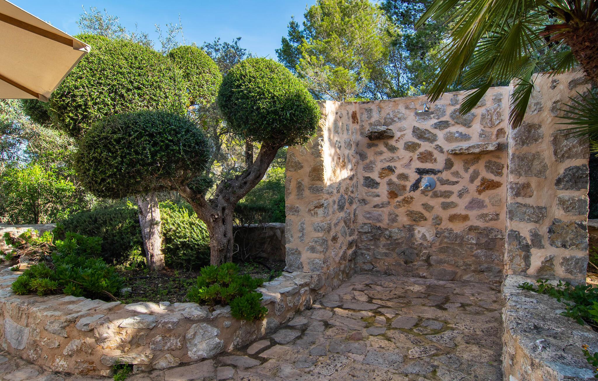 I en vidunderlig, afsides beliggenhed nær Artà byder fincaen "S'Estelrica" ??sine gæster velkommen, hvor de kan tilbringe en fuldstændig afslappende tid i absolut privatliv. Ejendommen byder jer velkommen med et middelhavspræg, når I kører mod huset gennem en allé med oleanderbuske. området er behageligt naturskønt, og de gamle træer, herunder mandel-, oliven- og figentræer, giver området et typisk mallorcansk præg. På den åbne terrasse omkring huset er der mange smukke steder at slappe af og nyde. Foran stuen og køkkenet, som er fremragende udstyret til amatørkokke, er der en overdækket terrasse. Den velholdte pool varierer i dybde mellem 1,20 m og 2 m og har et modstrømssystem. Overalt omkring kan I finde det smukkeste sted at slappe af, enten i solen eller i skyggen af ??træer og parasoller, nyde middelhavsatmosfæren og frem for alt nyde den storslåede udsigt over Artà. Den udendørs bruser i mursten er et særligt blikfang i dette område, sammen med den blå flisebelagte pool.