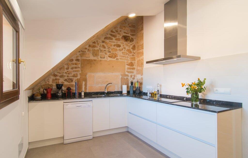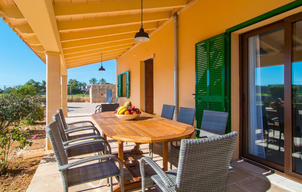 En rustik gammel bygning med masser af plads og en helt særlig charme, smagfuldt renoveret og udstyret med alle de bekvemmeligheder, I kan ønske jer på ferien: det er den uovertrufne kombination af villaen "s'Hort de Marina", ikke langt fra Ses Covetes i den sydlige del af Mallorca har at byde på. Bygningen med sine smukke grønne skodder ligger på en rummelig ejendom og er omgivet af en smukt anlagt have med græsplæner, naturstensvægge og middelhavsgrønt. Her har I fuldstændigt privatliv, uanset om I vil tage en dukkert i poolen, spille bordtennis eller slippe dampen med en omgang fodbold eller volleyball. Men I finder også de bedste forudsætninger for sød lediggang: Hvad med for eksempel en siesta på en af de komfortable liggestole ved poolen, en kølig drink og en lækker snack ved et af de store spiseborde på de forskellige, delvist overdækkede terrasser, eller en god bog i en af de blidt svajende gyngestole? Det moderne interiør skaber en spændende kontrast til det rustikke ydre på jeres villa med aircondition. Her er gamle og nye elementer blevet herligt kombineret med en god sans for smagfuld indretning. Dele af de oprindelige naturstensvægge er stadig synlige i mange rum; Siddepladserne i mursten er særligt smukke og ser meget indbydende ud med deres komfortable hynder. Sofaen, der venter jer i stuen i stueetagen, er hyggelig og chik på samme tid. Om aftenen kan I føle jer godt tilpas foran fjernsynet med behageligt subtil loftbelysning. I spisestuen lige ved siden af springer det lange spisebord med den flotte træbordplade straks i øjnene og byder på et godt sted at sidde sammen, spise og drikke og mindes jeres ferieoplevelser. Stuen i stueetagen suppleres af det moderne køkken, udstyret med højkvalitets hvidevarer, to smagfuldt indrettede dobbeltværelser og to stilfulde badeværelser. På øverste etage finder I yderligere to soveværelser med hvert sit badeværelse. jeres sommerhus er ikke kun perfekt som udgangspunkt for afslappede gåture - nogle af øens smukkeste strande ligger inden for kun 5 km fra jeres villa. I kan tilbringe timevis af solskin ved havet på den lange sandstrand Ses Covetes eller i den lille bugt Es Freu de Ses Covetes, men I bør bestemt også besøge Platja Es Trenc. Det er den længste naturlige strand på Mallorca, med fint hvidt sand og turkisblåt vand, omgivet af et fantastisk klitlandskab. I nogle afdelinger kan man leje liggestole og parasoller, andre er helt urørte. Foretrækker I en tur ind til byen, kan I køre de 11,2 km til Campos ad vejen, hvilket kan høres afhængigt af vindretningen. Den landlige by er præget af smalle, romantiske snoede gader, smukke traditionelle stenhuse og en behagelig ro – Campos er stort set blevet skånet for masseturisme og har derfor bevaret en helt særlig, autentisk flair. Et stilfuldt renoveret hus på en rummelig grund, omgivet af et typisk middelhavslandskab, venter på jer i villaen "s'Hort de Marina" nær Ses Covetes på det sydlige Mallorca. Det velholdte udendørsområde giver ikke kun point med en skrånende pool, men også med forskellige, delvist overdækkede terrassearealer og masser af plads til at lege for eventuelle børn, der rejser med jer. De smukke strande i Ses Covetes og selve byen kan nås med jeres lejebil efter blot 2 km.