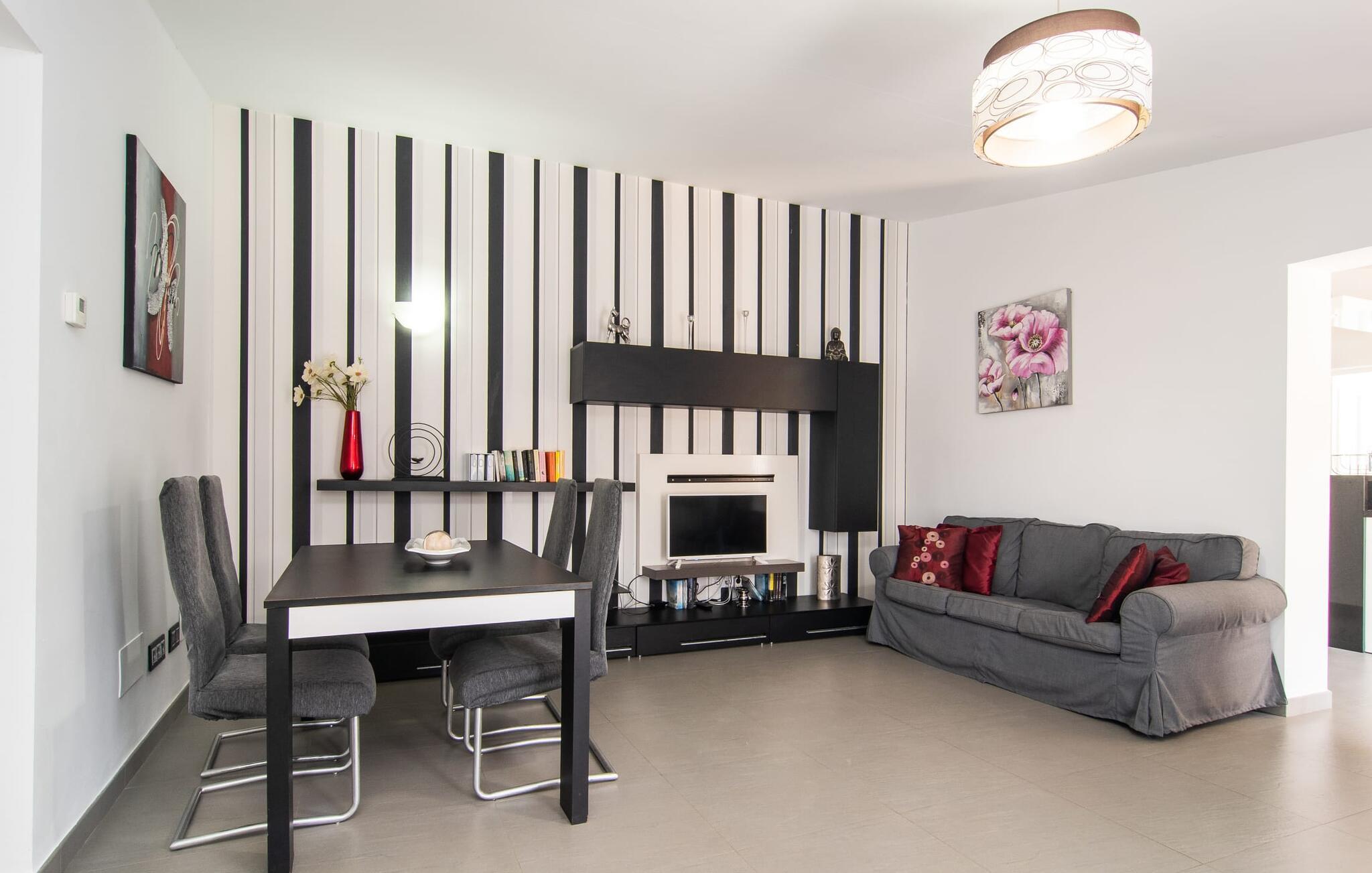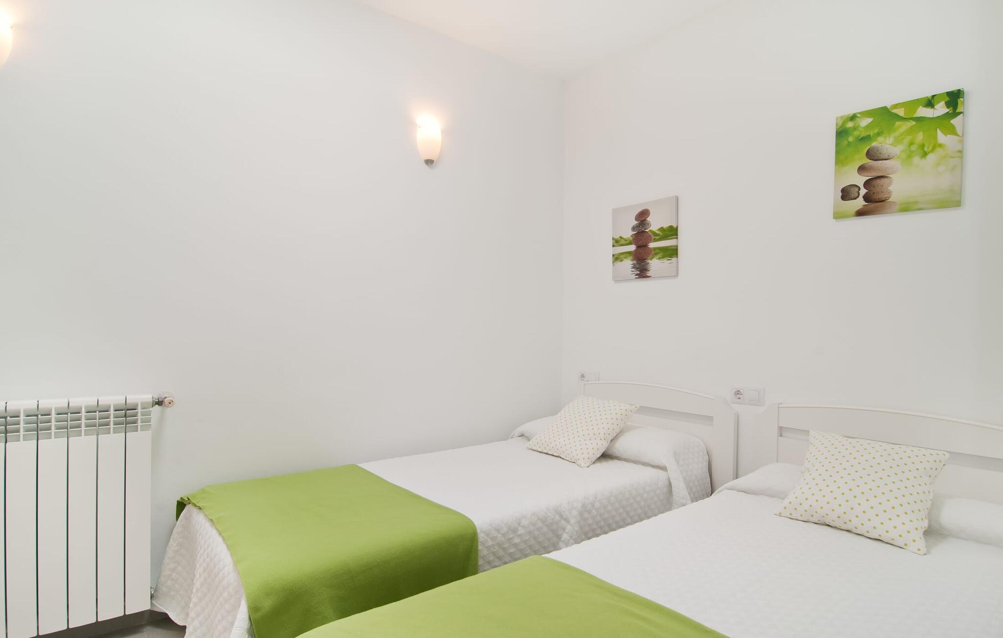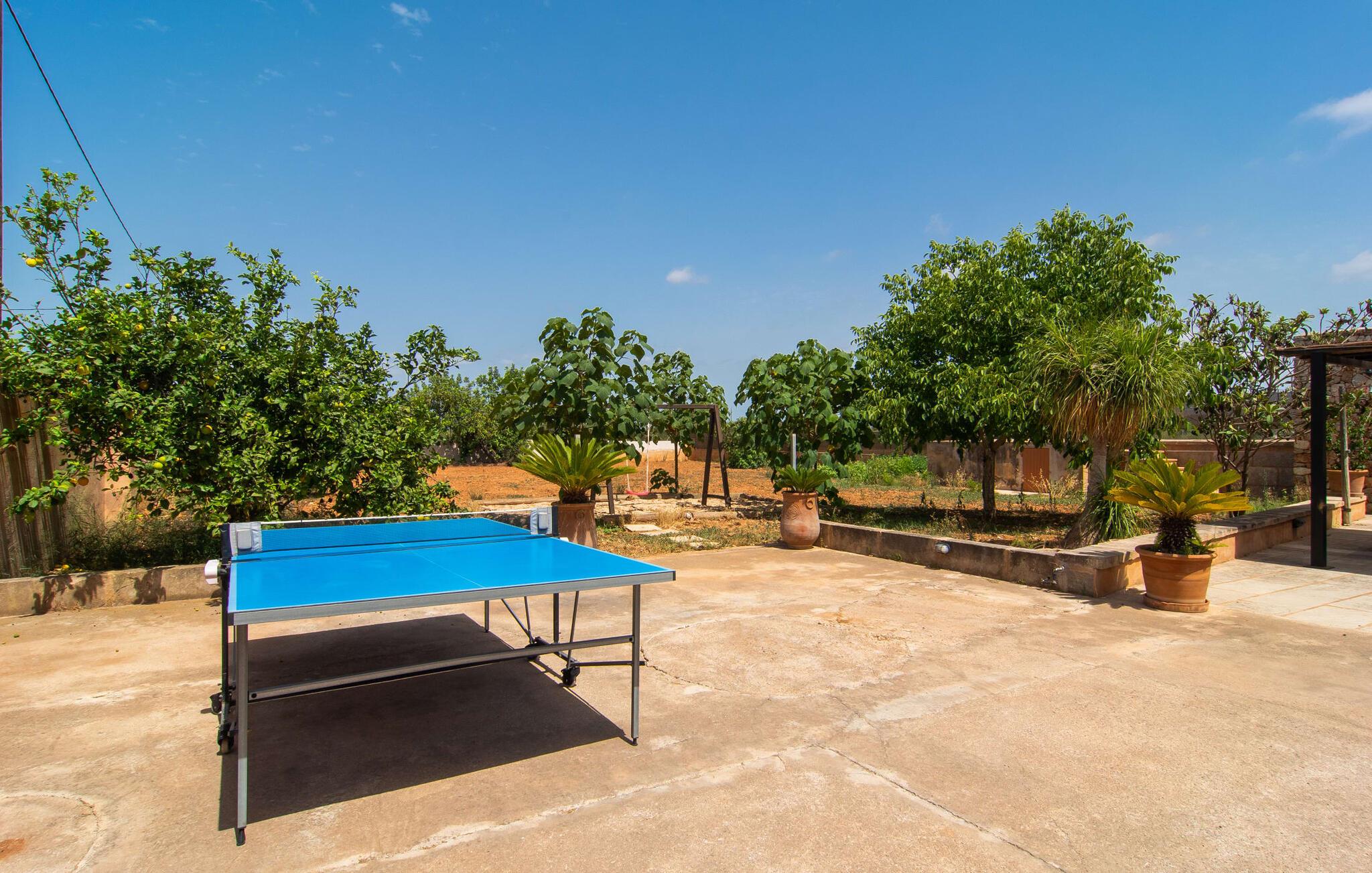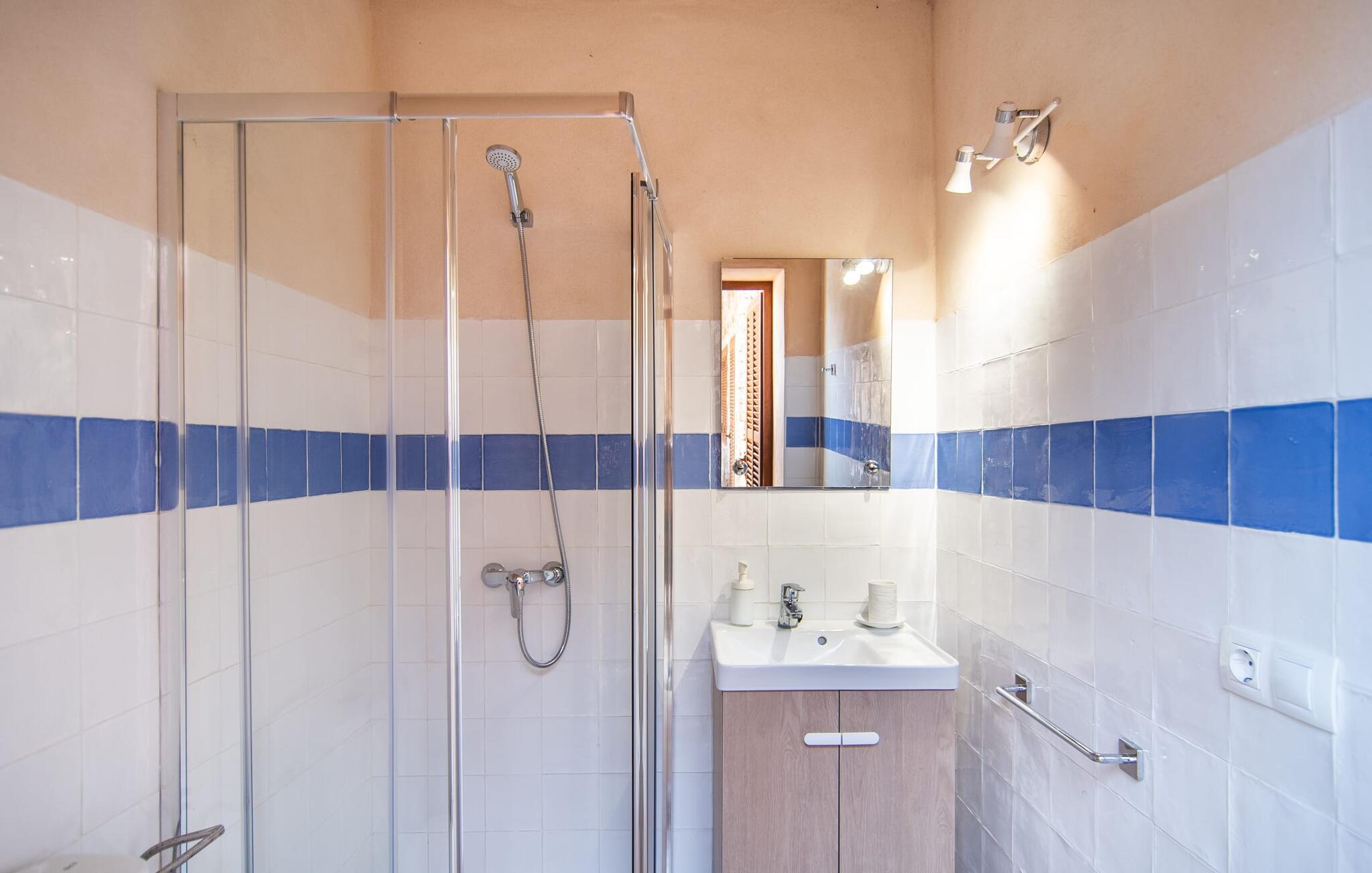 Den charmerende villa "S'Hortet" er det perfekte udgangspunkt for at udforske den sydlige del af øen. Der er en indbydende pool midt i gården. Tag en forfriskende svømmetur og slap af, før I slapper af på terrassen ved poolen. Føler I jer sulten, har I adgang til den rummelige indbyggede grill, som kan rumme en række forskellige måltider. I kan nyde den varme ø-brise eller se på nattehimlen, mens I spiser ved et af de udendørs borde. Gården suppleres af et stråtækt siddeområde og giver et roligt rum til at beundre villaens rustikke stenfacade, der omgiver gården som en beskyttende omfavnelse. Et udendørs badeværelse øger oplevelsen og giver jer mulighed for at nyde den friske luft i længere perioder. Inde i villaen er der en topmoderne lejlighed, der har et elegant sort/hvidt design. Det åbne køkken og opholdsstue skaber en indbydende atmosfære, ideel til at slappe af på sofaen eller planlægge jeres næste eventyr. Med to soveværelser og et badeværelse er villaen velegnet til enhver smag. På den anden side af terrassen finder I de øvrige soveværelser. Her dominerer de naturlige trætoner den lyse og venlige stemning og sikrer et behageligt og stilfuldt ophold. Beliggende i den nordlige del af den hyggelige by Campos, er villaen "S'Hortet" det perfekte udgangspunkt for at udforske den sydlige del af øen: de smukke sandstrande på sydkysten er kun et stenkast væk. Campos selv er kendt for sit legendariske ugentlige marked, men de mange butikker, barer, restauranter og butikker byder på masser af variation. For vandsportsentusiaster er en tur til Sa Ràpita, 12 km væk, absolut umagen værd.