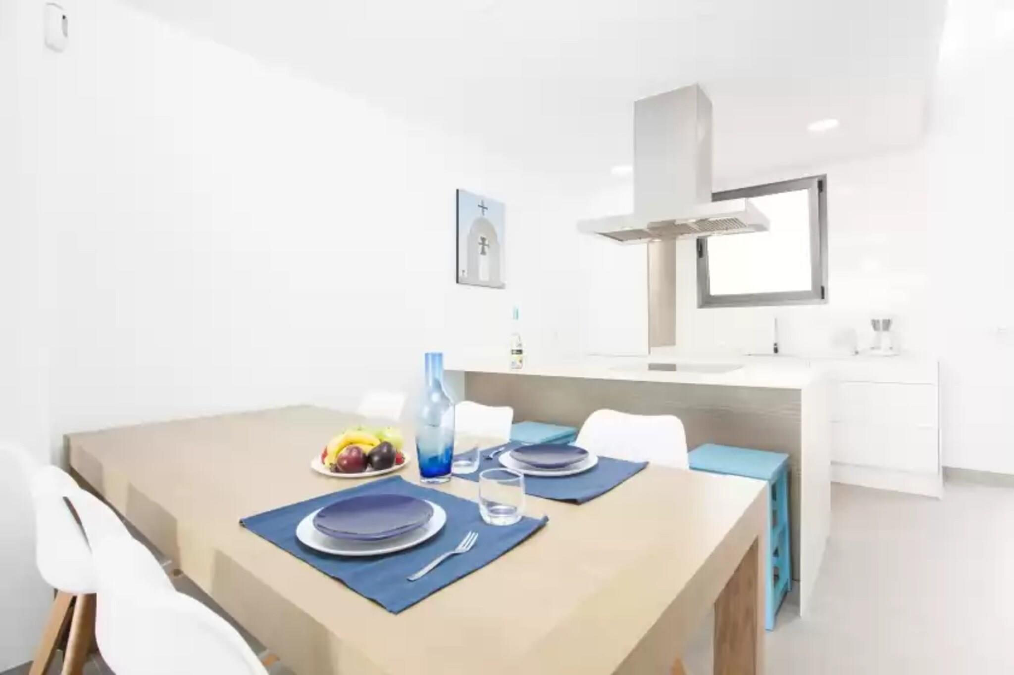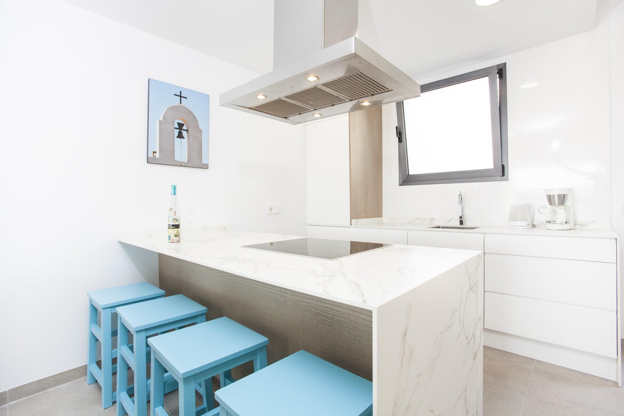 Stue, Køkken(komfur, kaffemaskine, ovn), soveværelse(2x enkeltseng), soveværelse(dobbeltseng), badeværelse, badeværelse, mikrobølgeovn, opvaskemaskine , køle-fryseskab, bruser, håndvask, håndvask, toilet, toilet, klimaanlæg, klimaanlæg, grill, swimmingpool, barneseng, barnestol