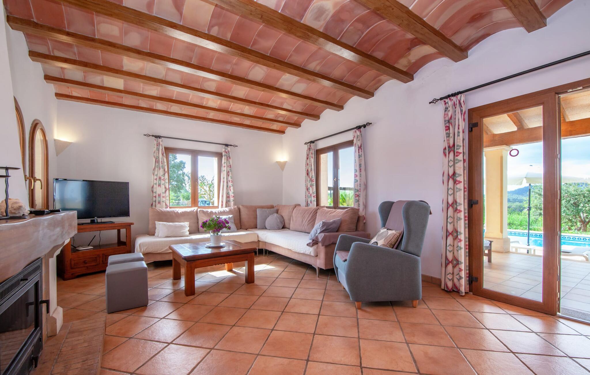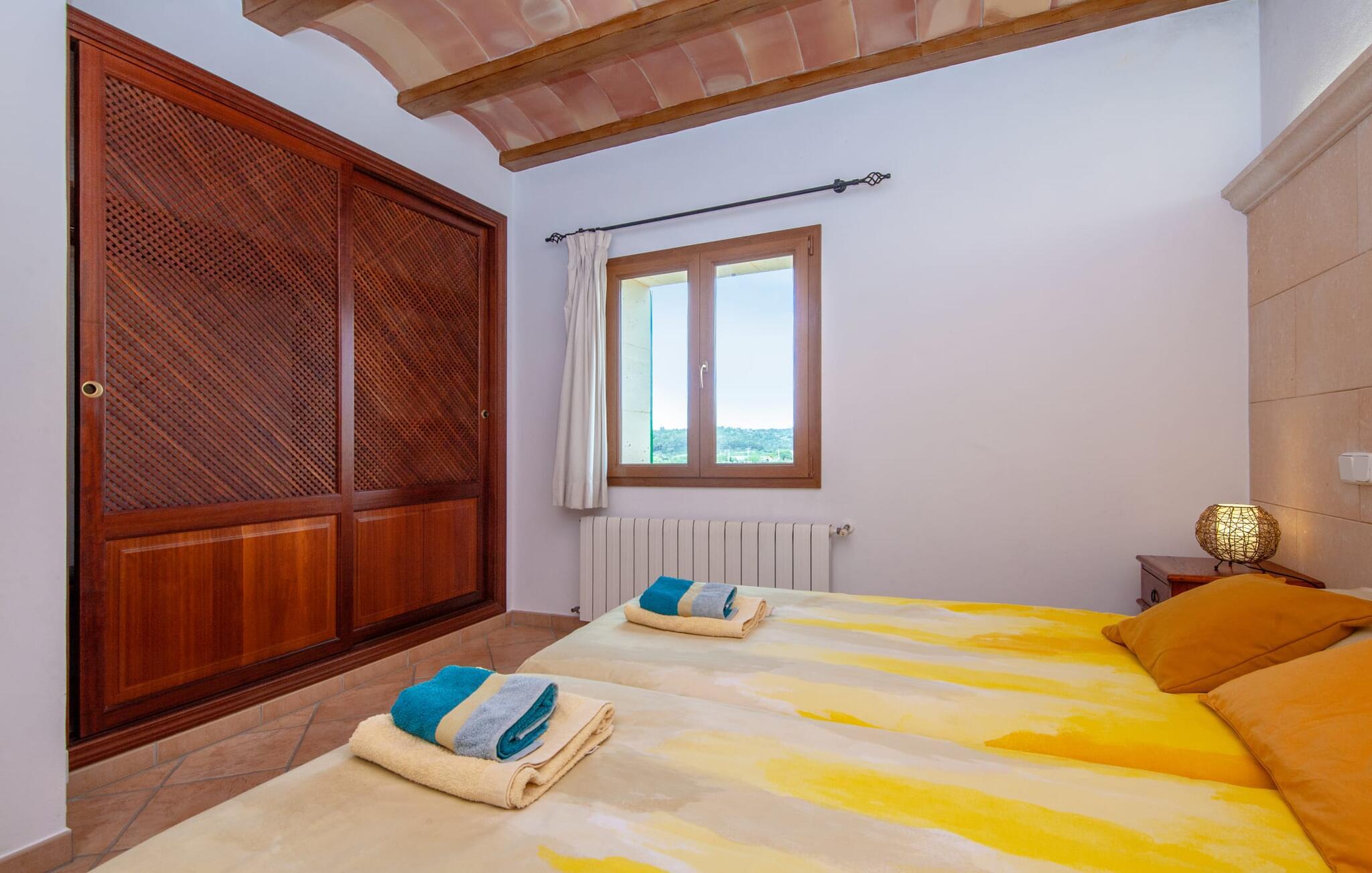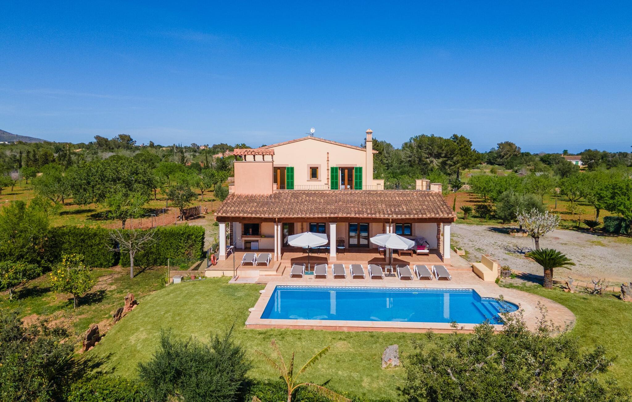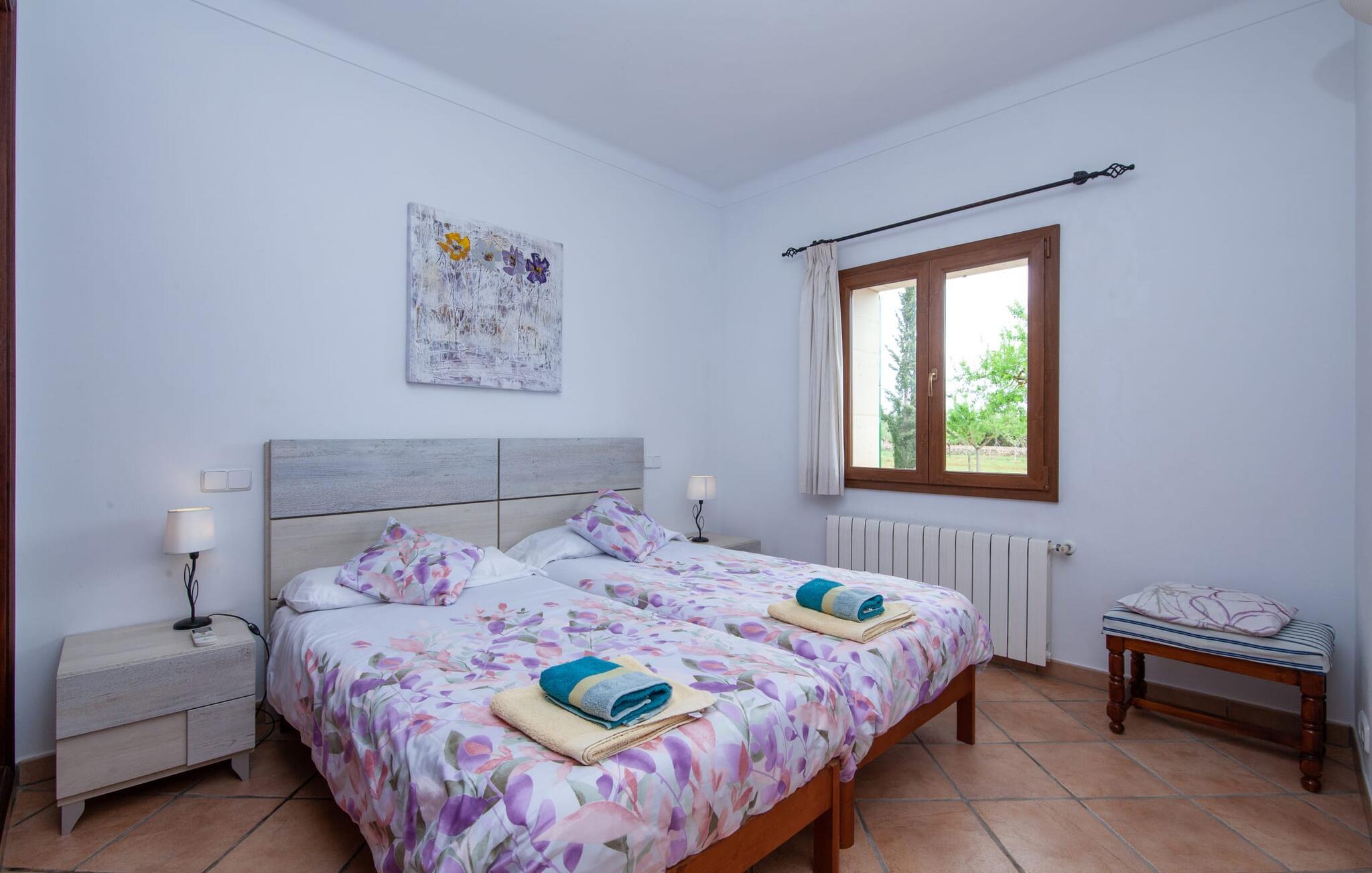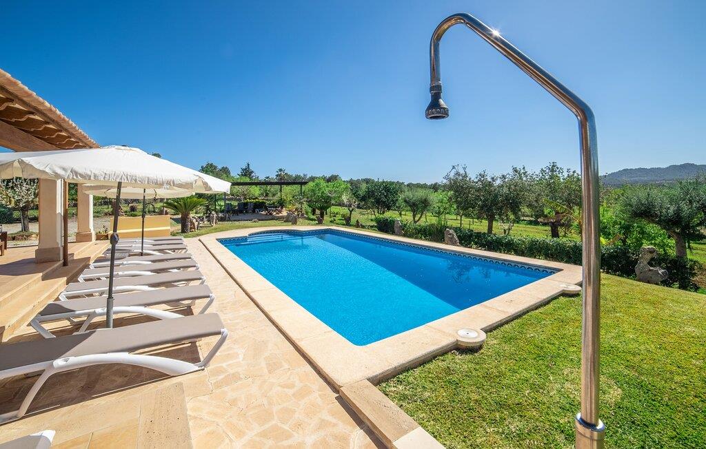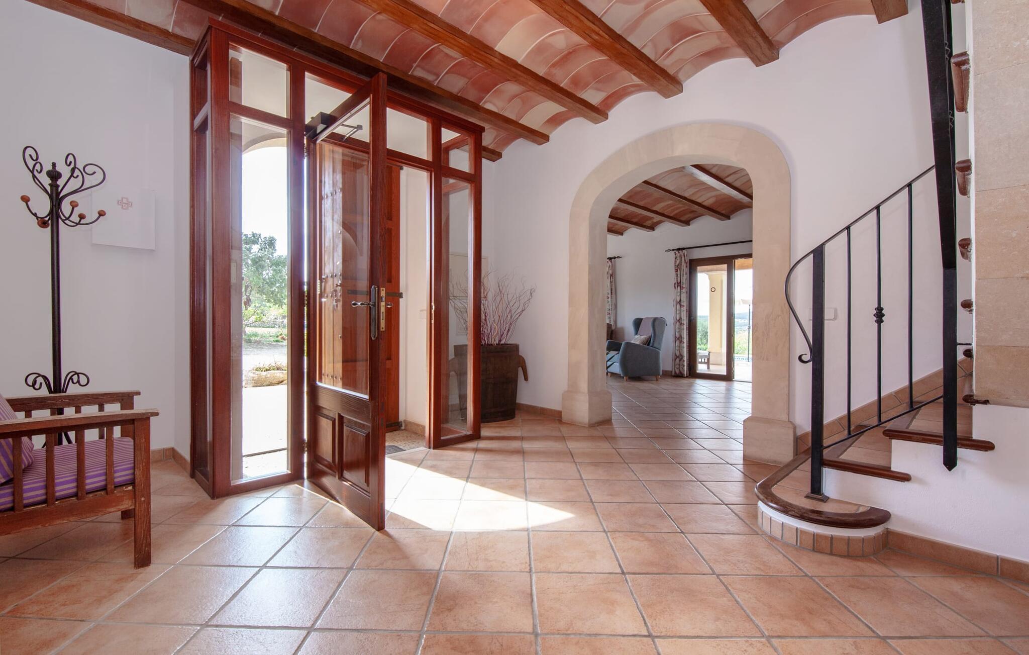 Midt i naturen med en fantastisk udsigt over landskabet: Stuehuset “Sa Bassa Seca” for op til ti personer ligger på en kæmpe grund på det sydlige Mallorca, som blandt andet er dækket af frugttræer. Huset, delvist bygget i natursten, har en indbydende overdækket terrasse med komfortable siddepladser og liggestole. Et andet højdepunkt er den store pool inklusive en udendørs bruser, som er direkte tilstødende. Fra terrassen og poolen kan I nyde en fantastisk udsigt over det omkringliggende område: Palmer og andre middelhavsplanter vokser i haven med velholdte græsplæner og grønne bjerge rejser sig i det fjerne - det perfekte område til gå-, vandre- eller cykelture. I kan parkere jeres lejebil på parkeringspladsen direkte ved stuehuset. Interiøret i denne bondegård i det landlige Mallorca er designet i en klassisk-moderne stil. Venlige hvide vægge er kombineret med rustikke træelementer og møbler, klinkegulve og diskret udsmykning. I stueetagen, ved siden af det rummelige indgangsparti, er der en hyggelig stue med komfortable polstrede møbler og en pejs, som flyder åbent ud i spisepladsen. I det veludstyrede køkken ved siden af har I ikke kun plads nok til at lave mad, der er også endnu et lille spisebord. De i alt fem indbydende møblerede soveværelser og tre moderne badeværelser, hvoraf det ene har badekar, er fordelt på stueetagen og de øverste etager i stuehuset. Stuehuset "Sa Bassa Seca" ligger på en kæmpe, grøn ejendom i det sydlige Mallorca, kun ca. 4,1 km fra byen Cala Murada med butikker og restauranter. Da der ikke er direkte naboer, byder huset og haven på en smuk udsigt over det omkringliggende landskab. Cala Tropicana-stranden ligger kun 3 km væk med udlejningsbil.
