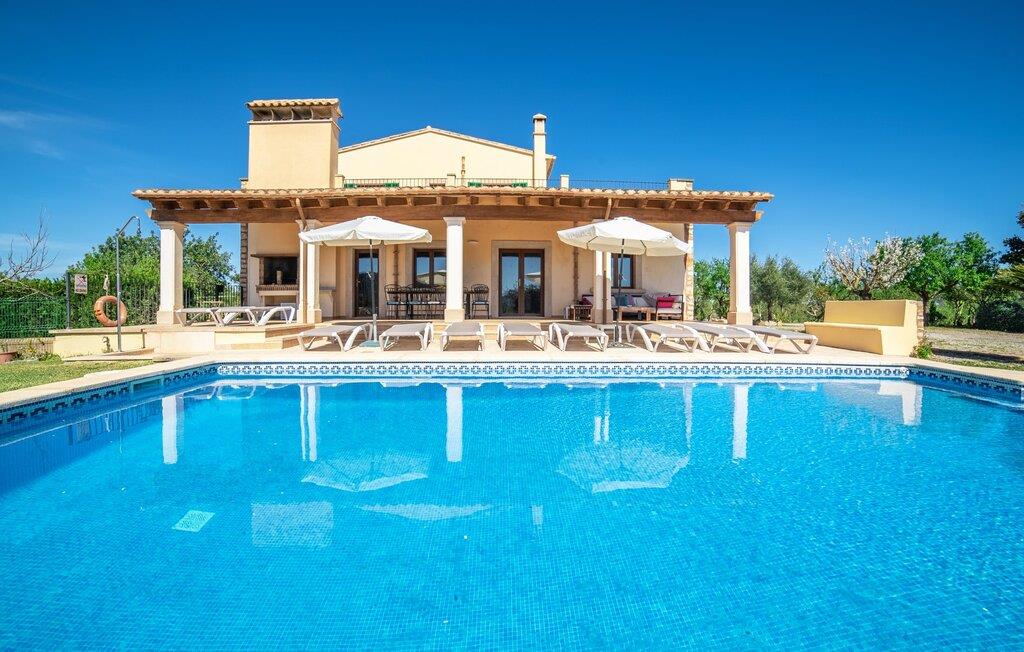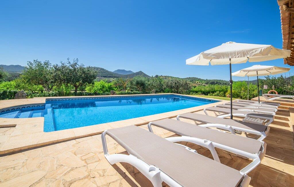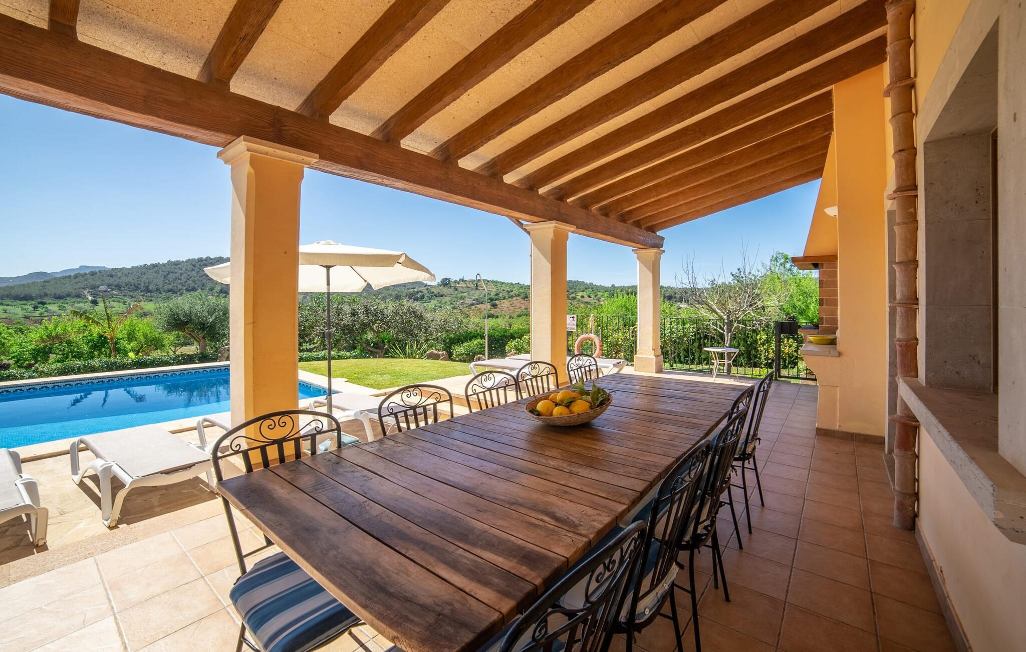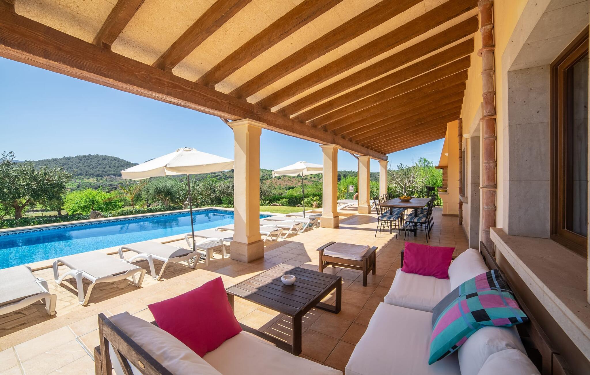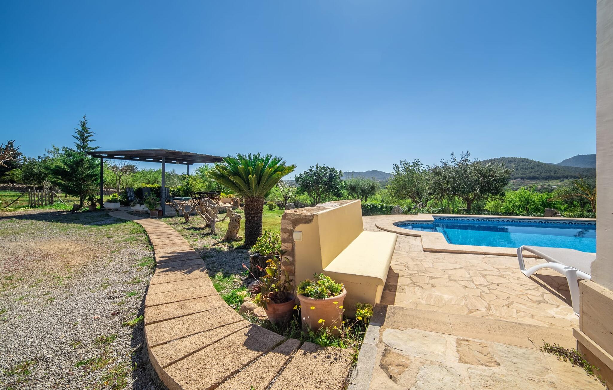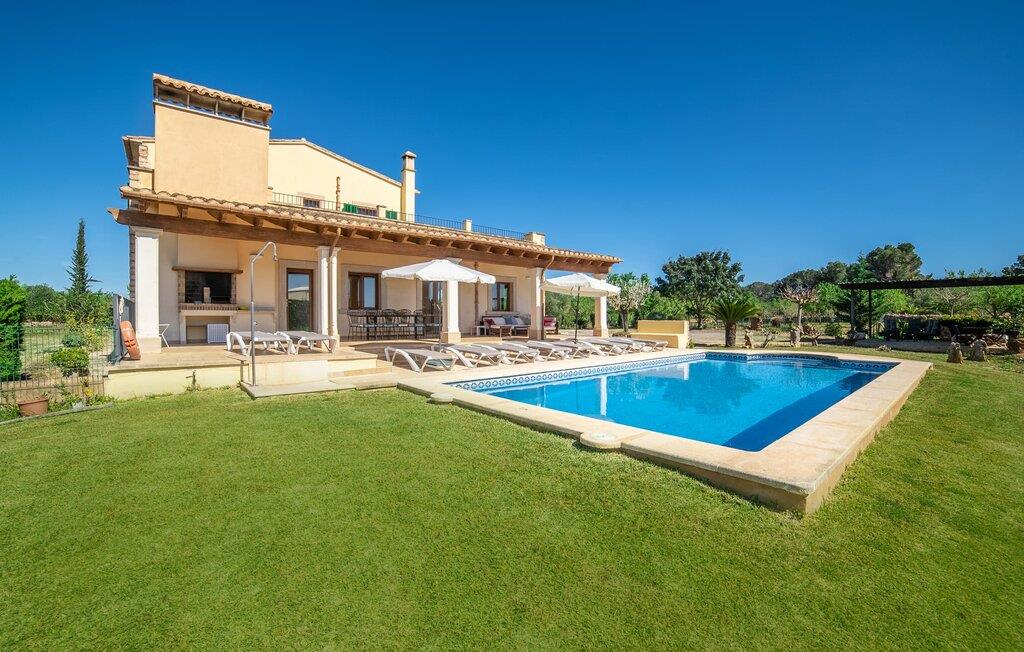 Midt i naturen med en fantastisk udsigt over landskabet: Stuehuset “Sa Bassa Seca” for op til ti personer ligger på en kæmpe grund på det sydlige Mallorca, som blandt andet er dækket af frugttræer. Huset, delvist bygget i natursten, har en indbydende overdækket terrasse med komfortable siddepladser og liggestole. Et andet højdepunkt er den store pool inklusive en udendørs bruser, som er direkte tilstødende. Fra terrassen og poolen kan I nyde en fantastisk udsigt over det omkringliggende område: Palmer og andre middelhavsplanter vokser i haven med velholdte græsplæner og grønne bjerge rejser sig i det fjerne - det perfekte område til gå-, vandre- eller cykelture. I kan parkere jeres lejebil på parkeringspladsen direkte ved stuehuset. Interiøret i denne bondegård i det landlige Mallorca er designet i en klassisk-moderne stil. Venlige hvide vægge er kombineret med rustikke træelementer og møbler, klinkegulve og diskret udsmykning. I stueetagen, ved siden af det rummelige indgangsparti, er der en hyggelig stue med komfortable polstrede møbler og en pejs, som flyder åbent ud i spisepladsen. I det veludstyrede køkken ved siden af har I ikke kun plads nok til at lave mad, der er også endnu et lille spisebord. De i alt fem indbydende møblerede soveværelser og tre moderne badeværelser, hvoraf det ene har badekar, er fordelt på stueetagen og de øverste etager i stuehuset. Stuehuset "Sa Bassa Seca" ligger på en kæmpe, grøn ejendom i det sydlige Mallorca, kun ca. 4,1 km fra byen Cala Murada med butikker og restauranter. Da der ikke er direkte naboer, byder huset og haven på en smuk udsigt over det omkringliggende landskab. Cala Tropicana-stranden ligger kun 3 km væk med udlejningsbil.