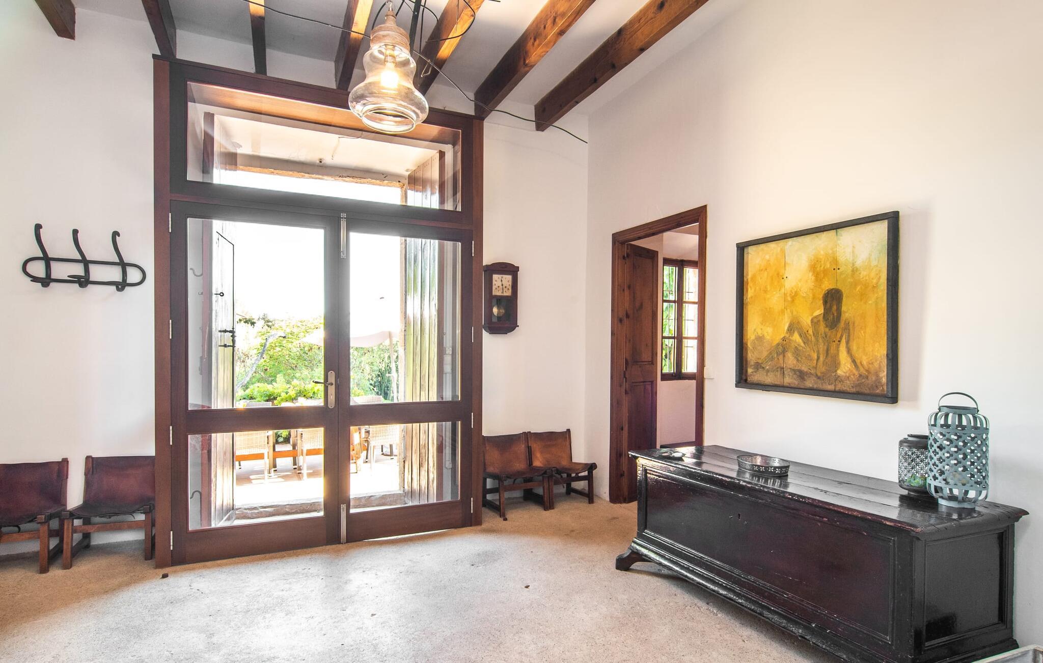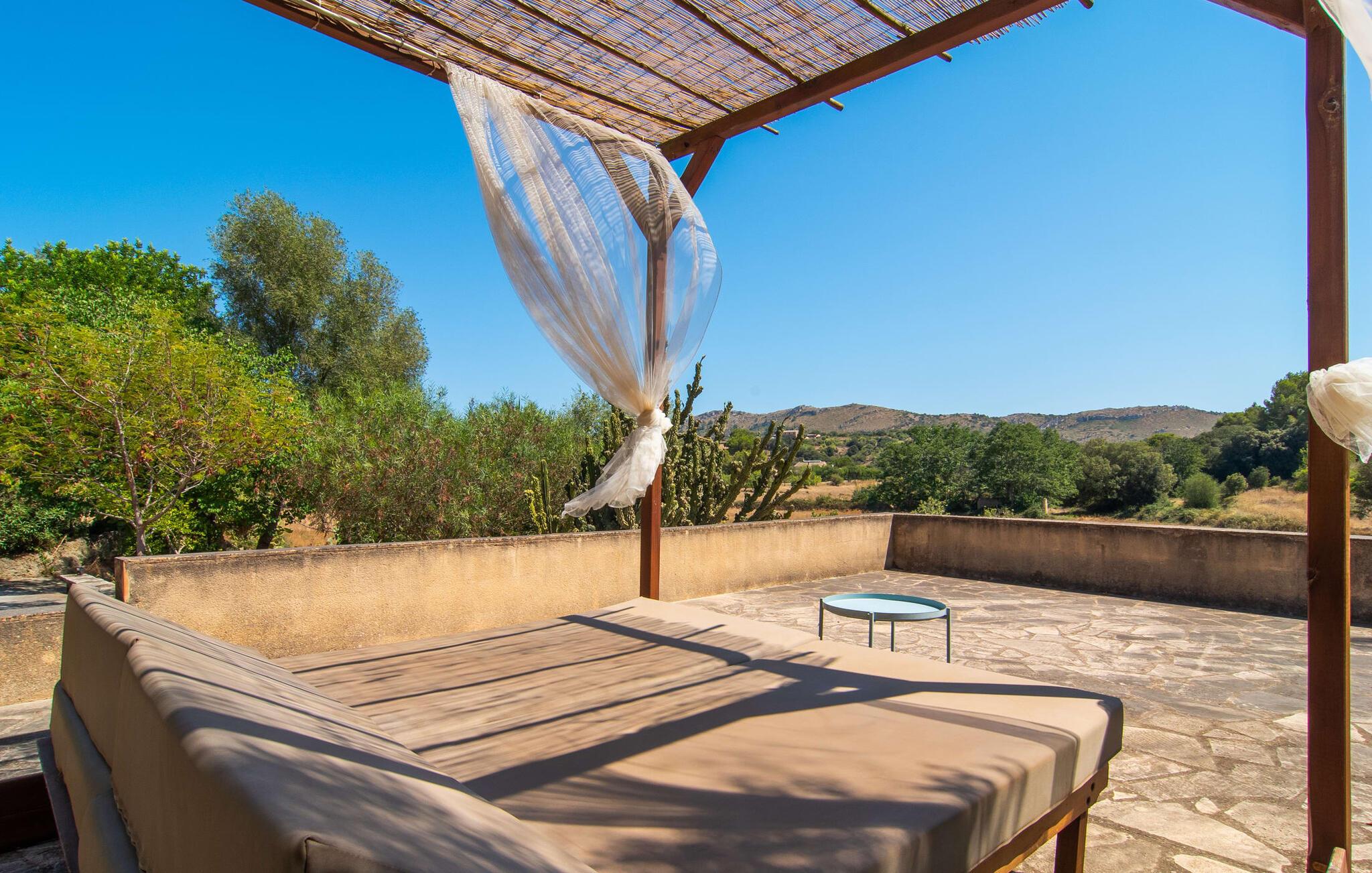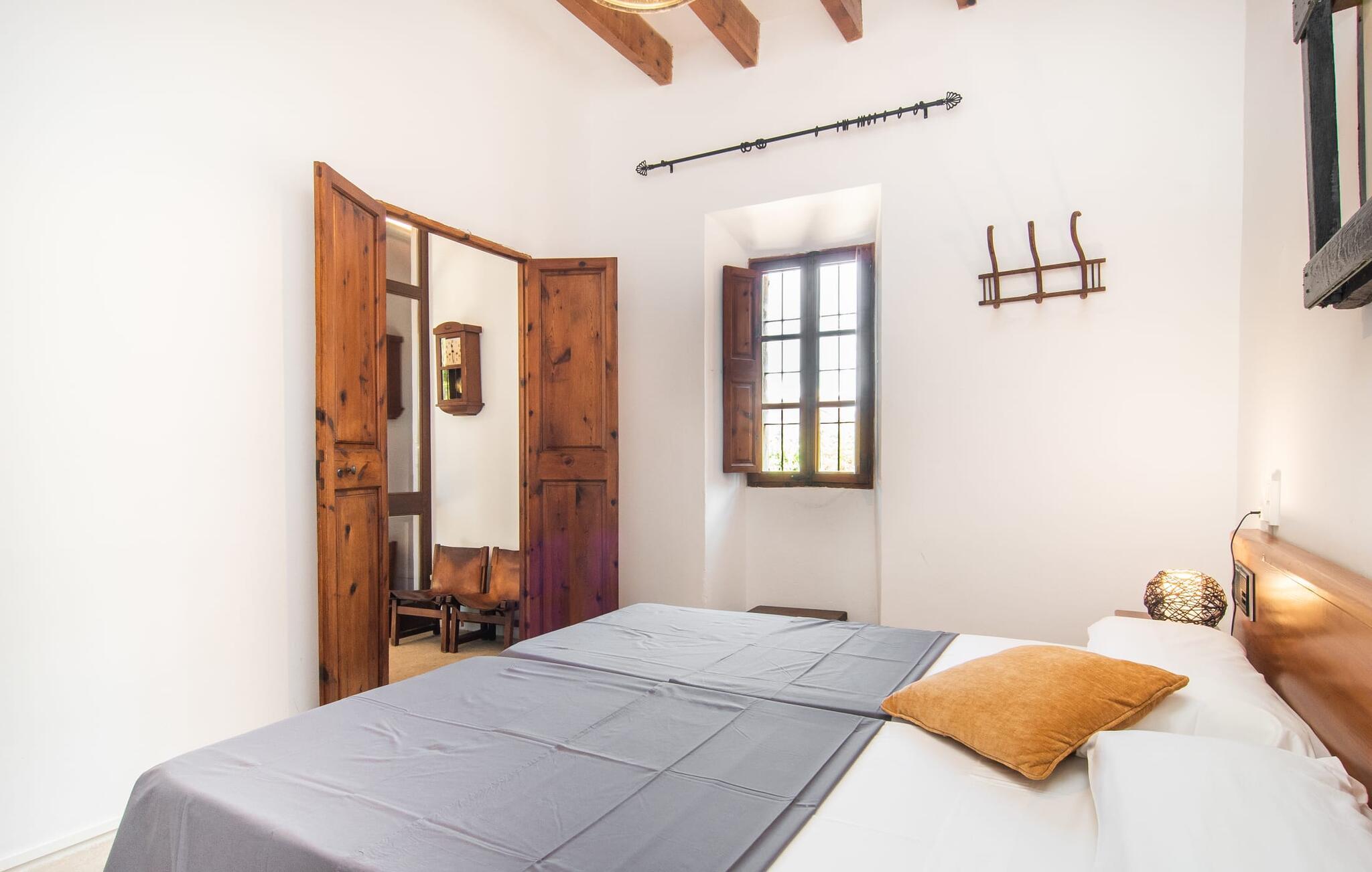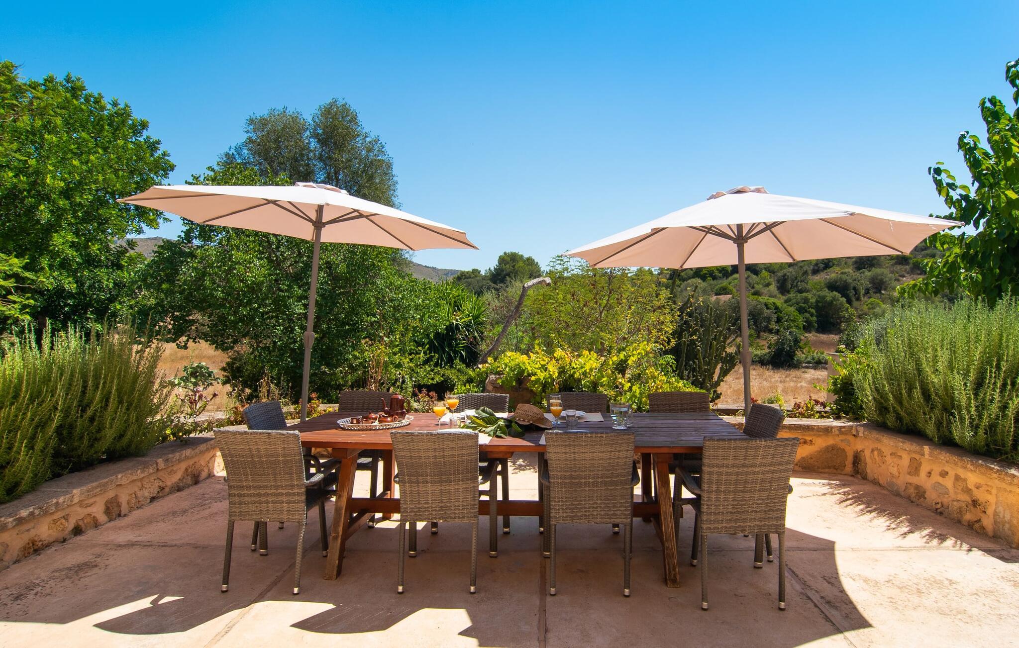 de rolige og afsondrede omgivelser i Villa "Sa Bogura" kan I nyde fortryllende omgivelser og trække jer tilbage i ordets sandeste betydning. En lille vej til villaen fører jer til denne rummelige ejendom, hvis rustikke stemning er særlig populær blandt vores gæster. Kort efter I ankommer, vil I indse, at dette er et sted, der tilbyder all-round afslapning. Her kan I nyde jeres ferie i en typisk mallorcansk atmosfære. Udearealet er præget af rummelige terrasser, rustikke trapper, nicher og vægge samt alskens middelhavsplanter. Der er endda en rutsjebane og en stor trægynge til børnene. Poolen, som er placeret lidt af vejen og tilgængelig via trapper, tilbyder et vidunderligt sted at bo. Poolen er mellem 1,20 m og 1,80 m dyb og kan nås via en stige. Liggestole og parasoller på træterrassen er perfekte til soldyrkere, der kan slappe af af hjertens lyst her ved Middelhavet og lægge hverdagen langt bag sig. Og det praktiske udendørs badeværelse gør det nemt at tilbringe hele dagen udendørs. På en af terrasserne nær huset med et stort spisebord kan I sidde afslappet og enten nyde en forfriskende drink eller fejre måltider i en hyggelig atmosfære. På varme aftener har I mulighed for at få en solid BBQ, hvor I kan lave mad og derefter prøve lækre mallorcanske råvarer. Den overdækkede grillplads på venstre side af huset er perfekt til dette, det ideelle lille sted at afslutte dagen komfortabelt. Andre indbydende siddepladser på ejendommen giver mulighed for altid at finde nye favoritpladser og trække sig tilbage et øjeblik, mens stemningen tager jer. De mange træer omkring huset byder på gode naturlige skyggeområder, hvor I kan sidde behageligt og luftigt. Det traditionelt indrettede hus har klassiske mallorcanske træbjælkelofter, lyse farver på væggene og naturstenselementer. I kombination med nogle rustikke møbler skabes en rustik stemning, der inviterer til at blive hængende. En smuk entré fører til et soveværelse fra begge sider. Længere nede i venstre side er trappen til overetagen. Ligesom badeværelserne på denne etage, har køkkenet alt hvad I behøver, inklusive en kedel og en filterkaffemaskine. Interessant nok er stuen spredt over to niveauer. Der er også en spiseplads på det nederste niveau til at nyde et måltid sammen indendørs. Her er også fladskærms-tv med satellitforbindelse installeret. I kan gøre jer godt tilpas og slappe af som I vil på de komfortable sofaer. Bøger, legetøj og en dvd-afspiller er til rådighed for jeres underholdning - selvom I næppe bliver efterladt alligevel - og det noget svage internetsignal er nok til at sende vigtige What'sapp-beskeder til jeres kære derhjemme. På øverste etage, der bruges som separat boligenhed, er der åben stue/spisestue med tilhørende lille køkken. En dør til terrassen giver jer mulighed for at gå direkte udenfor. Der er to soveværelser og et badeværelse på denne etage. Denne øverste del af huset med egen indgang er komplet indrettet i en mere moderne stil. Soveværelserne i huset er individuelt designet og formidler hver især en hjemlig atmosfære. Vi er sikre på, at alle vil finde deres eget personlige hvilested her. Badeværelserne er funktionelle og smagfuldt designet. For nemheds skyld er der et strygejern og en hårtørrer til rådighed. Da villaen er opdelt i to opholdsområder, er den ideel til flere familier, der gerne vil tilbringe deres ferie sammen og samtidig bevare et vist niveau af privatliv. Landsbyens butikker er ikke langt væk. Attraktive destinationer er Manacor (17 km) og Artà (7 km). I disse to små byer finder I alt, hvad I skal bruge til daglige indkøb; De tilbyder også et attraktivt udvalg af gode restauranter. I Sant Llorenc er der et lille ugentligt marked hver tirsdag. Strandene i Cala Millor, Sa Coma og Costa de los Pinos i den østlige del af øen er meget nemme at nå. Cala Rajada i den nordøstlige del er omkring 17 km væk. Den charmerende, store stenvilla "Sa Bogura" er en stemningsfuld ejendom på en stor, ugeneret grund på næsten 110.000 m². Villaen ligger i den smukke østlige del af øen. I Sant Llorenc (ca. 8 km væk) er der et bageri, et supermarked, et apotek og restauranter. De smukke sandstrande ved den lokale kyst er let tilgængelige.