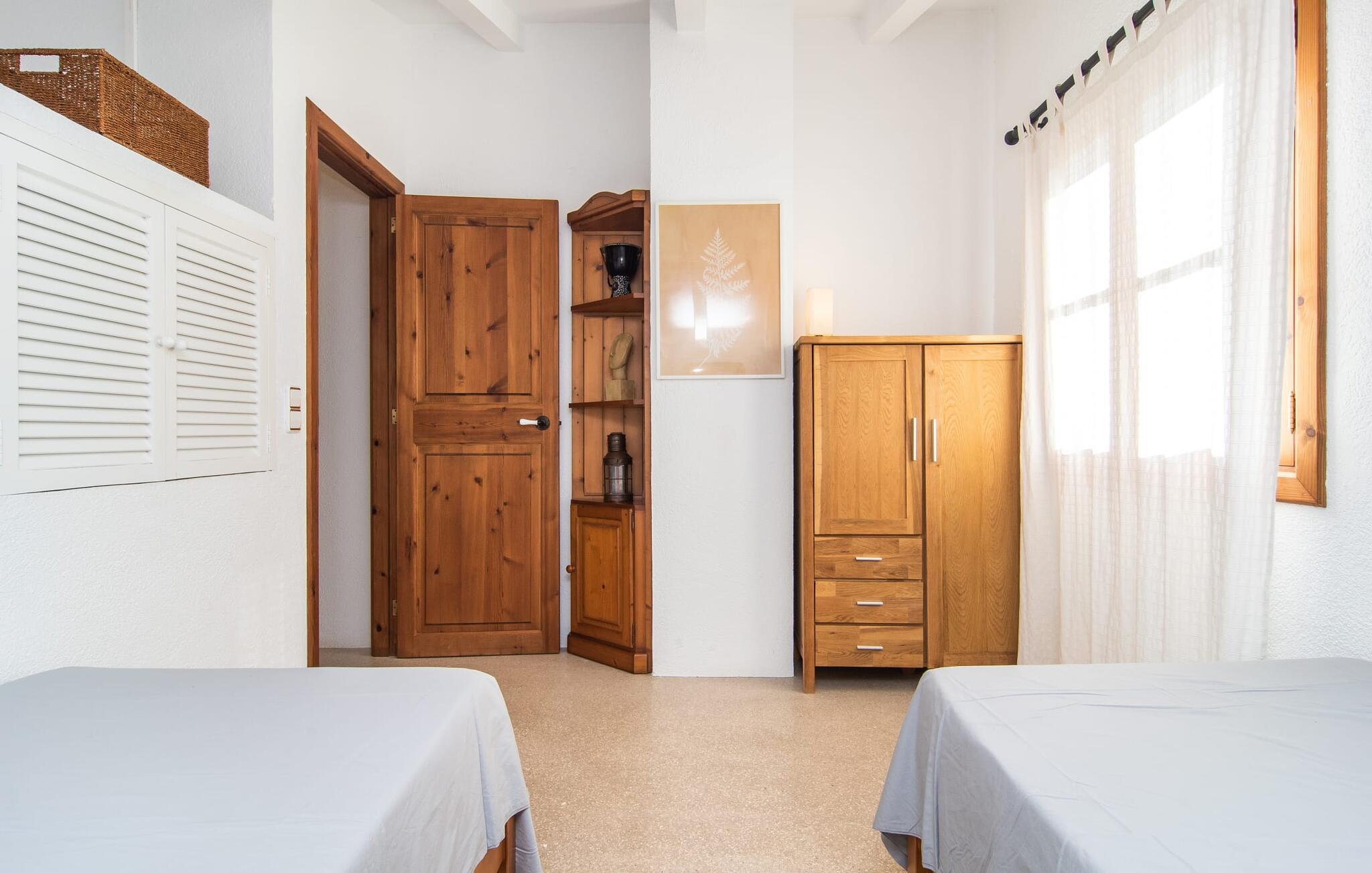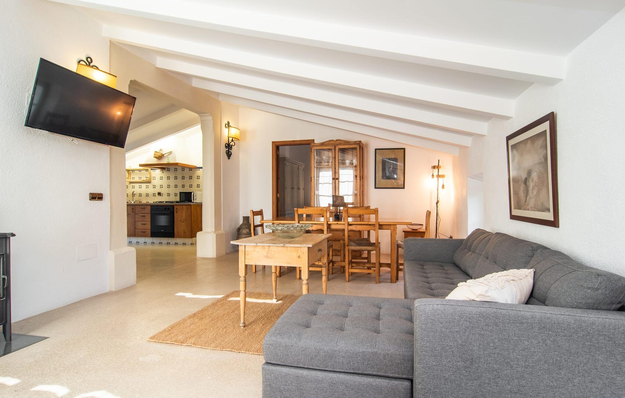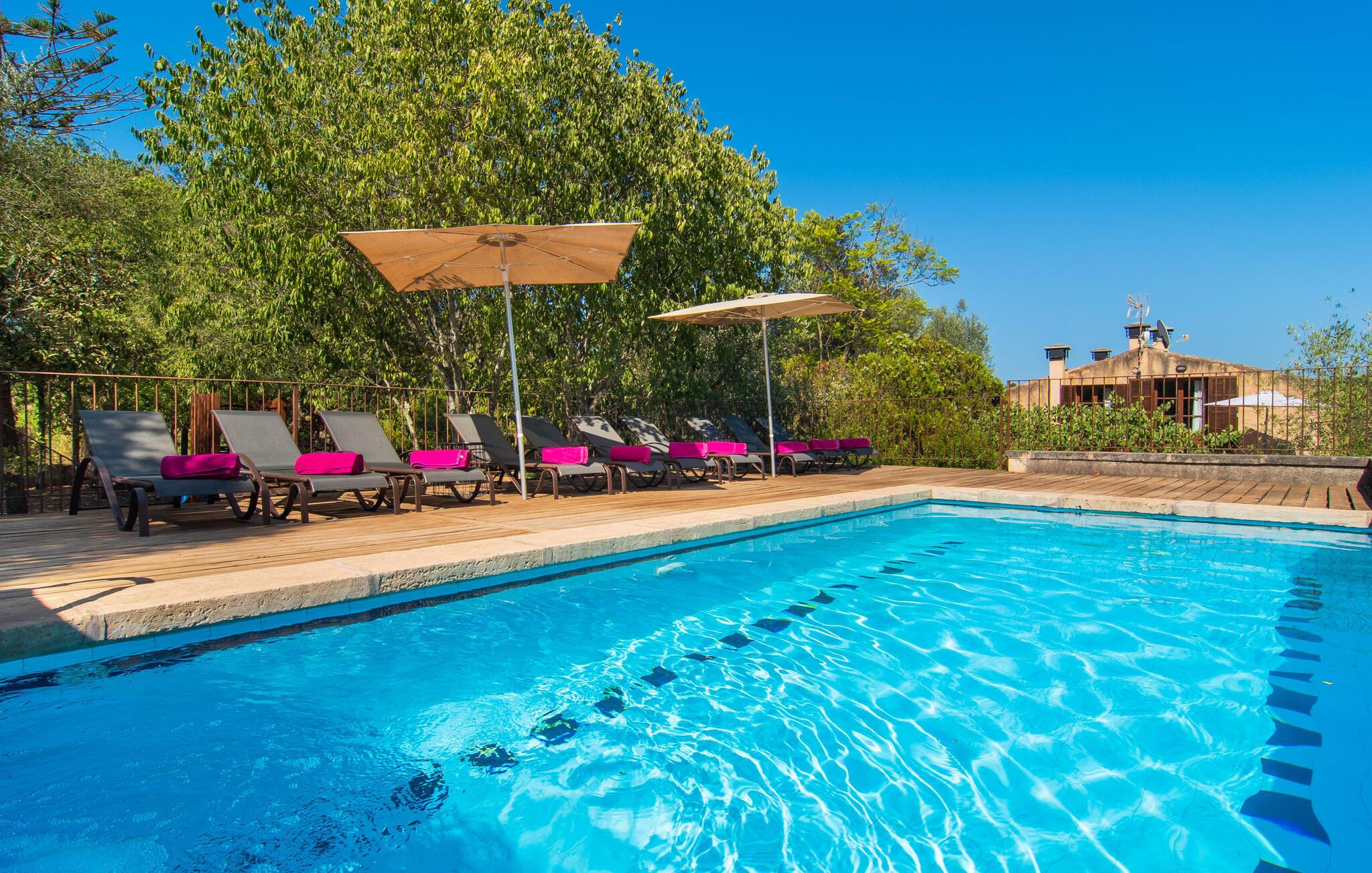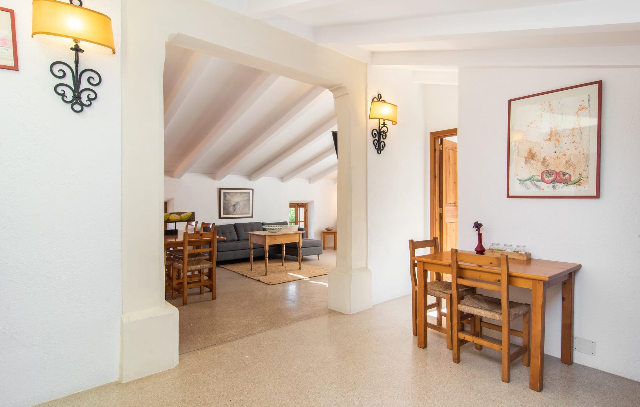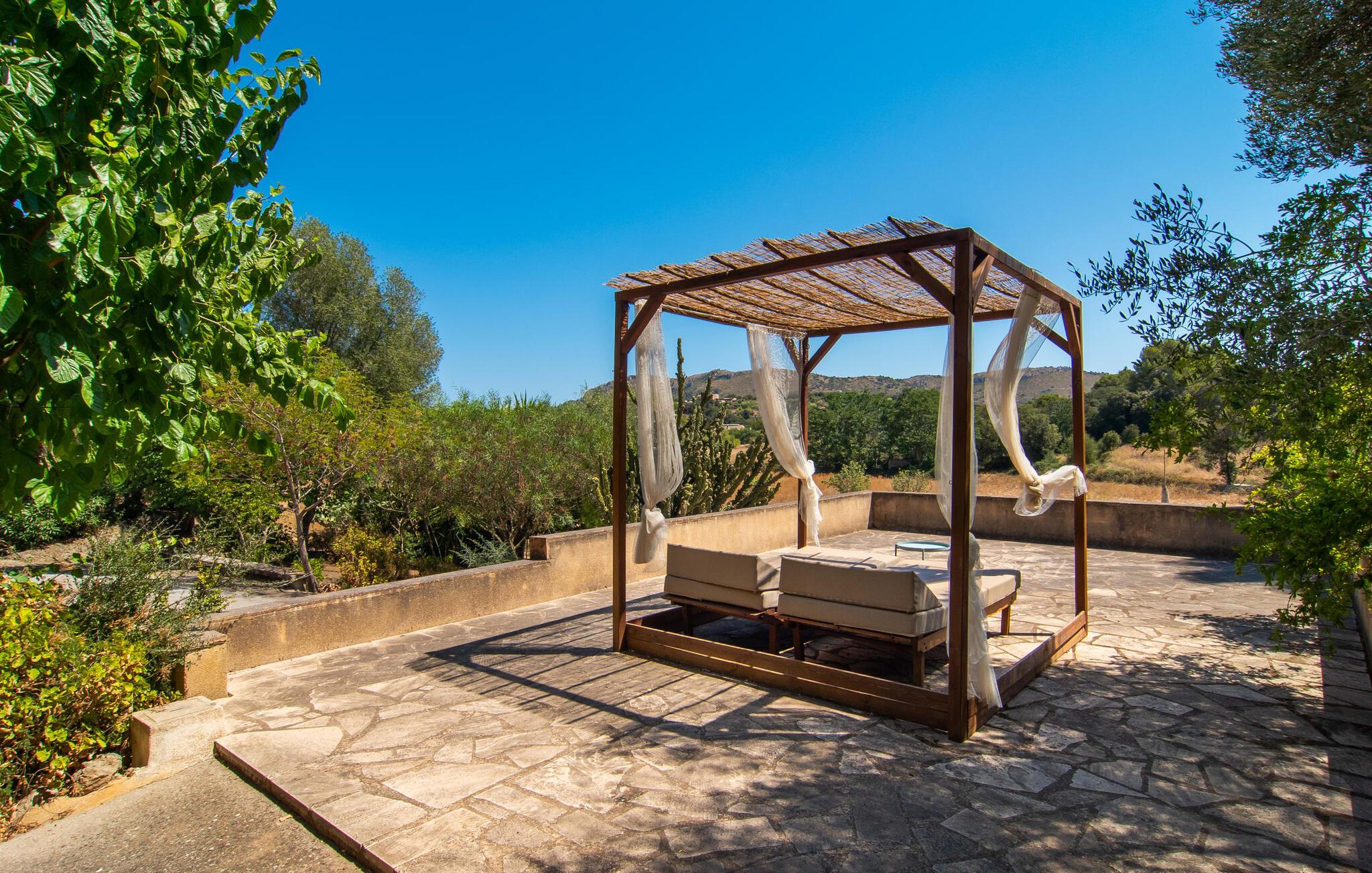 de rolige og afsondrede omgivelser i Villa "Sa Bogura" kan I nyde fortryllende omgivelser og trække jer tilbage i ordets sandeste betydning. En lille vej til villaen fører jer til denne rummelige ejendom, hvis rustikke stemning er særlig populær blandt vores gæster. Kort efter I ankommer, vil I indse, at dette er et sted, der tilbyder all-round afslapning. Her kan I nyde jeres ferie i en typisk mallorcansk atmosfære. Udearealet er præget af rummelige terrasser, rustikke trapper, nicher og vægge samt alskens middelhavsplanter. Der er endda en rutsjebane og en stor trægynge til børnene. Poolen, som er placeret lidt af vejen og tilgængelig via trapper, tilbyder et vidunderligt sted at bo. Poolen er mellem 1,20 m og 1,80 m dyb og kan nås via en stige. Liggestole og parasoller på træterrassen er perfekte til soldyrkere, der kan slappe af af hjertens lyst her ved Middelhavet og lægge hverdagen langt bag sig. Og det praktiske udendørs badeværelse gør det nemt at tilbringe hele dagen udendørs. På en af terrasserne nær huset med et stort spisebord kan I sidde afslappet og enten nyde en forfriskende drink eller fejre måltider i en hyggelig atmosfære. På varme aftener har I mulighed for at få en solid BBQ, hvor I kan lave mad og derefter prøve lækre mallorcanske råvarer. Den overdækkede grillplads på venstre side af huset er perfekt til dette, det ideelle lille sted at afslutte dagen komfortabelt. Andre indbydende siddepladser på ejendommen giver mulighed for altid at finde nye favoritpladser og trække sig tilbage et øjeblik, mens stemningen tager jer. De mange træer omkring huset byder på gode naturlige skyggeområder, hvor I kan sidde behageligt og luftigt. Det traditionelt indrettede hus har klassiske mallorcanske træbjælkelofter, lyse farver på væggene og naturstenselementer. I kombination med nogle rustikke møbler skabes en rustik stemning, der inviterer til at blive hængende. En smuk entré fører til et soveværelse fra begge sider. Længere nede i venstre side er trappen til overetagen. Ligesom badeværelserne på denne etage, har køkkenet alt hvad I behøver, inklusive en kedel og en filterkaffemaskine. Interessant nok er stuen spredt over to niveauer. Der er også en spiseplads på det nederste niveau til at nyde et måltid sammen indendørs. Her er også fladskærms-tv med satellitforbindelse installeret. I kan gøre jer godt tilpas og slappe af som I vil på de komfortable sofaer. Bøger, legetøj og en dvd-afspiller er til rådighed for jeres underholdning - selvom I næppe bliver efterladt alligevel - og det noget svage internetsignal er nok til at sende vigtige What'sapp-beskeder til jeres kære derhjemme. På øverste etage, der bruges som separat boligenhed, er der åben stue/spisestue med tilhørende lille køkken. En dør til terrassen giver jer mulighed for at gå direkte udenfor. Der er to soveværelser og et badeværelse på denne etage. Denne øverste del af huset med egen indgang er komplet indrettet i en mere moderne stil. Soveværelserne i huset er individuelt designet og formidler hver især en hjemlig atmosfære. Vi er sikre på, at alle vil finde deres eget personlige hvilested her. Badeværelserne er funktionelle og smagfuldt designet. For nemheds skyld er der et strygejern og en hårtørrer til rådighed. Da villaen er opdelt i to opholdsområder, er den ideel til flere familier, der gerne vil tilbringe deres ferie sammen og samtidig bevare et vist niveau af privatliv. Landsbyens butikker er ikke langt væk. Attraktive destinationer er Manacor (17 km) og Artà (7 km). I disse to små byer finder I alt, hvad I skal bruge til daglige indkøb; De tilbyder også et attraktivt udvalg af gode restauranter. I Sant Llorenc er der et lille ugentligt marked hver tirsdag. Strandene i Cala Millor, Sa Coma og Costa de los Pinos i den østlige del af øen er meget nemme at nå. Cala Rajada i den nordøstlige del er omkring 17 km væk. Den charmerende, store stenvilla "Sa Bogura" er en stemningsfuld ejendom på en stor, ugeneret grund på næsten 110.000 m². Villaen ligger i den smukke østlige del af øen. I Sant Llorenc (ca. 8 km væk) er der et bageri, et supermarked, et apotek og restauranter. De smukke sandstrande ved den lokale kyst er let tilgængelige.