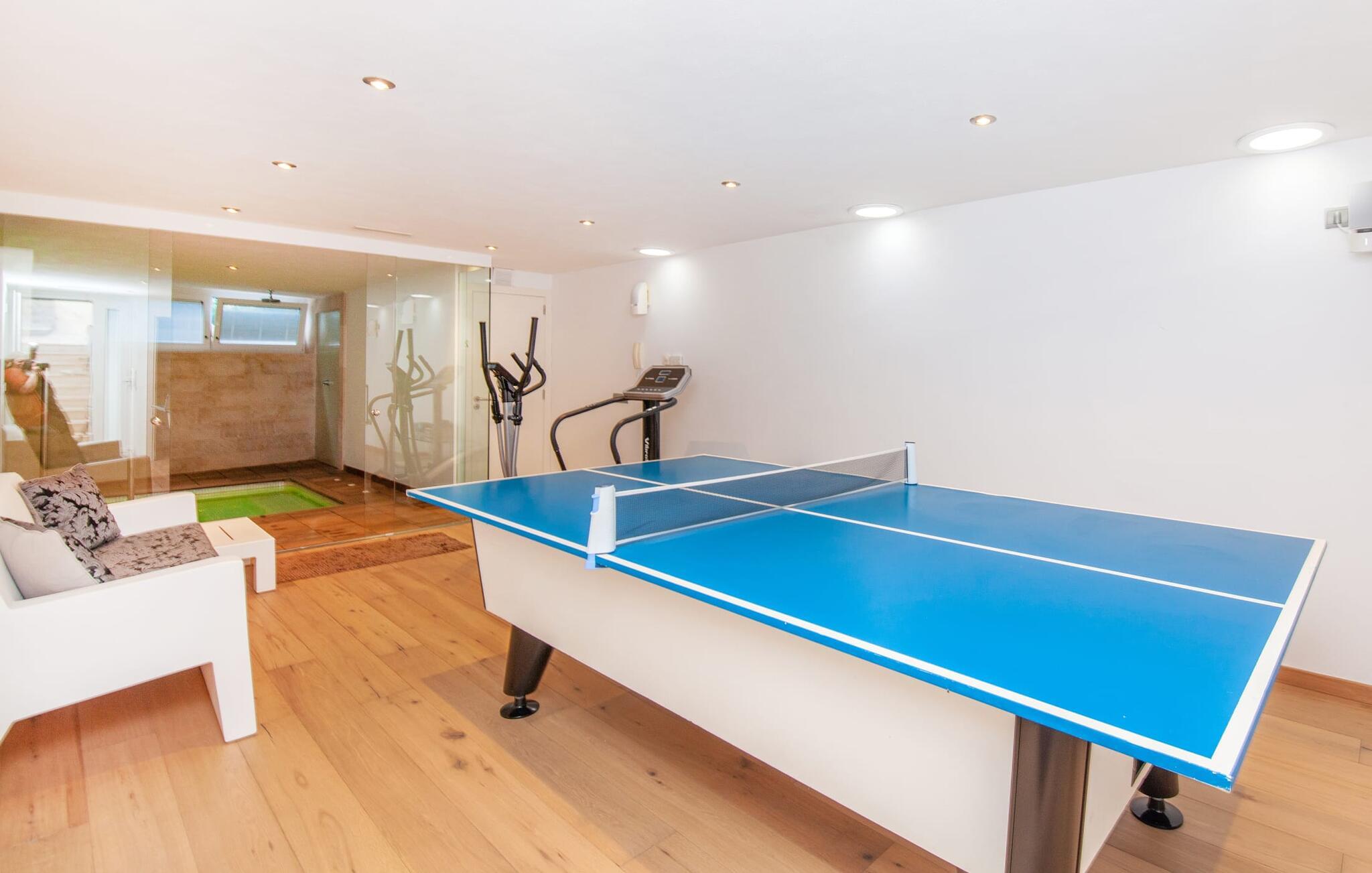Som en ekstra bonus er der et fitnessområde, bordtennis, et spillerum og et badeværelse placeret under terrassen. Dette feriehus kombinerer enestående faciliteter med eksklusivt præg – kombineret med sin beliggenhed ved stranden er det praktisk talt uovertruffent!